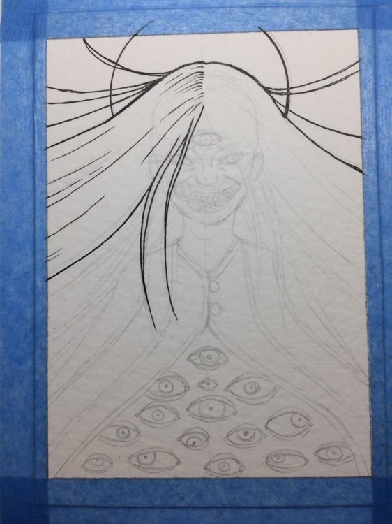 Zur Spinnenfrau: Die Karte sieht ebenfalls super aus bisher! Ich glaube ein paar tiefere, dunklere Schatten könnten ihr auch gut tun! Trau dich da ruhig etwas mehr, dann wirkt sie vllt noch etwas bedrohlicher und das Ganze sieht mehr aus, als wäre sie in einer Höhle oder ähnlichem :)