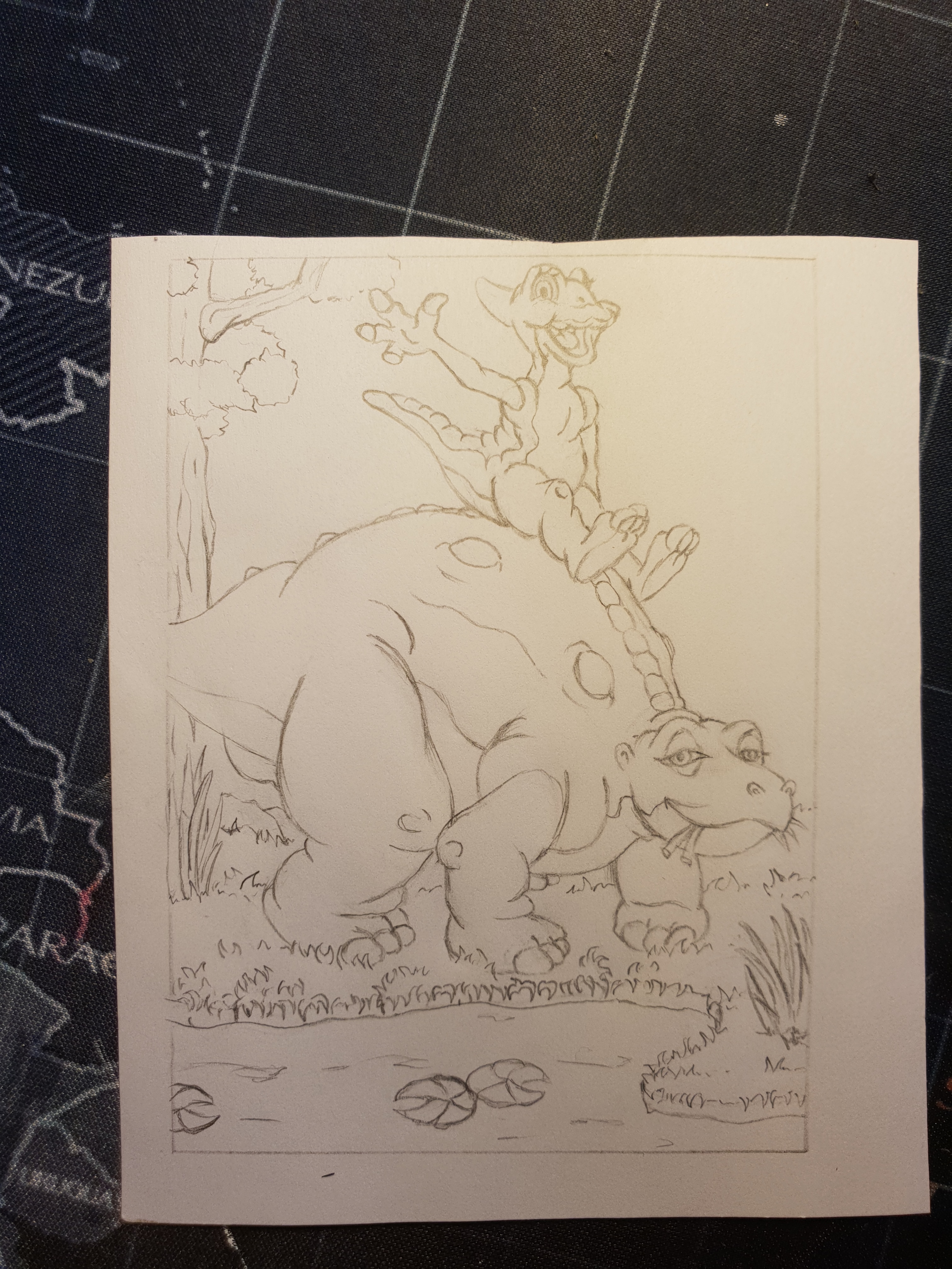 Unten links: Die Karte hab ich auch vor dem Kucken gemalt, weil ich die Szene so lustig fand, dass ich sie noch ungefÀhr wusste. Allerdings hab ich dann festgestellt, dass Littlefoot im Film ja nicht nur genervt ist, sondern richtig sauer wird und hab die Szene noch mal gemalt. Zwo, eins, Risiko-Style! >:D