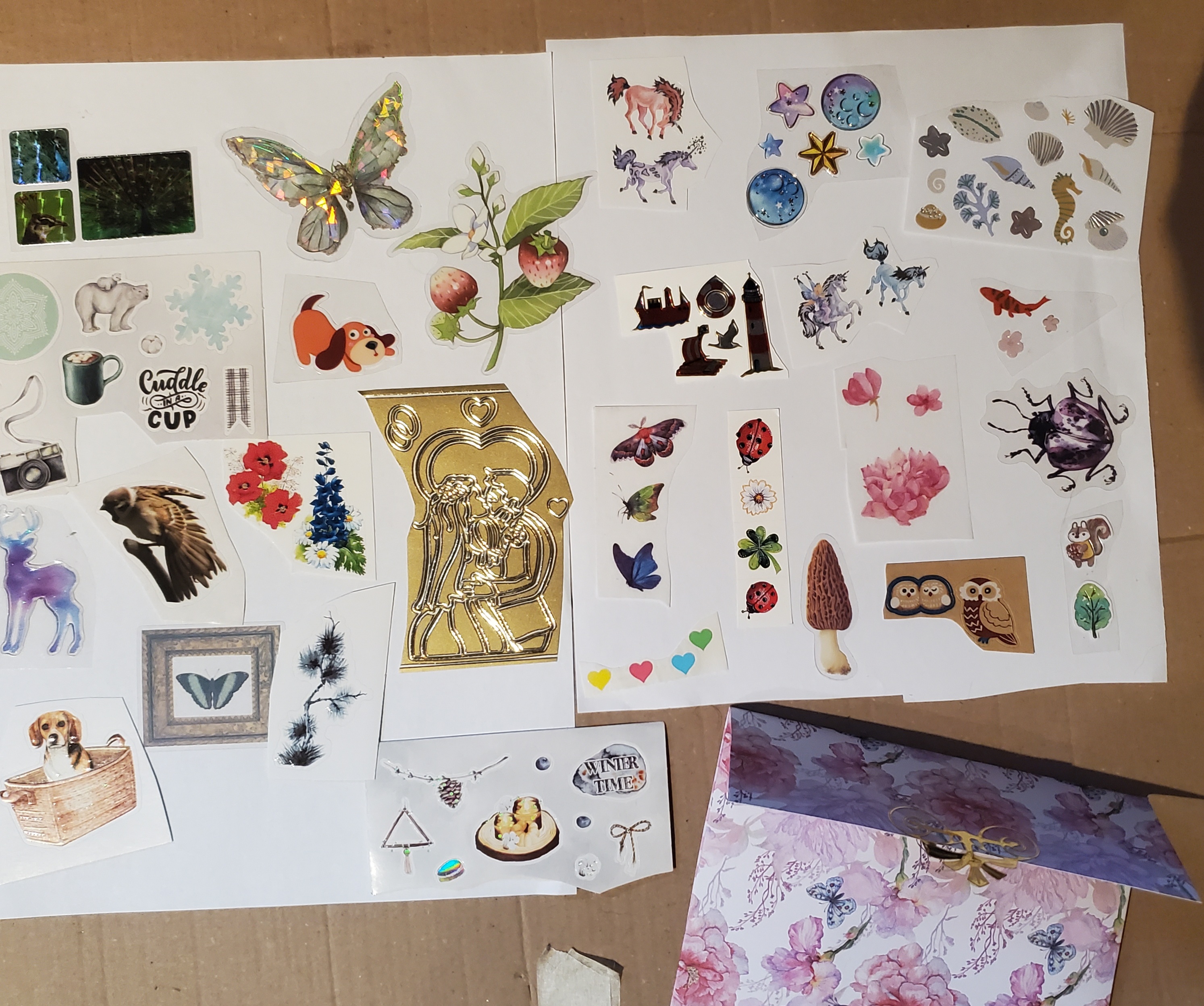 @Chocosart die Sticker sind Querbeet , Pflanzen ,Tiere , Maritim ,Ornamente ,Washisticker unterschiedliche Größen mit weißem Rand oder durchsichtig eben eine Wundertüte .