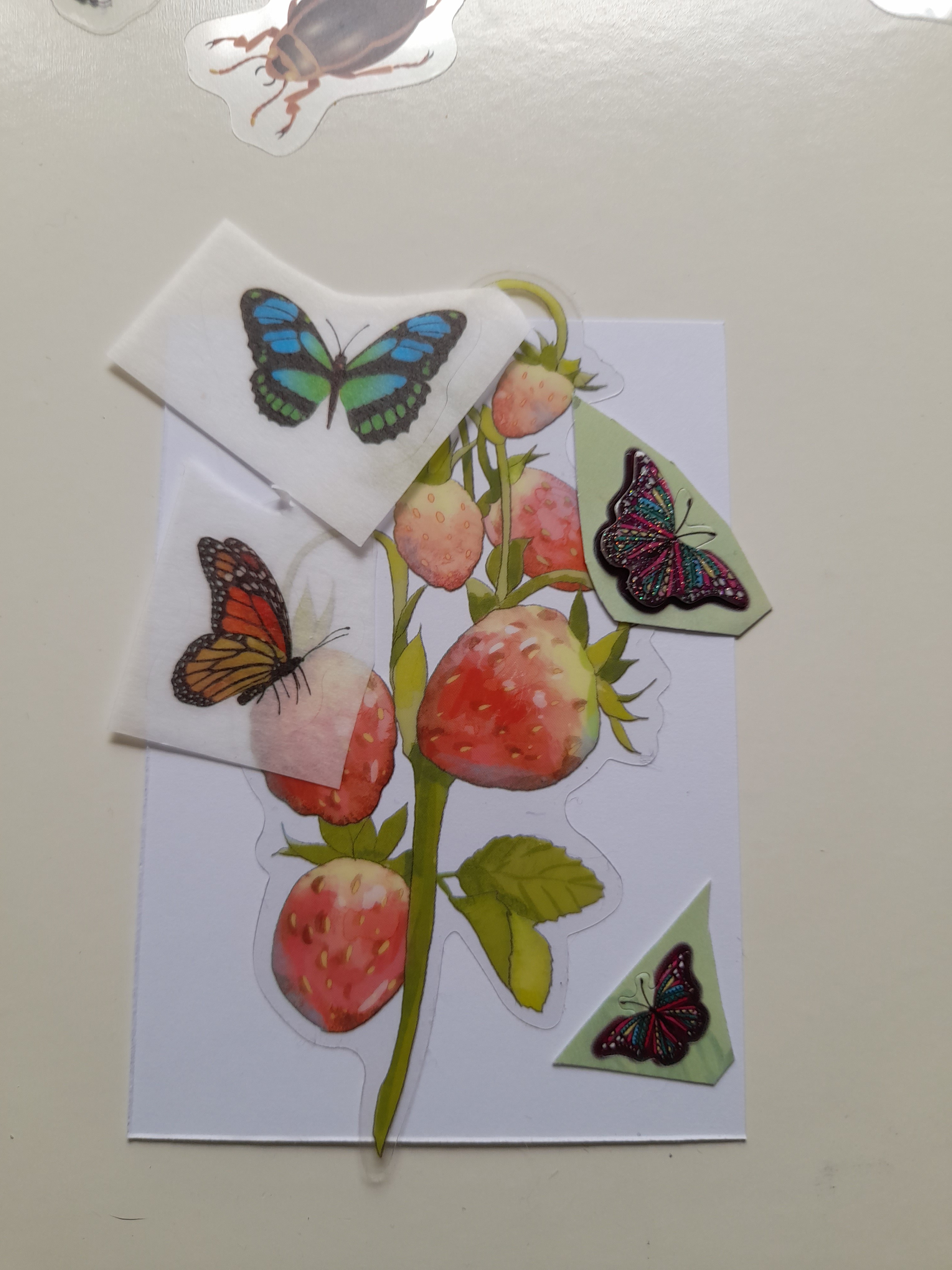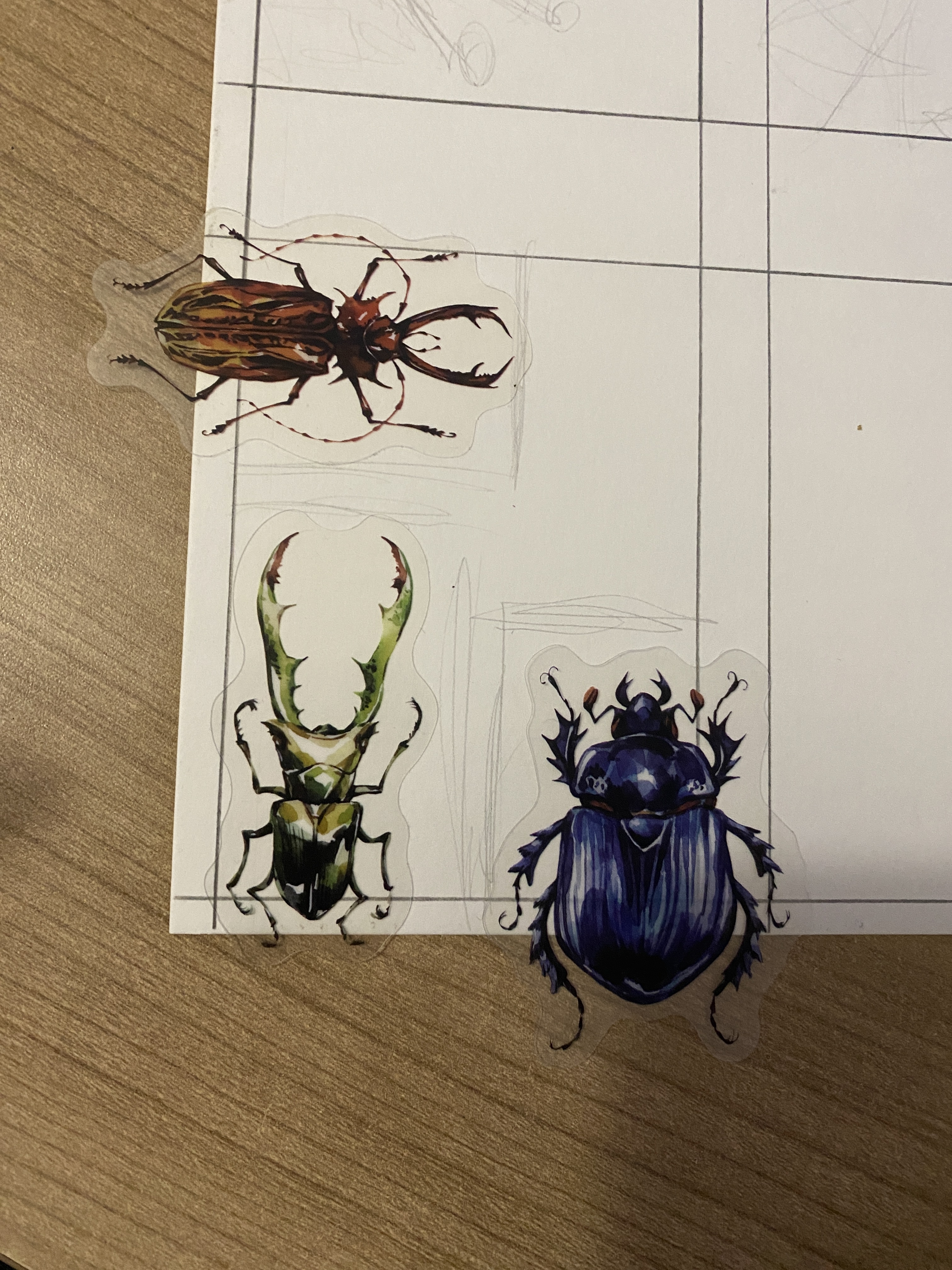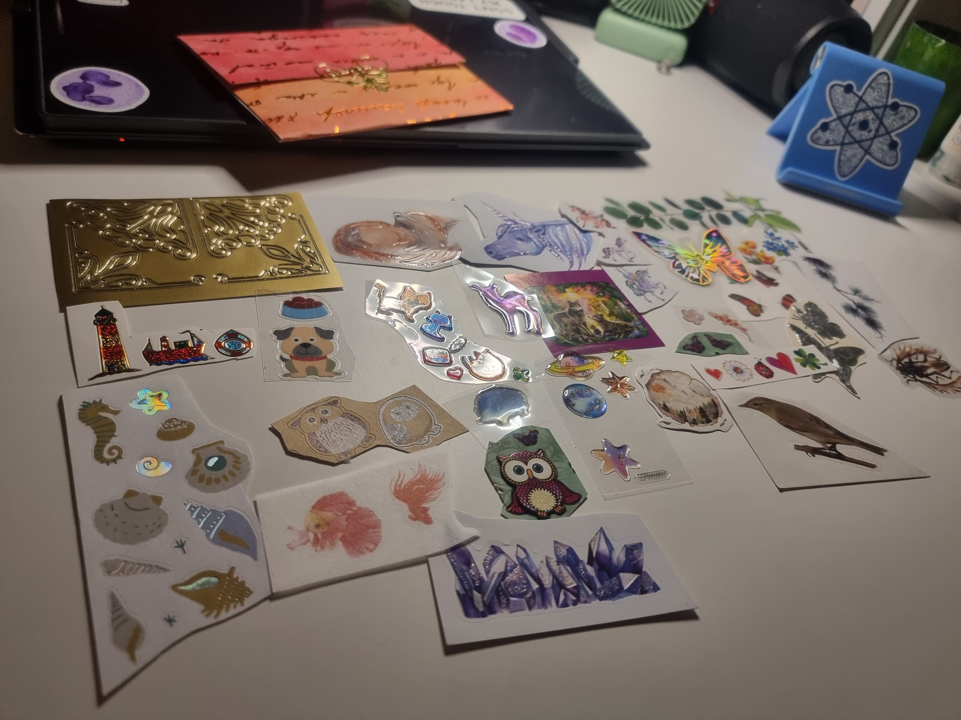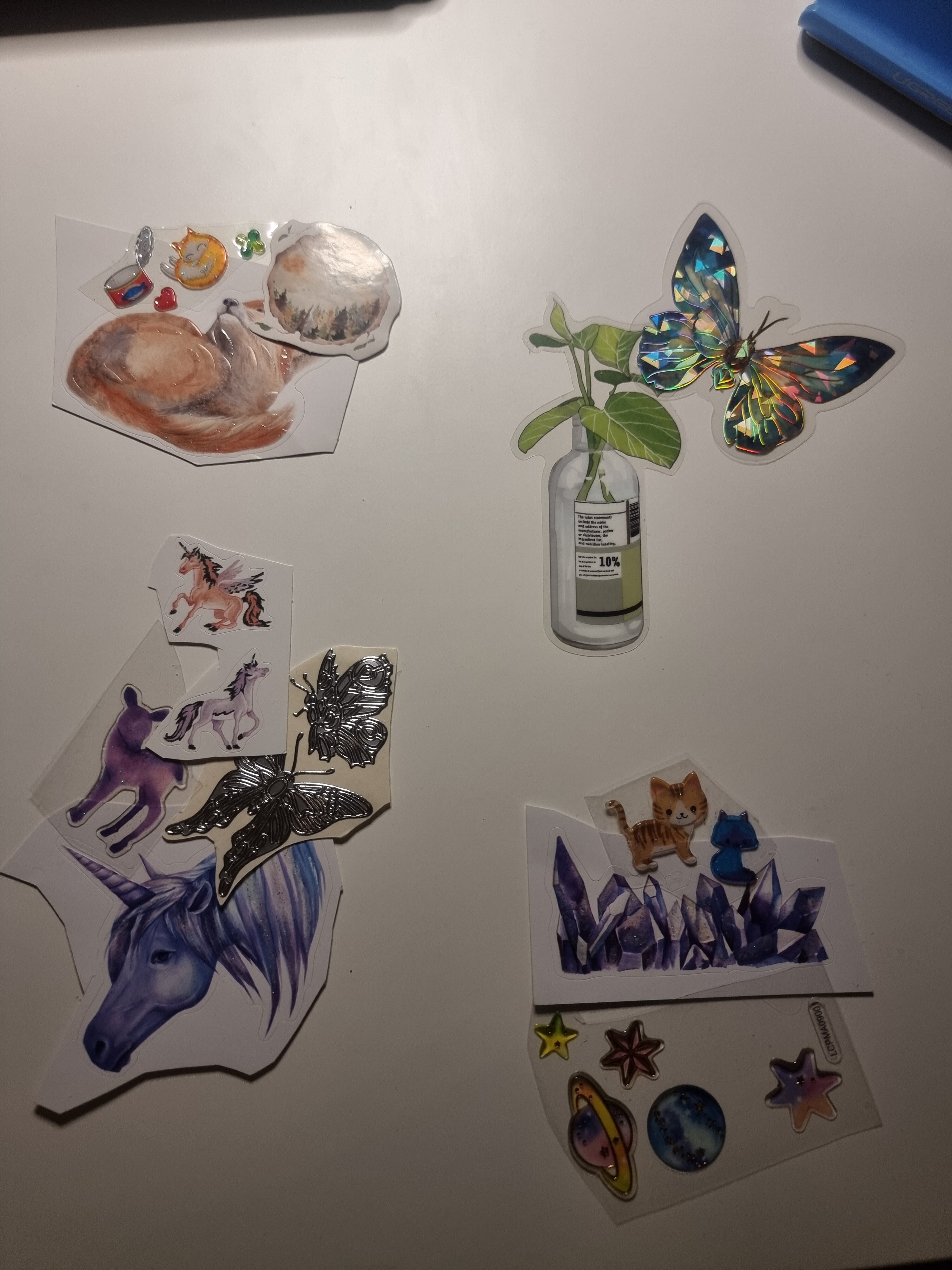 Hier würde ich den Fuchs noch weiter malen und ihm eine Art Halsband oder Kette über das Halstuch malen, an dem der Anker als Anhänger hängt, vielleicht mache ich das auch mit einem der Sticker. Was ich in den Hintergrund mache weiß ich nicht, da davon nicht viel vorhanden ist, aber vielleicht nutze ich ein paar der maritimen Sticker in Anlehnung an den Anker.