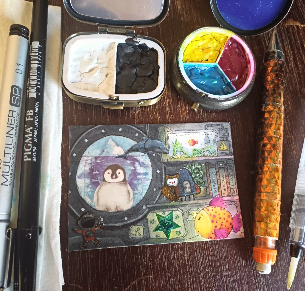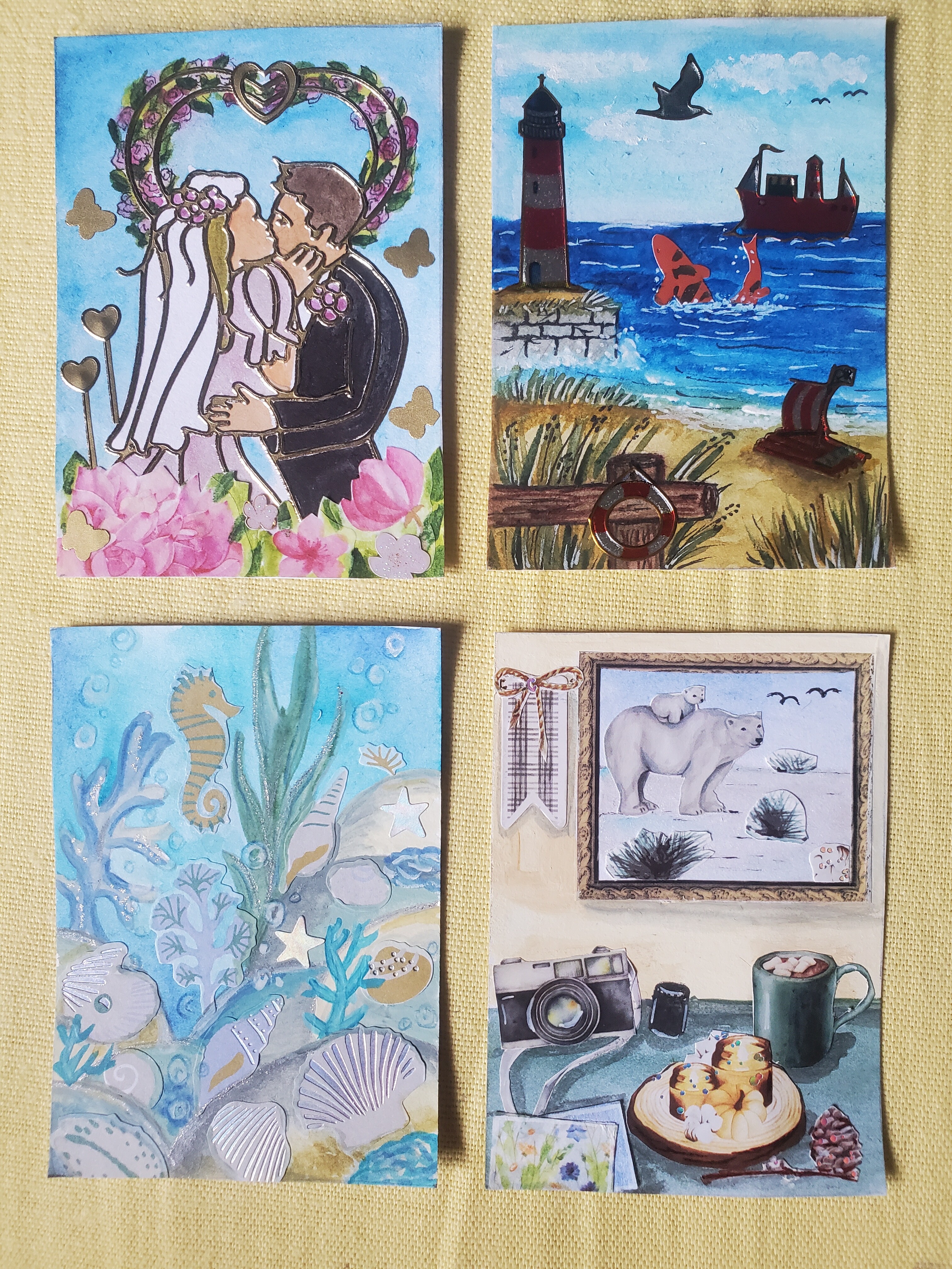Ich hätte en potzielles Kärtchen für die Aktion. Weiß nur noch nicht ob es dieses wird welches ich einreichen werde. Gemalt mit poscas und dadurch hat es was Kinderbuch mässiges finde ich