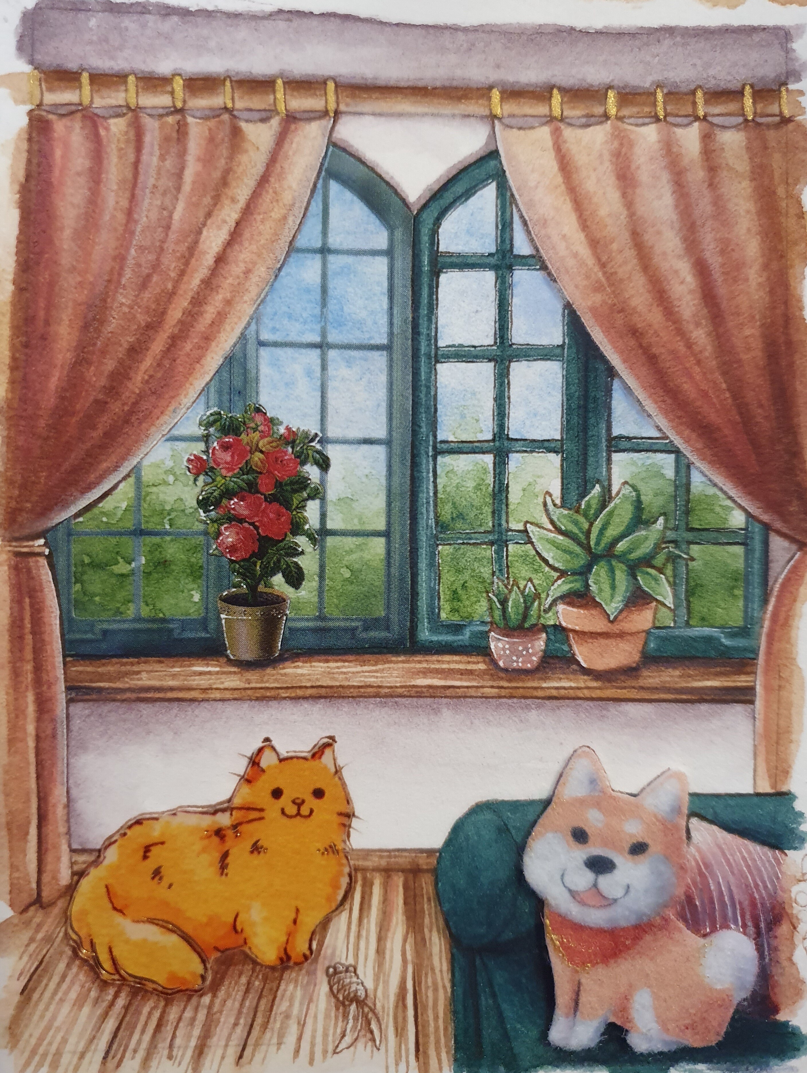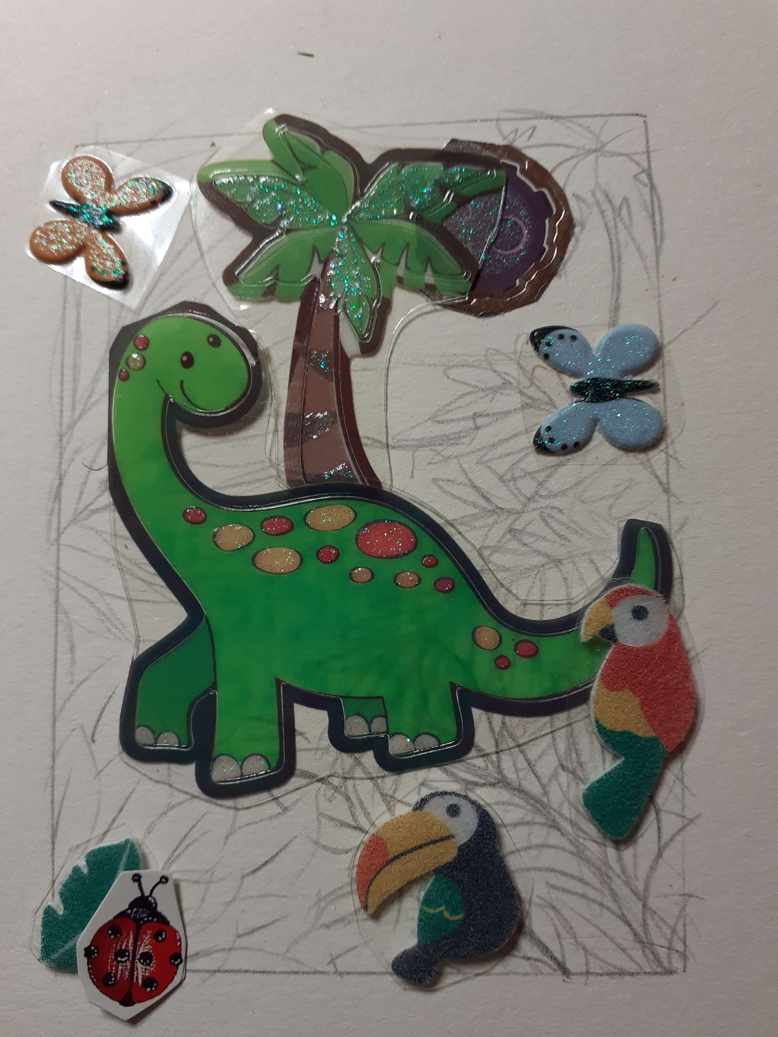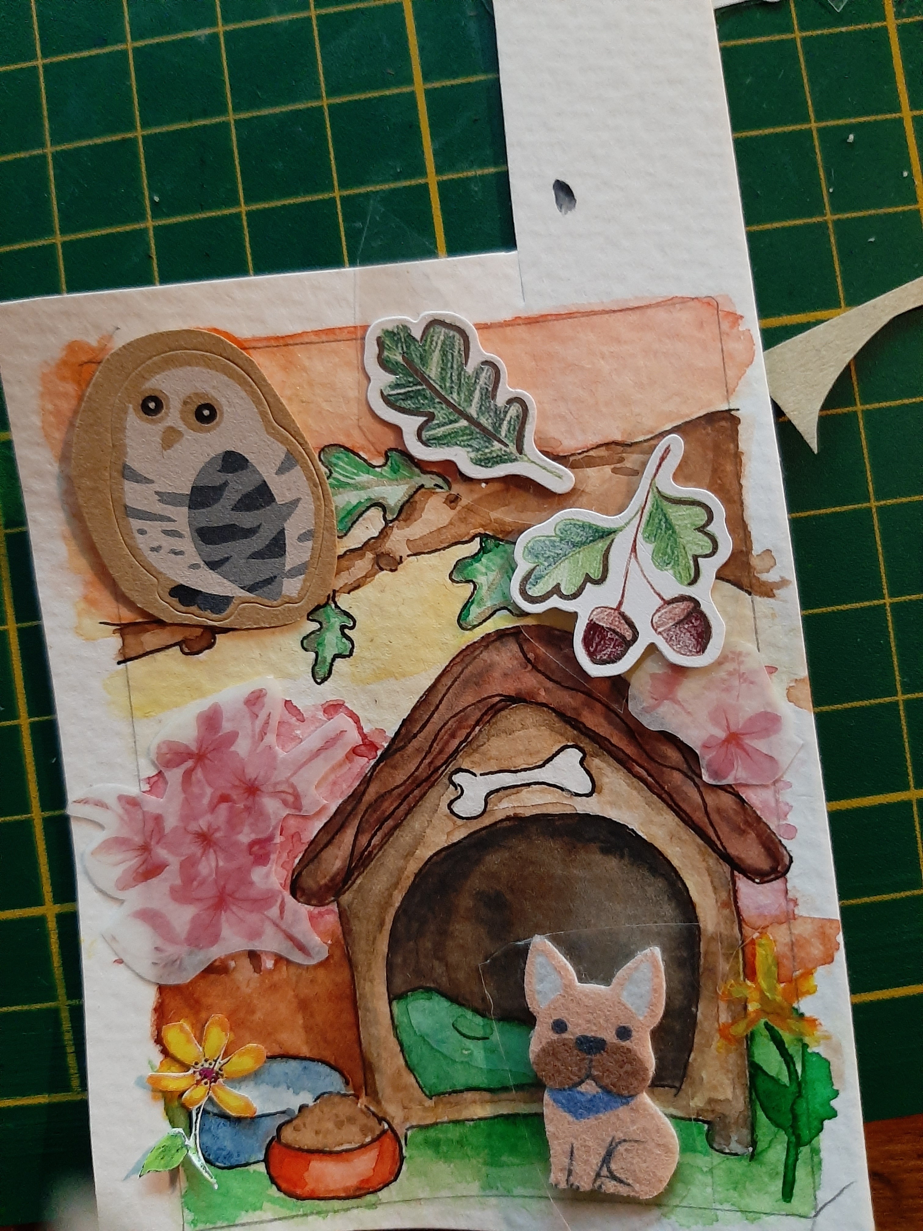 Eine Karte wäre fertig - der Fenstersticker und der Hundesticker waren in der Wundertüte, der Katzensticker war von mir c:
