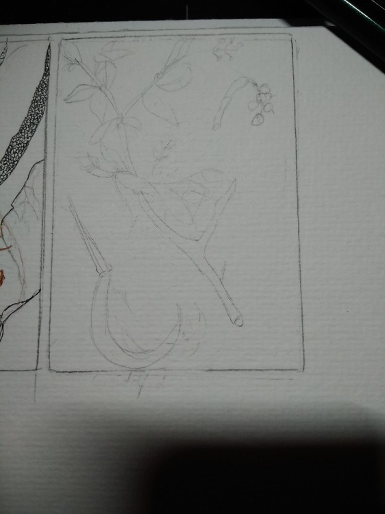 Ich hab den aufbau der Mistelkarte jetzt noch mal was verändert und neben der Zeichnung auch Mädesüß, Brunnenkresse und Eisenkraut versucht mit einzubringen.