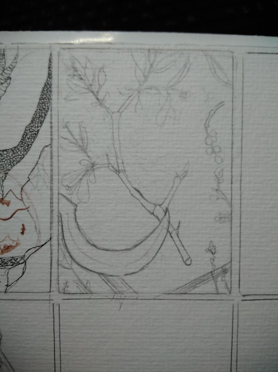Ich hatte überlegt, als drittes Motiviert mal keine Person oder Kreatur, sonder eine Pflanze zu zeichnen, nämlich eine Eichenmistel ( loranthus europaeus), die ja als heiligste Pflanzen der Druiden galt und nur unter bestimmten Bedingungen geerntet werden sollte/durfte