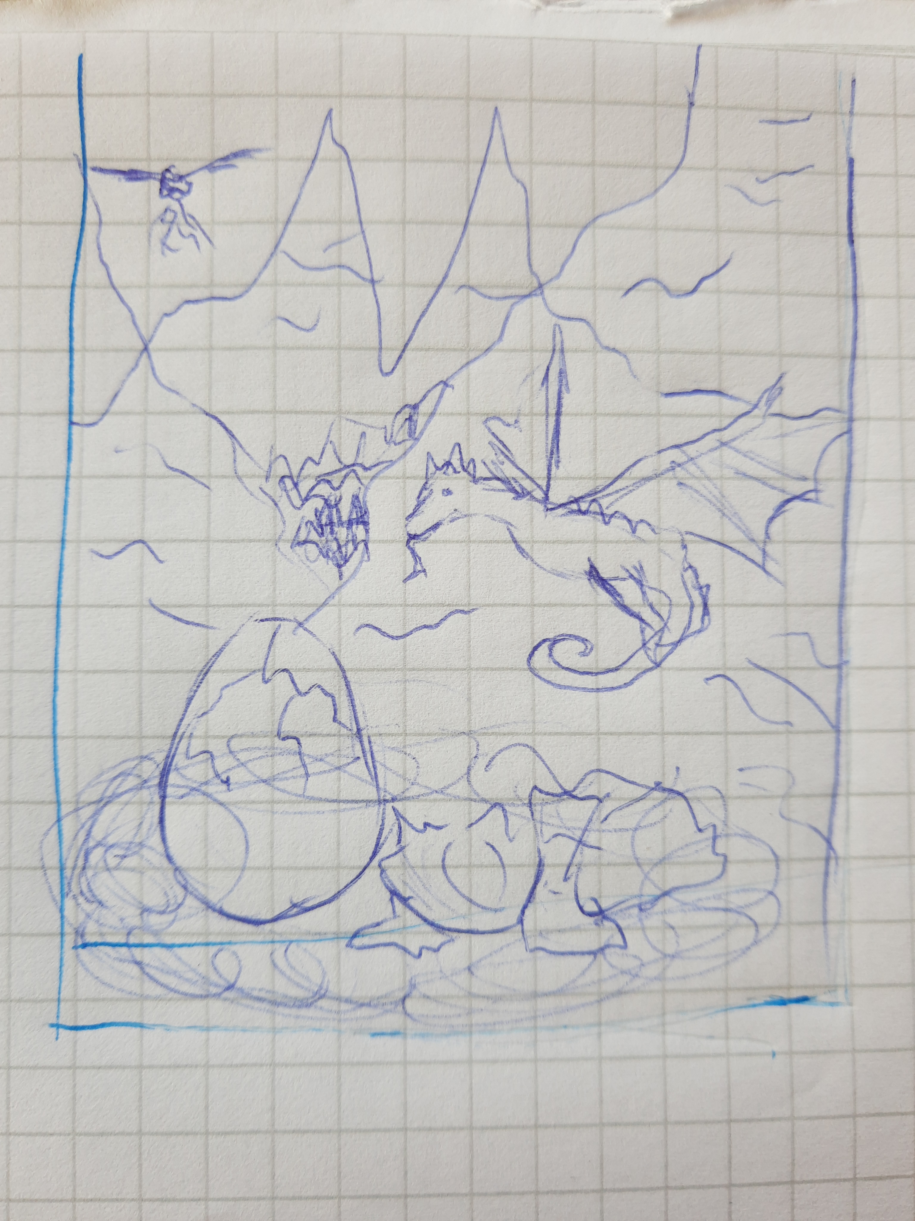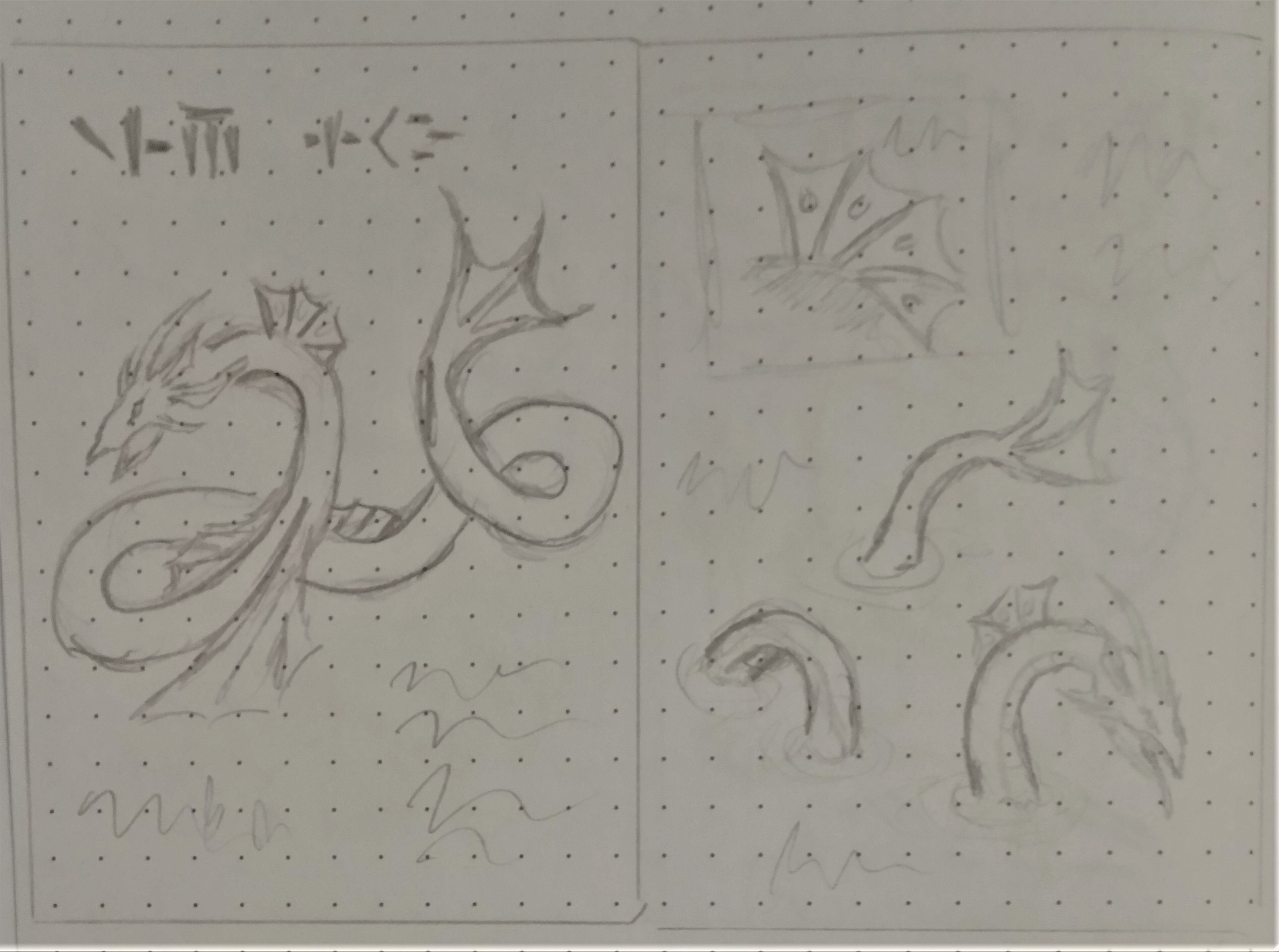 Ich habe jetzt eine Reihe von Skizzen für meine dritte Karte. Ich möchte den weiter oben genannten Plan mit dem Mini-Buch im Kakao-Format umsetzen. Es soll ein Buch über Drachenarten sein. Ich habe jetzt für alle Doppelseiten Entwürfe, es fehlen nur noch Einband, Rückseite sowie die erste bzw. letzte Seite.