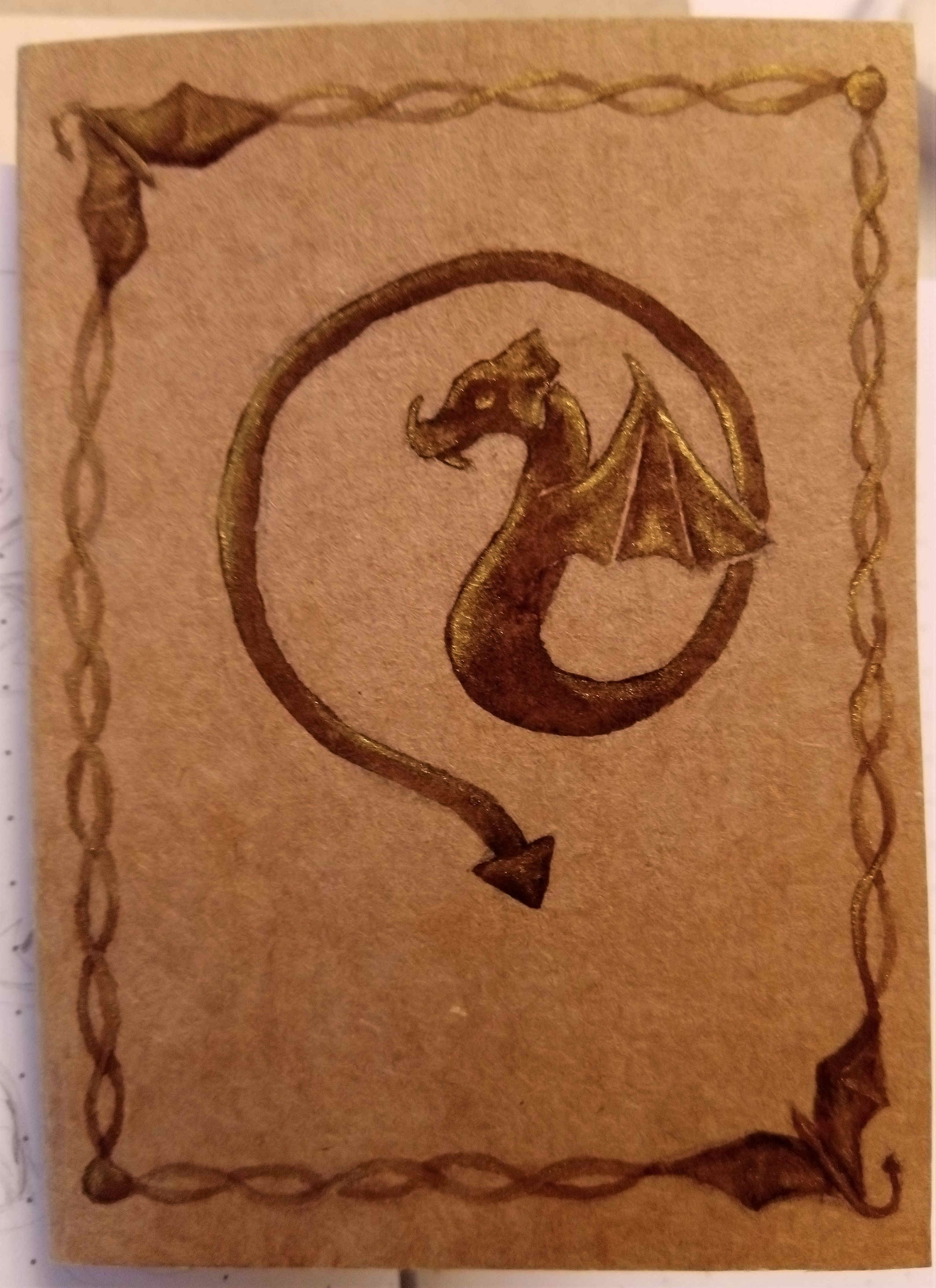 Die Idee beim Buchdeckel ist, dass es wie ein Ledereinband mit Goldelementen aussehen soll.