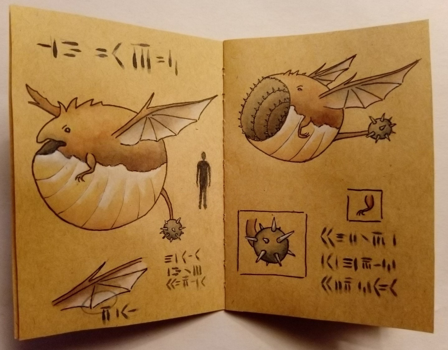 Soo, jetzt habe ich alle Innenseiten fertig. Ich habe sie mal schnell abfotografiert, ich muss noch schauen, dass ich an einen Scanner komme (habe keinen), weil ich die Seiten ohne Scanner wohl kaum sauber digitalisiert bekomme. Aber einen groben Eindruck sollten die Fotos geben.