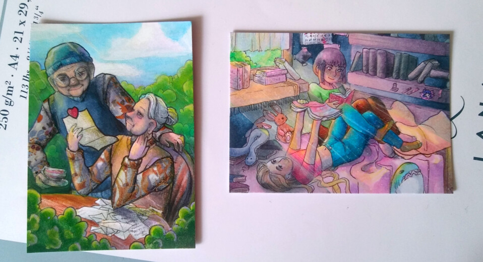 Ich hab die erste Karte etwas mehr schattiert und bin gestern mit der zweiten fertig geworden. Hier nochmal ein Bild damit man sie wenigstens mal gesehen hat bevor ich sie fertig mache. :D