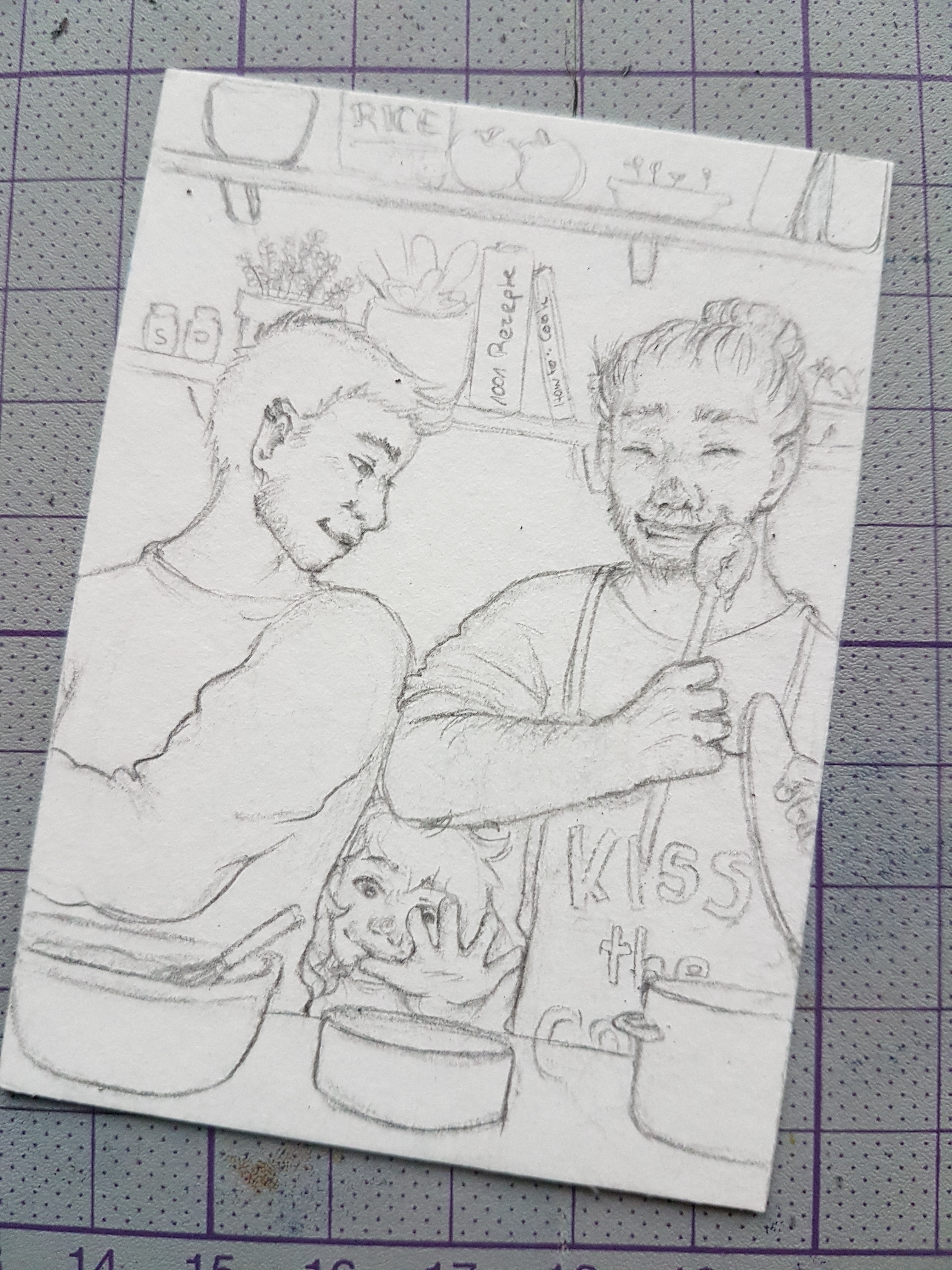 Zu sehen ist ein kochendes Pärchen und deren Tochter, die versucht zu naschen :3