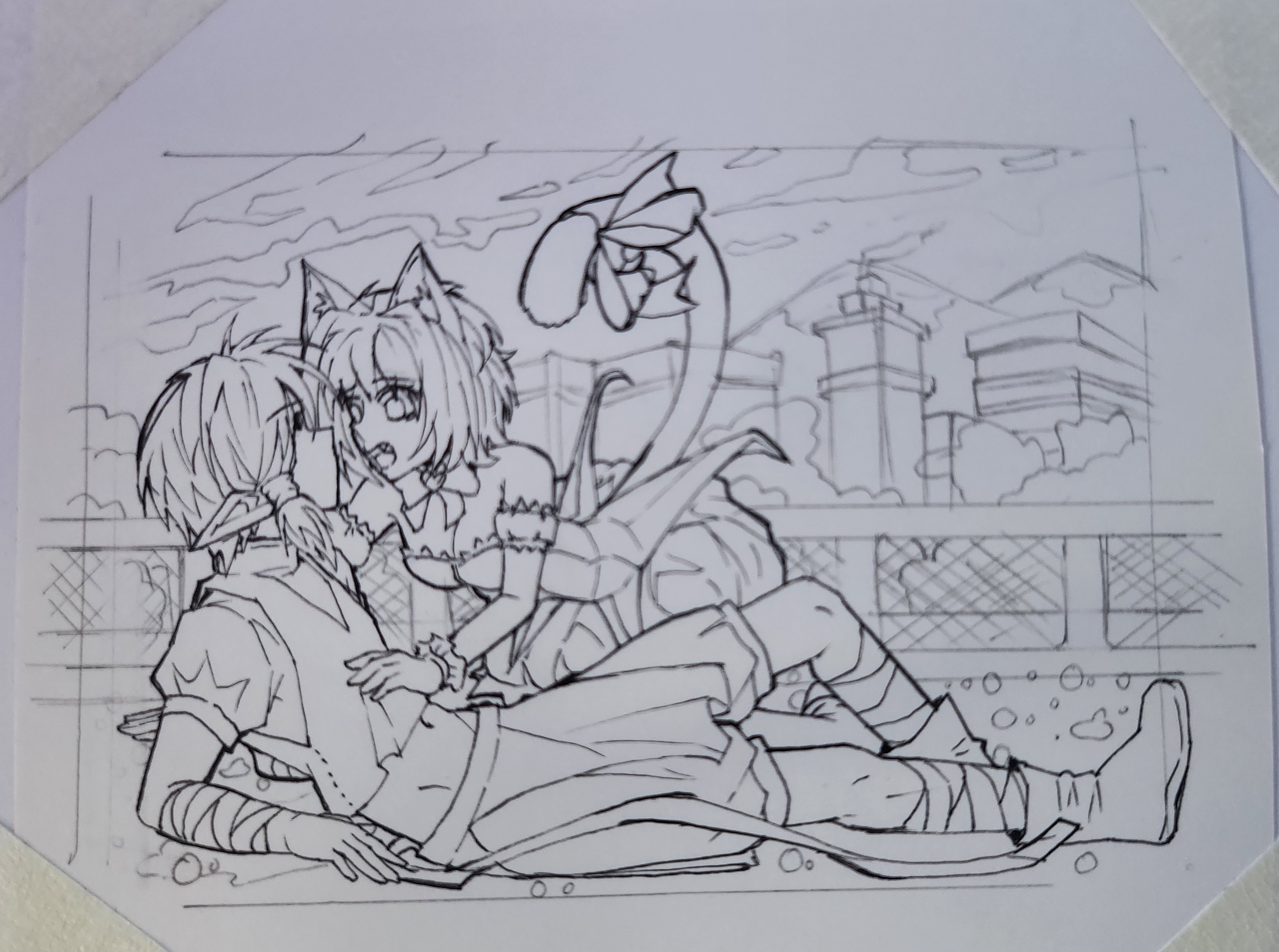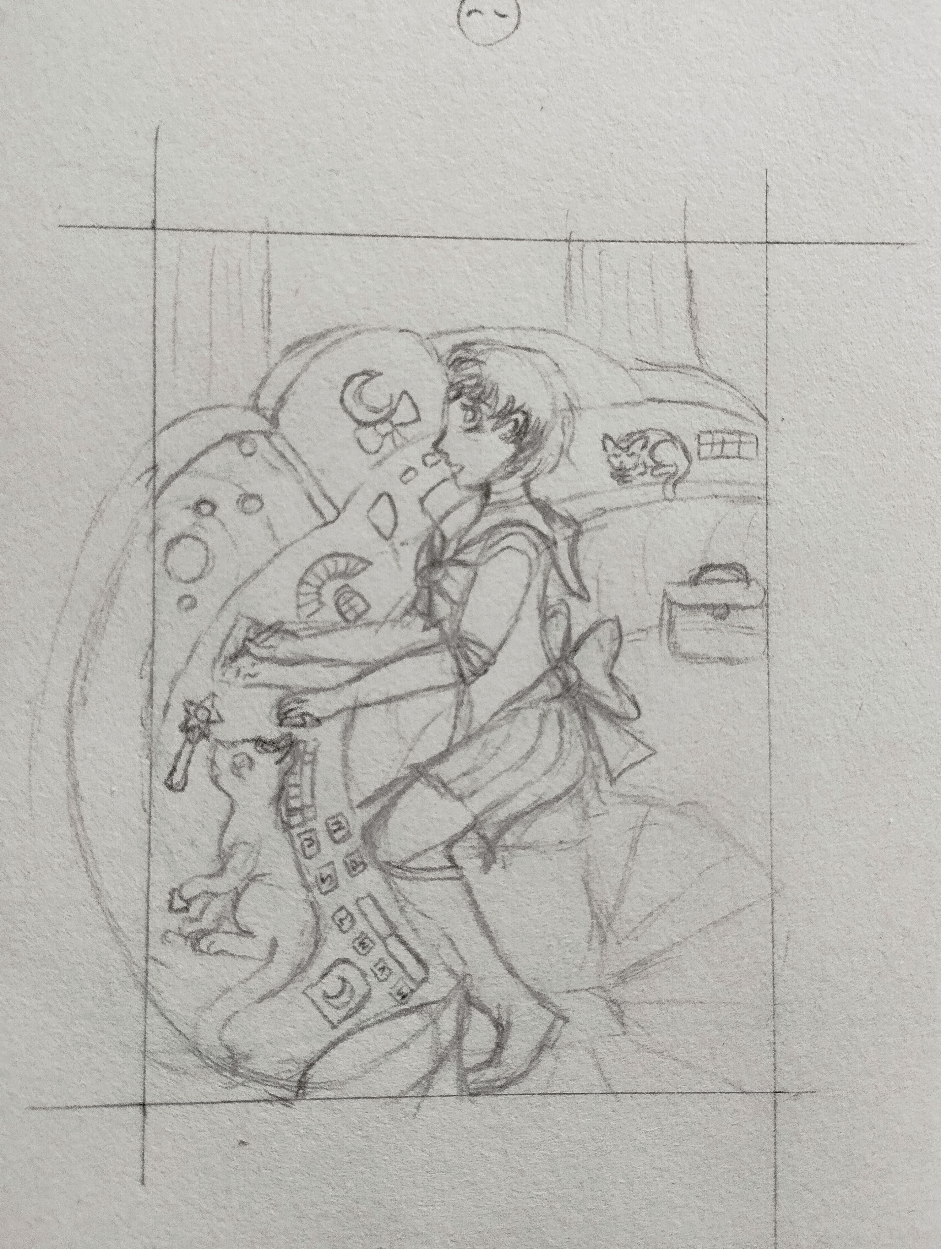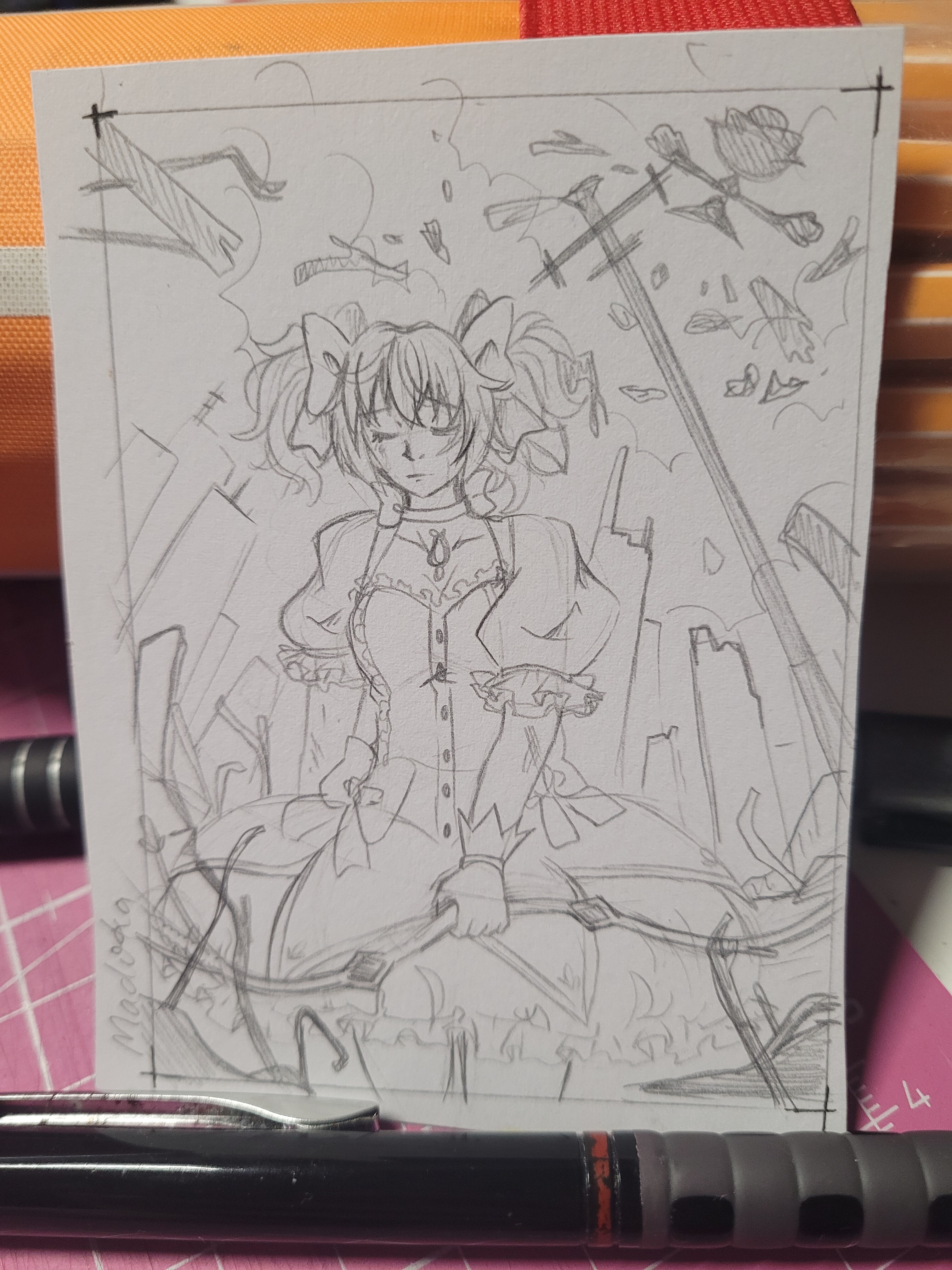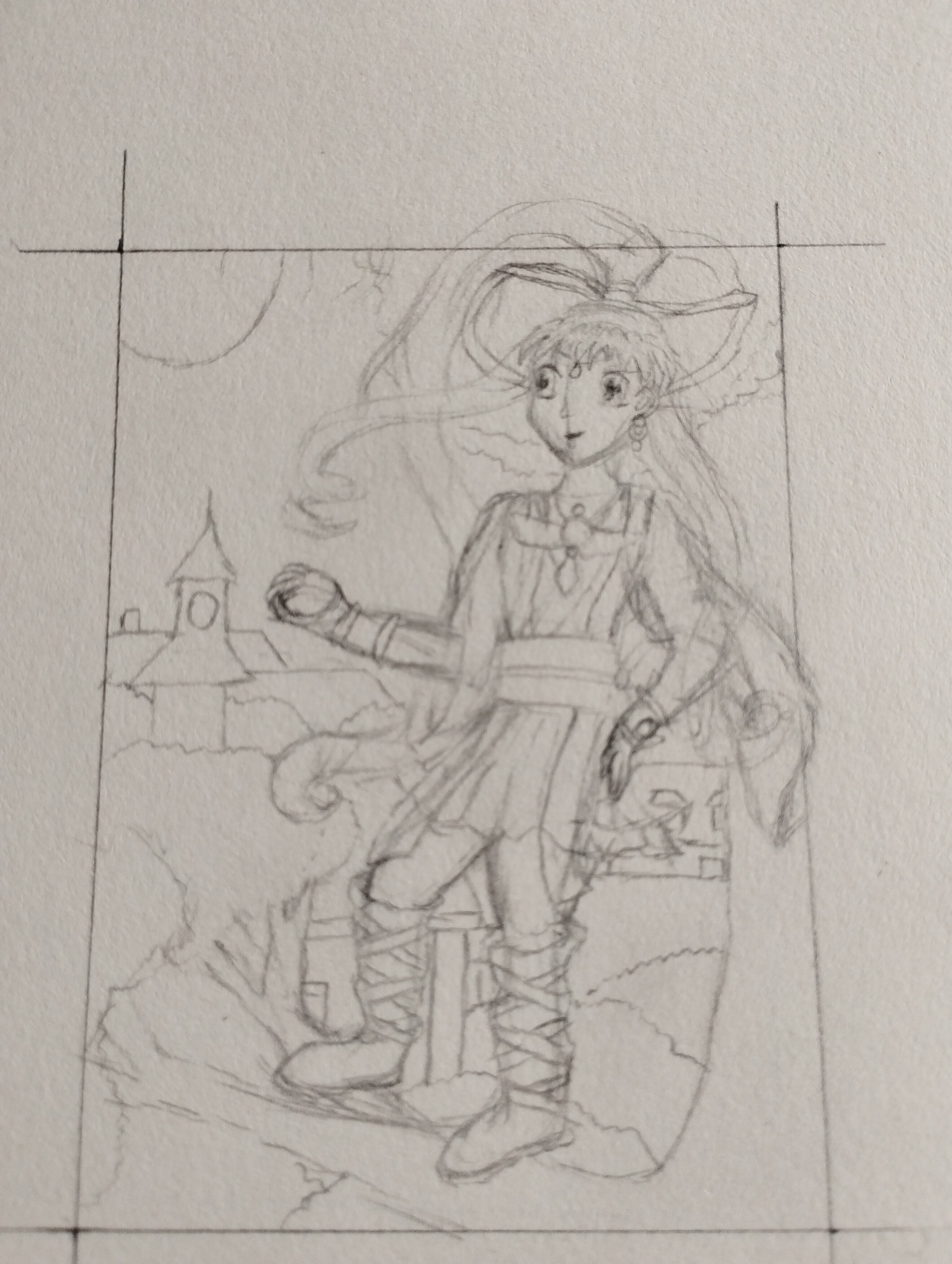 Ich hab mich Mal an die Skizze für meine erste Karte gemacht. Soll eine Karte zu Kamikaze Kaito Jeanne werden.