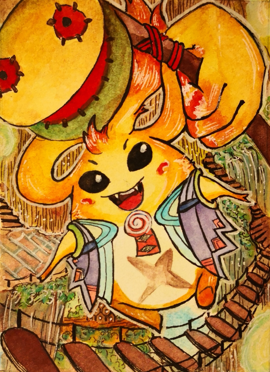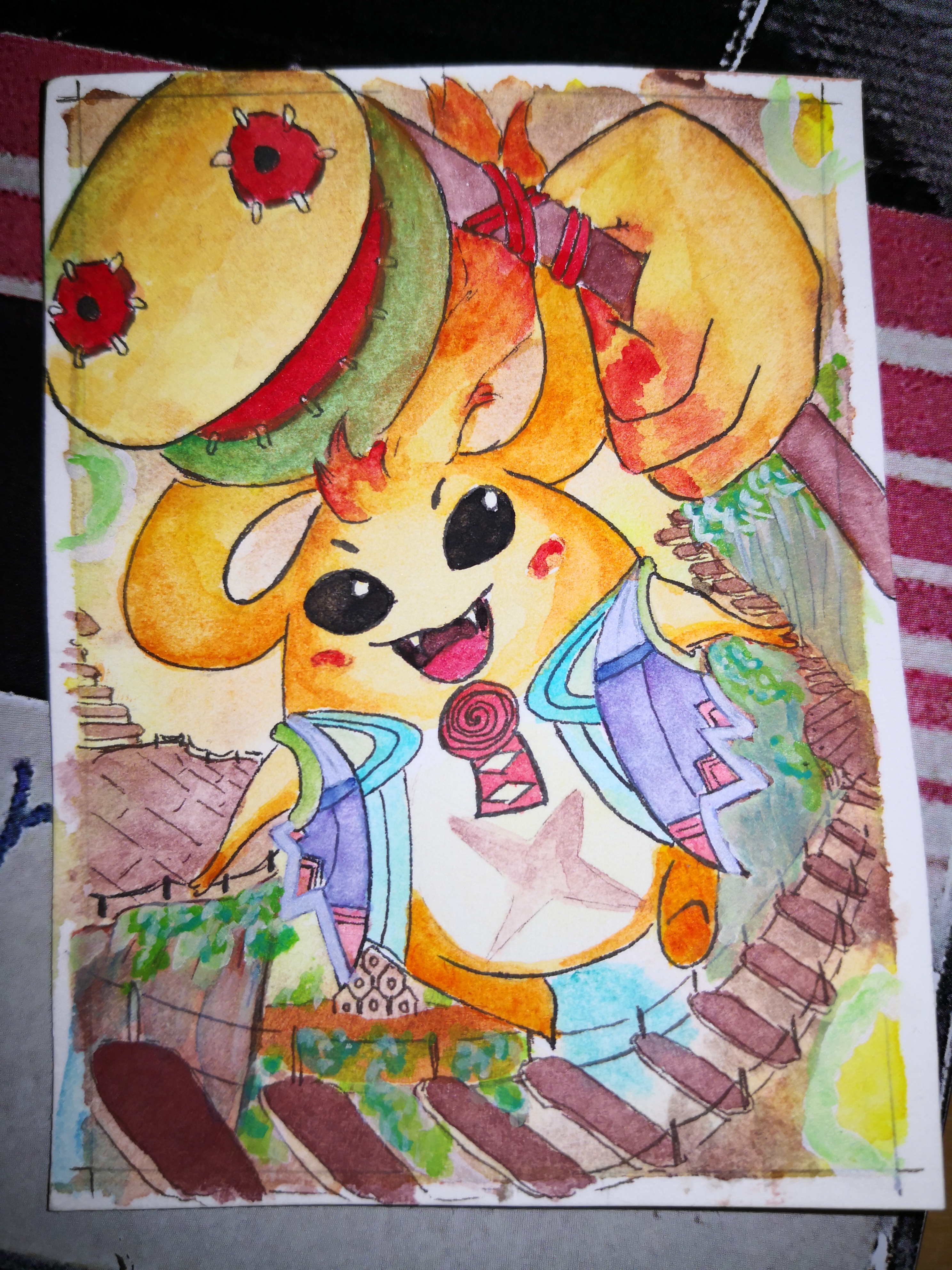 Ich habe mir in paar Liner geschnappt und Strukturen rein gezeichnet. Wenn die Karte so gefällt, wäre sie fertig. Die Farben sind nur wegen wem Foto so knallig. Habe gerade keinen Zugriff auf meinen Scanner. Ich würde sie erstmal so hochladen und Montag gegen einen farblich besseren Scan austauschen.