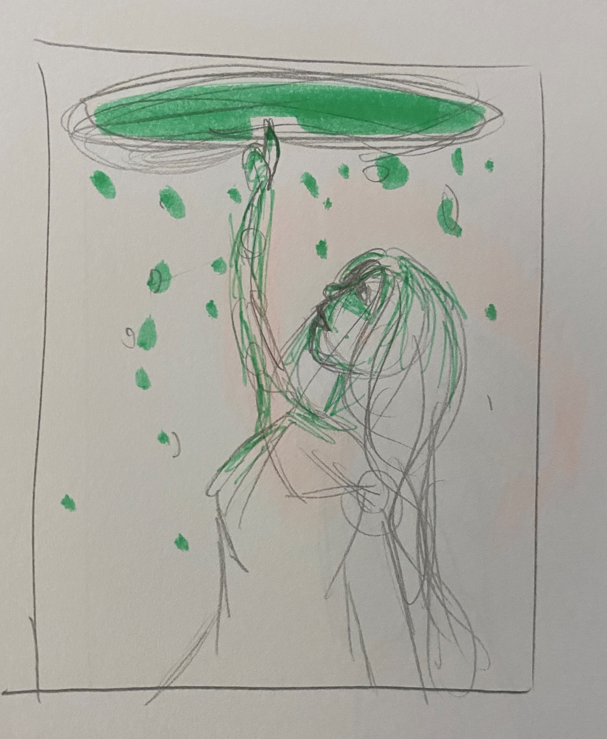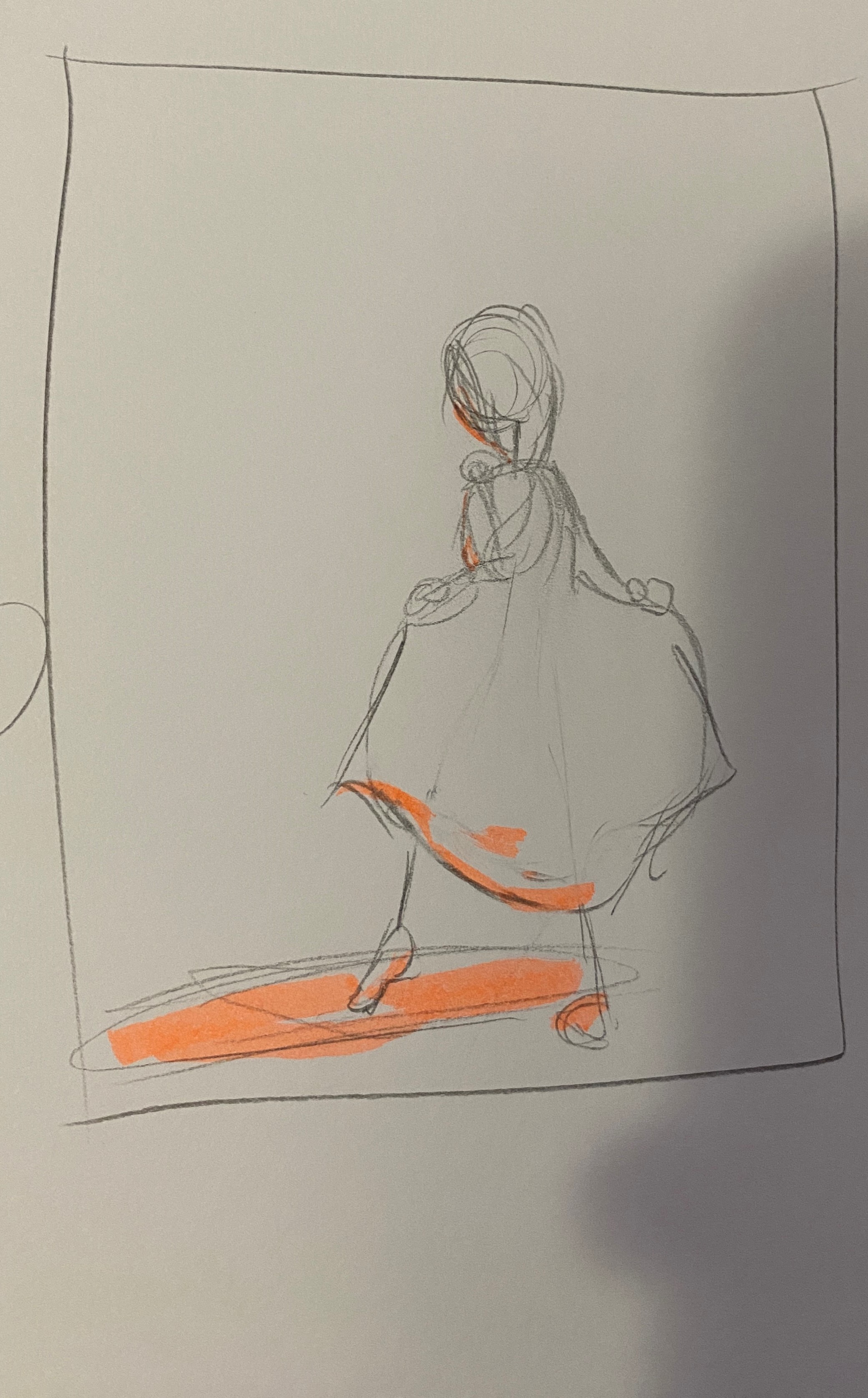 Rechts: Vertikaltuchakrobatik. Entweder wird der Anzug neon oder das Tuch, hab mich noch nicht so recht entschieden. Im Hintergrund ein fancy Saal mit dem Publikum an runden Tischen. Referenz für die Pose: