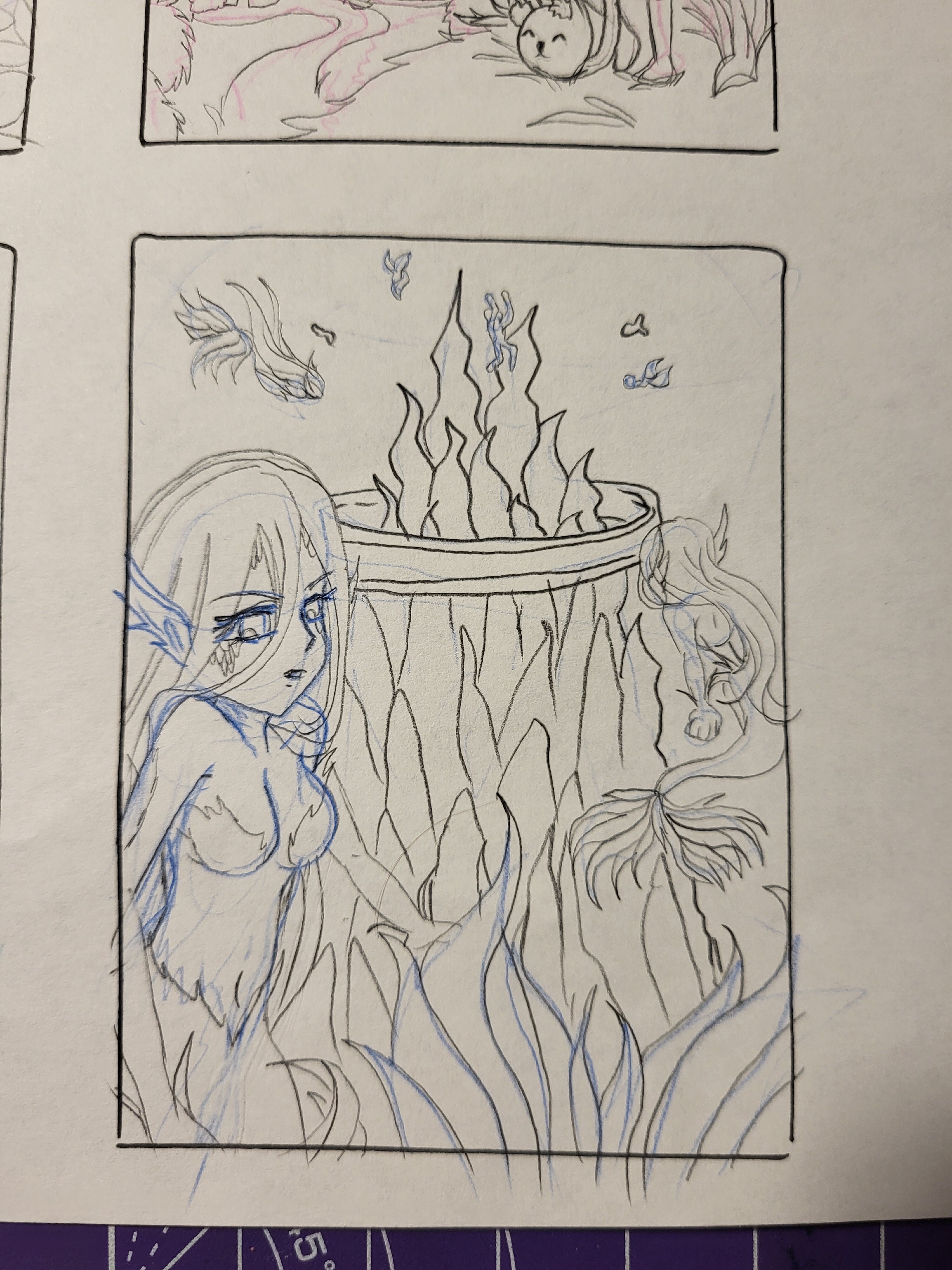 Die Skizze sieht spannend aus. Ich hoffe du schaffst die farbliche Umsetzung wie du sie dir vorstellst ^^