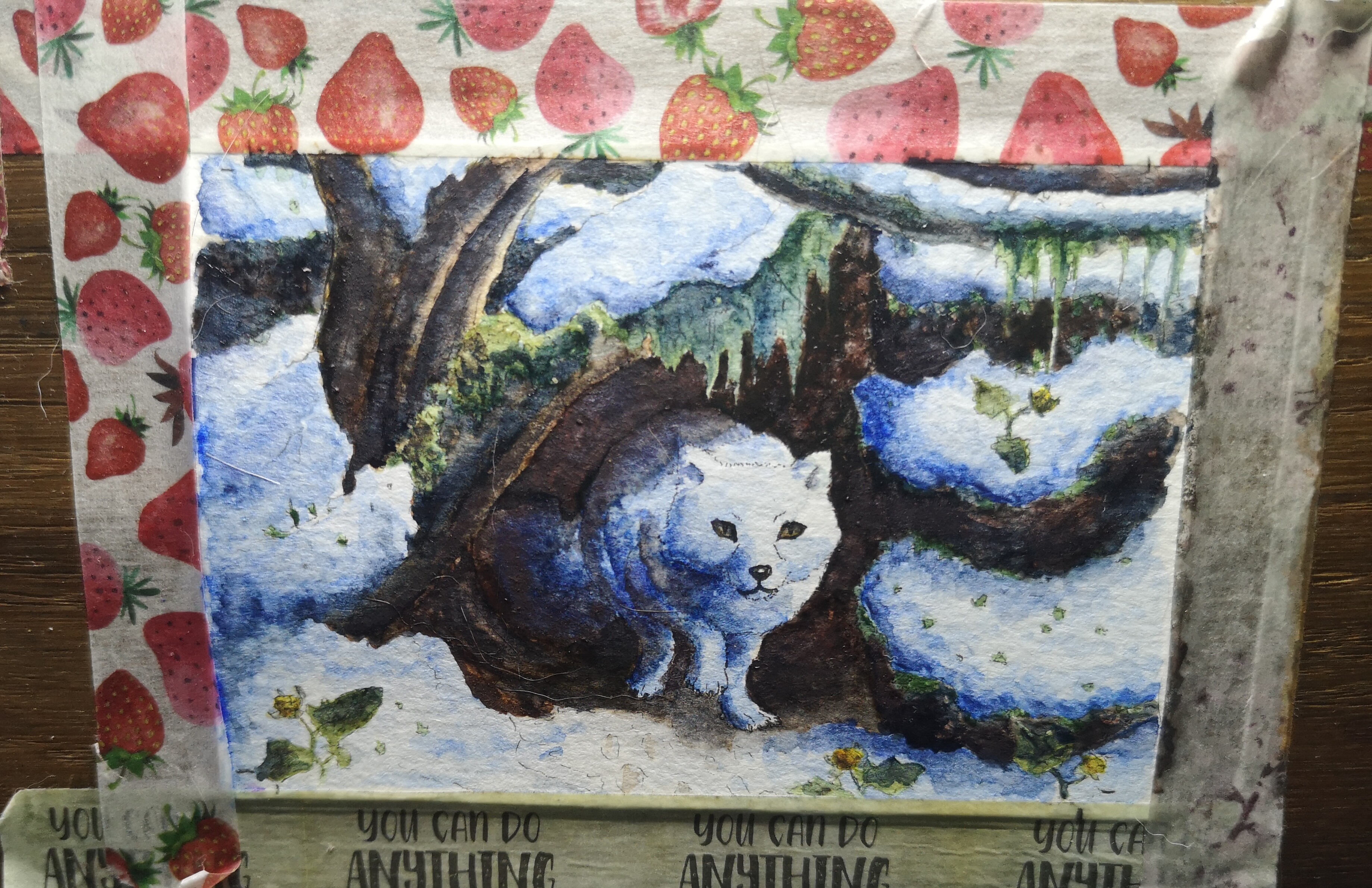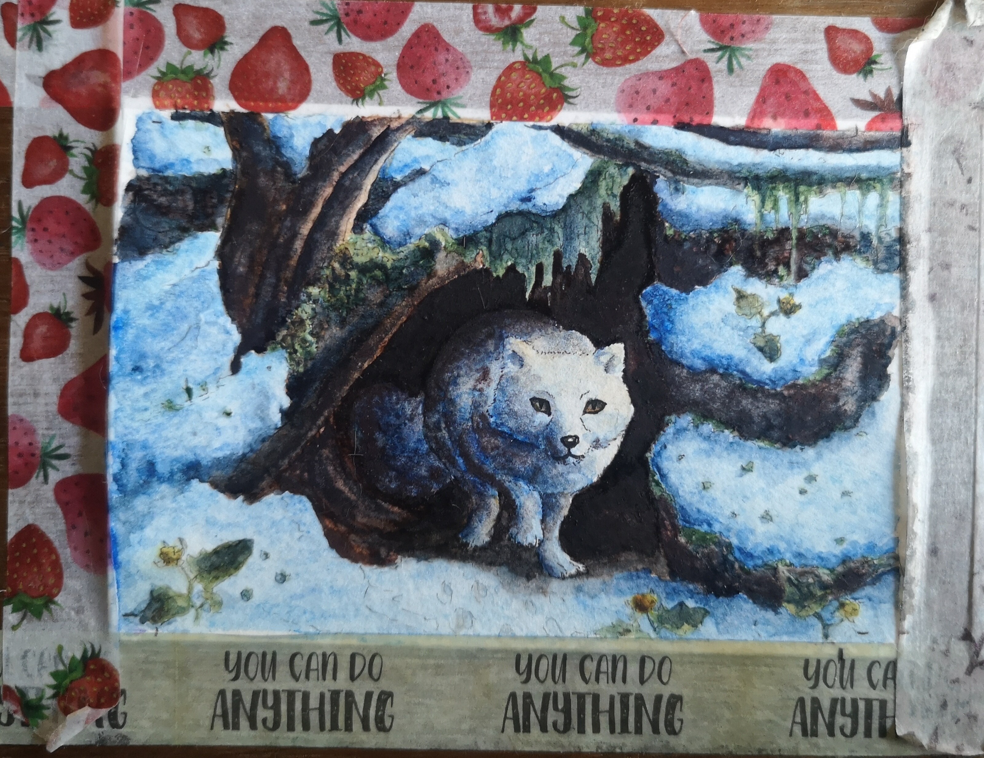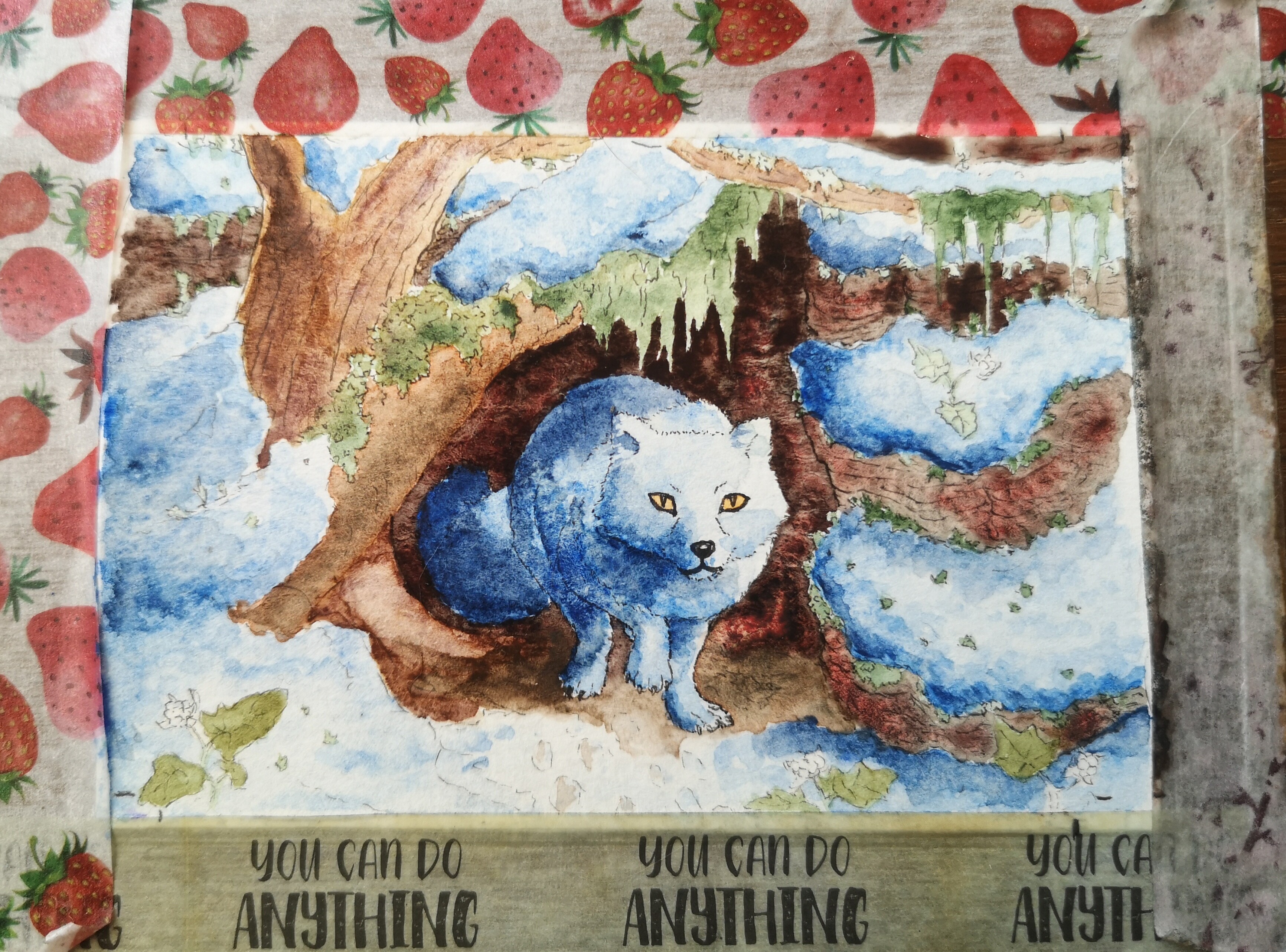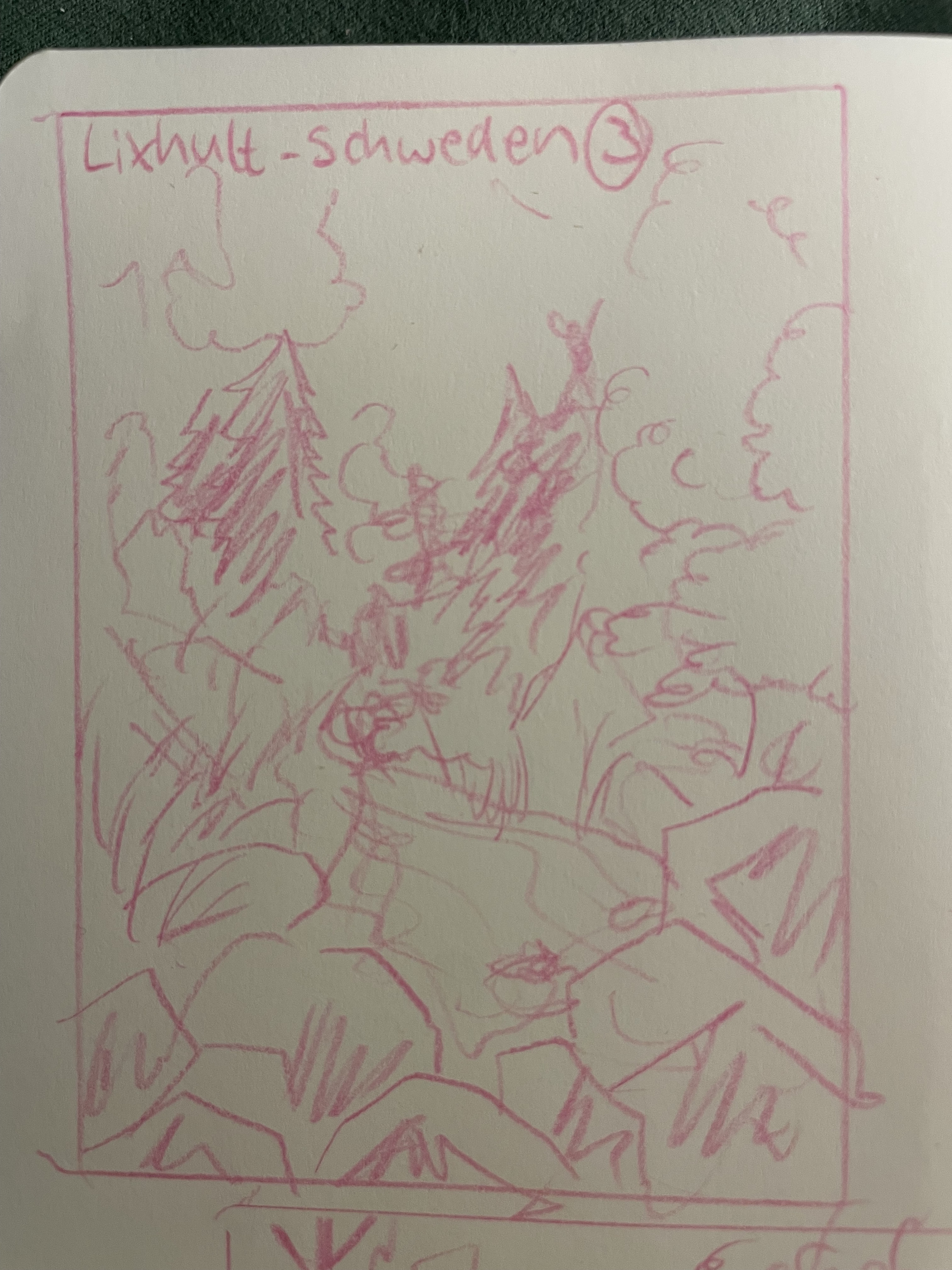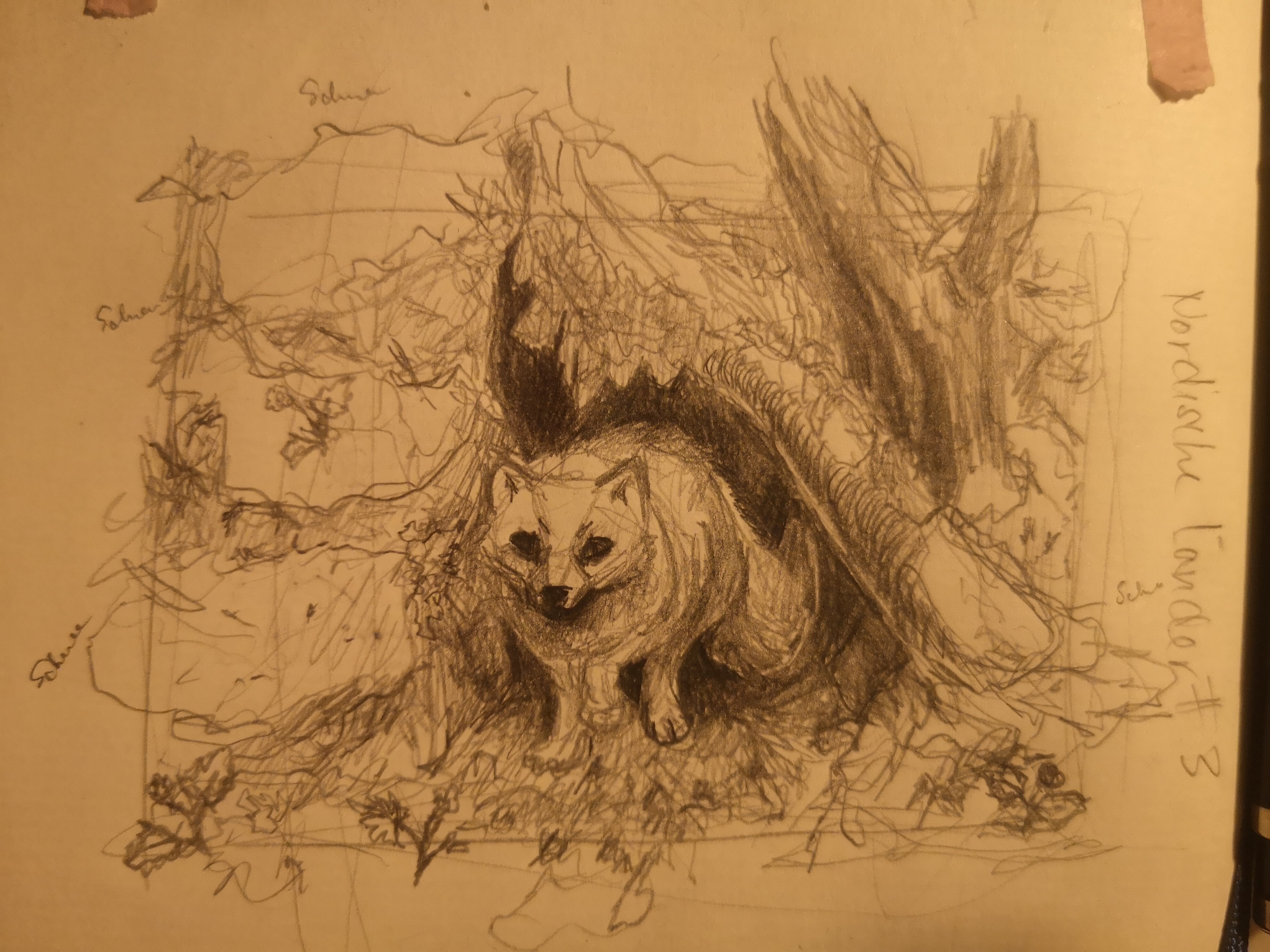 Und da wäre die Skizze. Hab beide Löcher irgendwie fusioniert und den Fuchs rein plaziert. Oh, und kleine Moltebeeren und Schnee ergänzt.