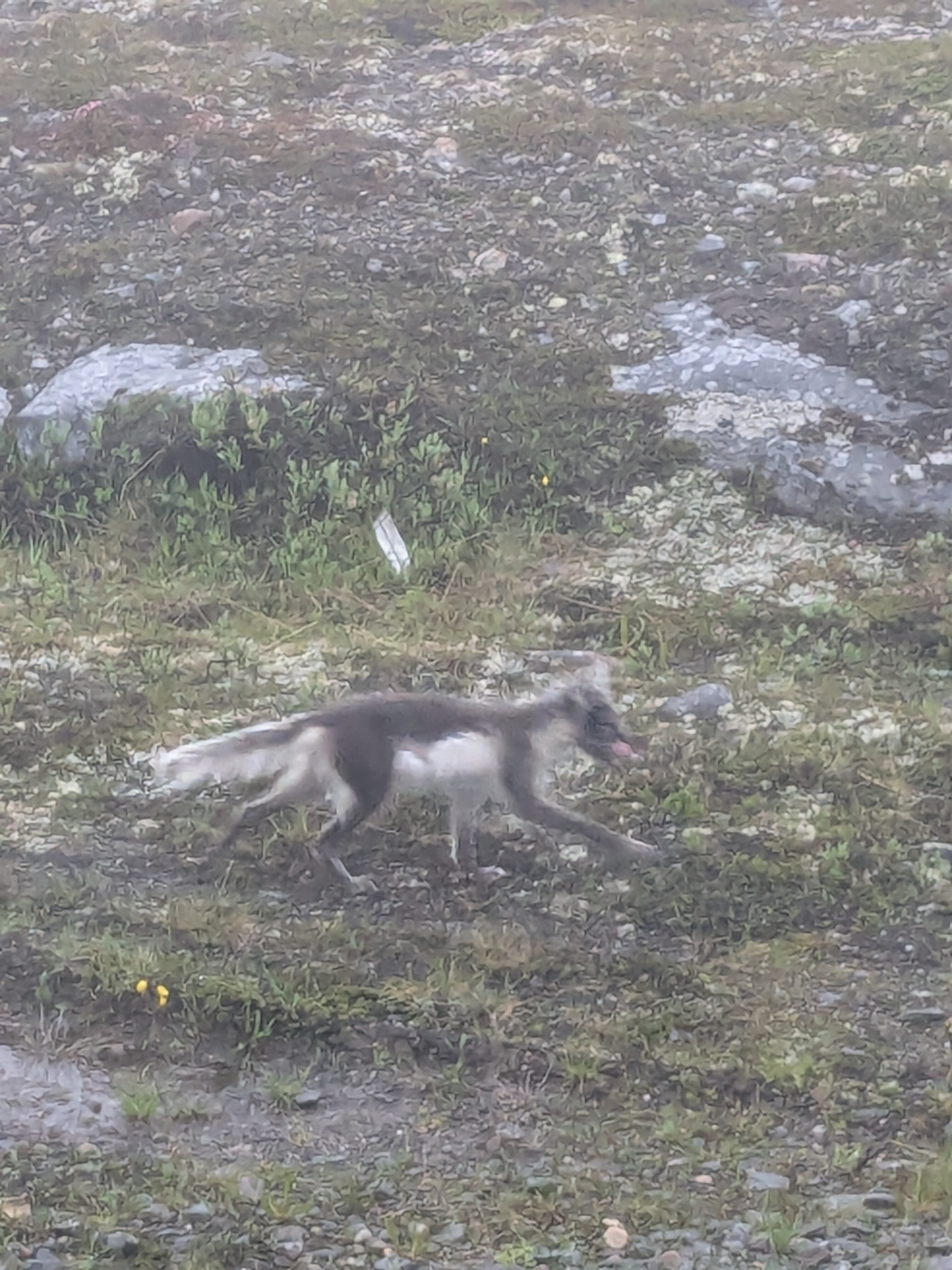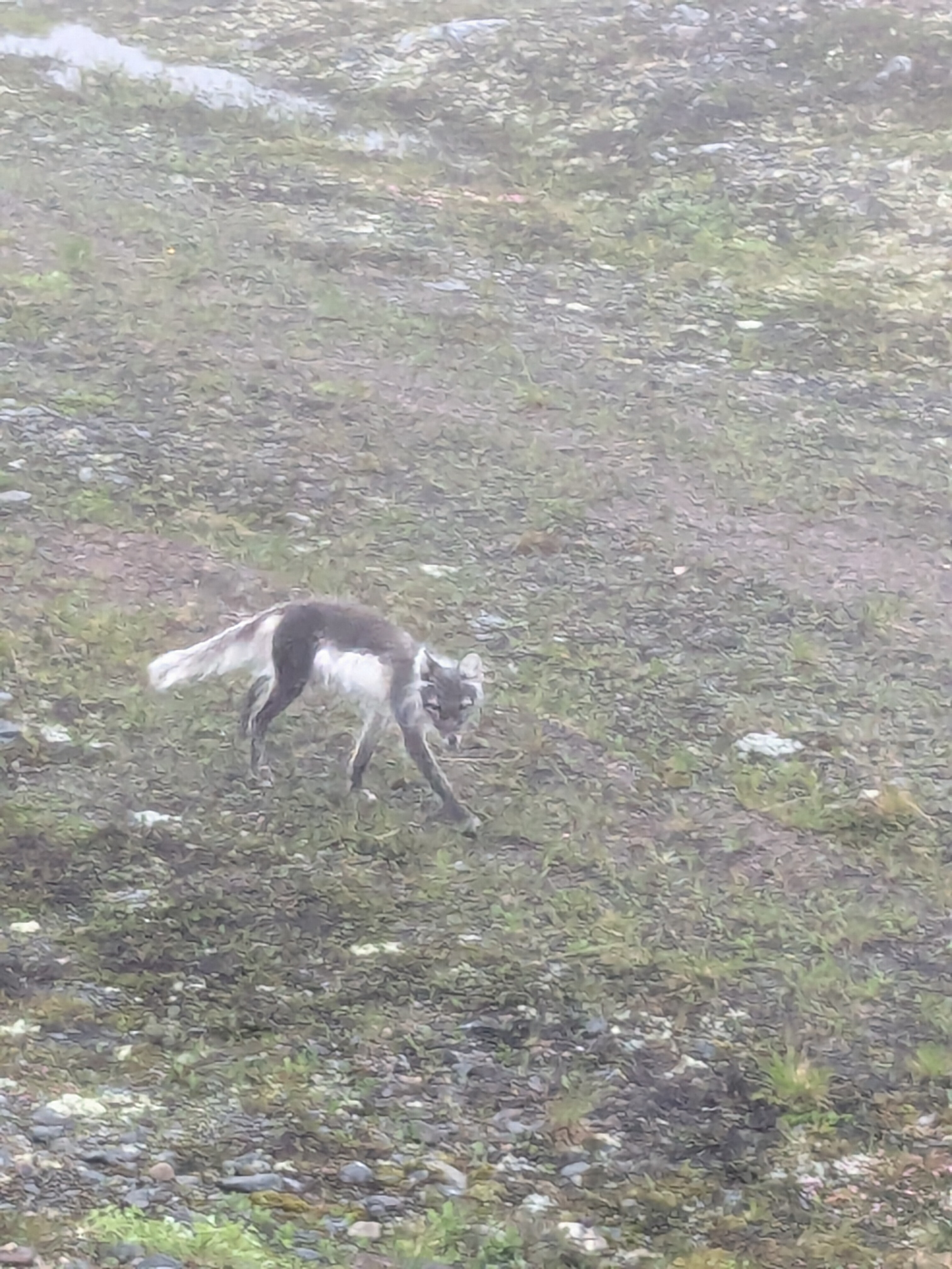 Leider unscharf, aber immerhin ein Foto von der Begegnung mit meinem bisher einzigen Schneefuchs im Norden Skandinaviens vom letzten Sommer.