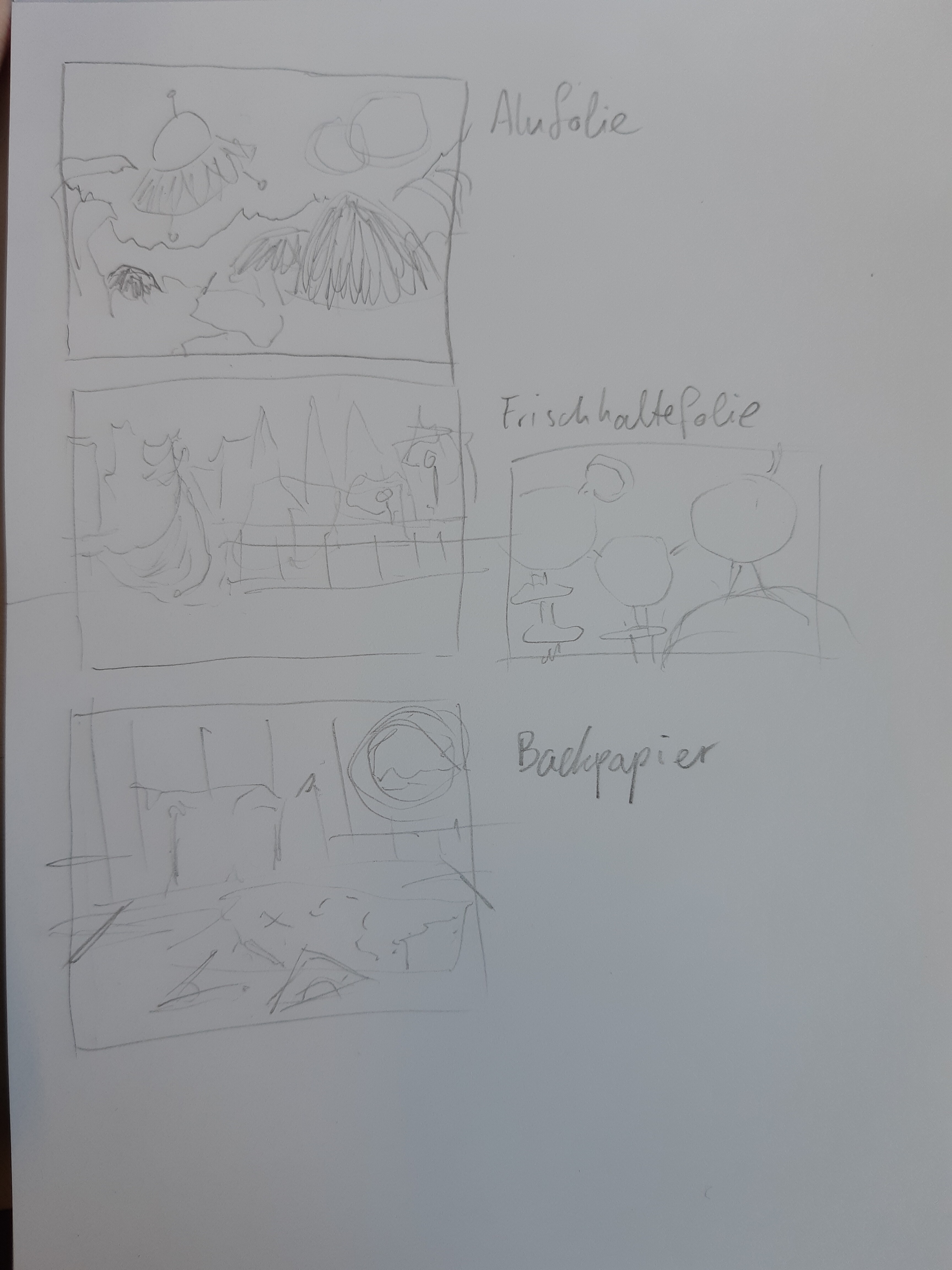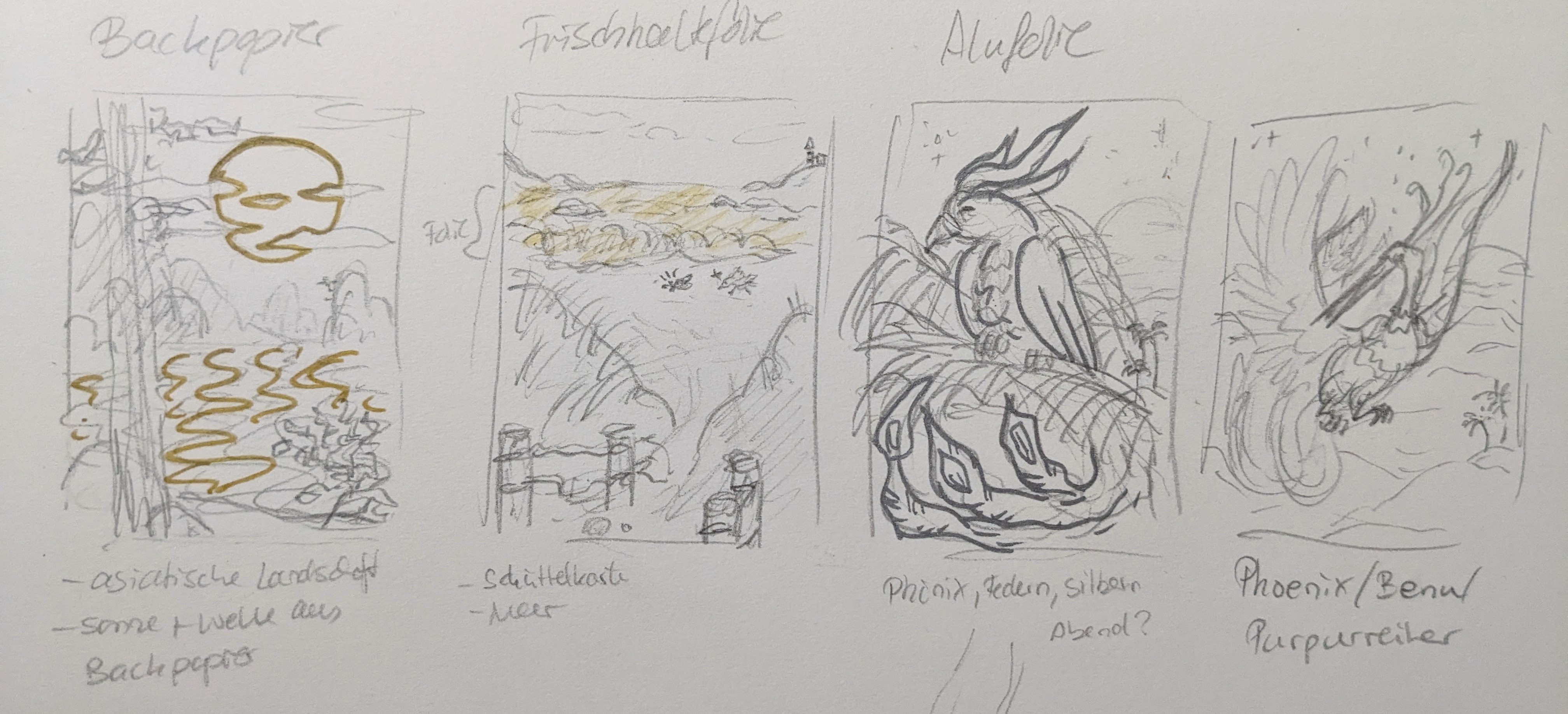 Hier mal die erste Angefangene Skizze für Wasser und die Thumbnails für die anderen beiden.
