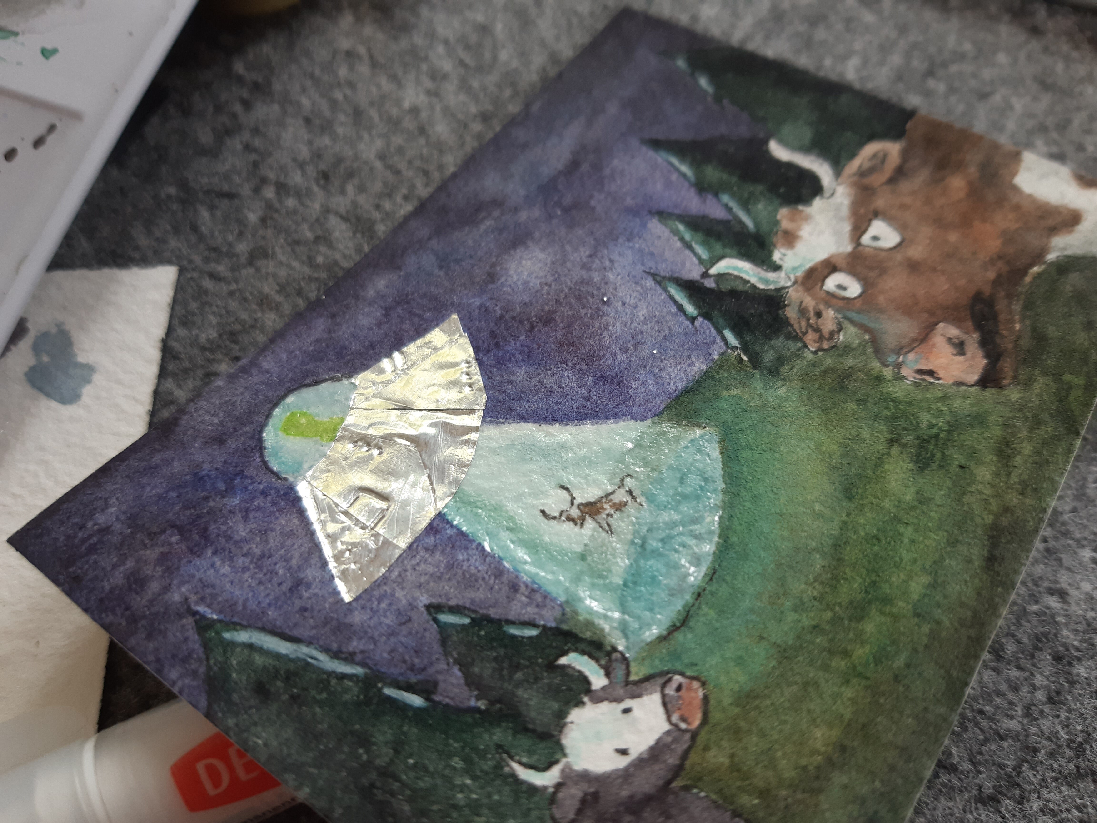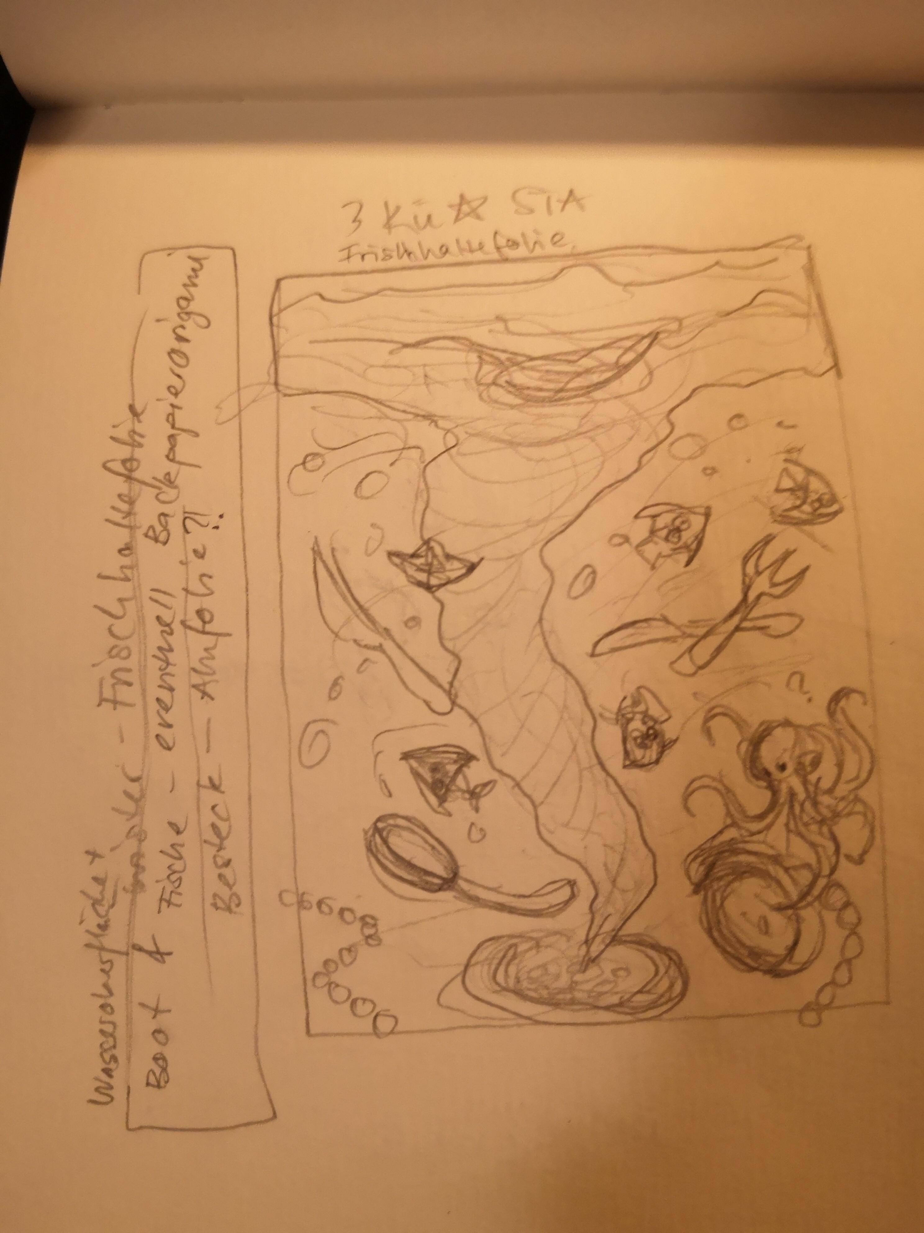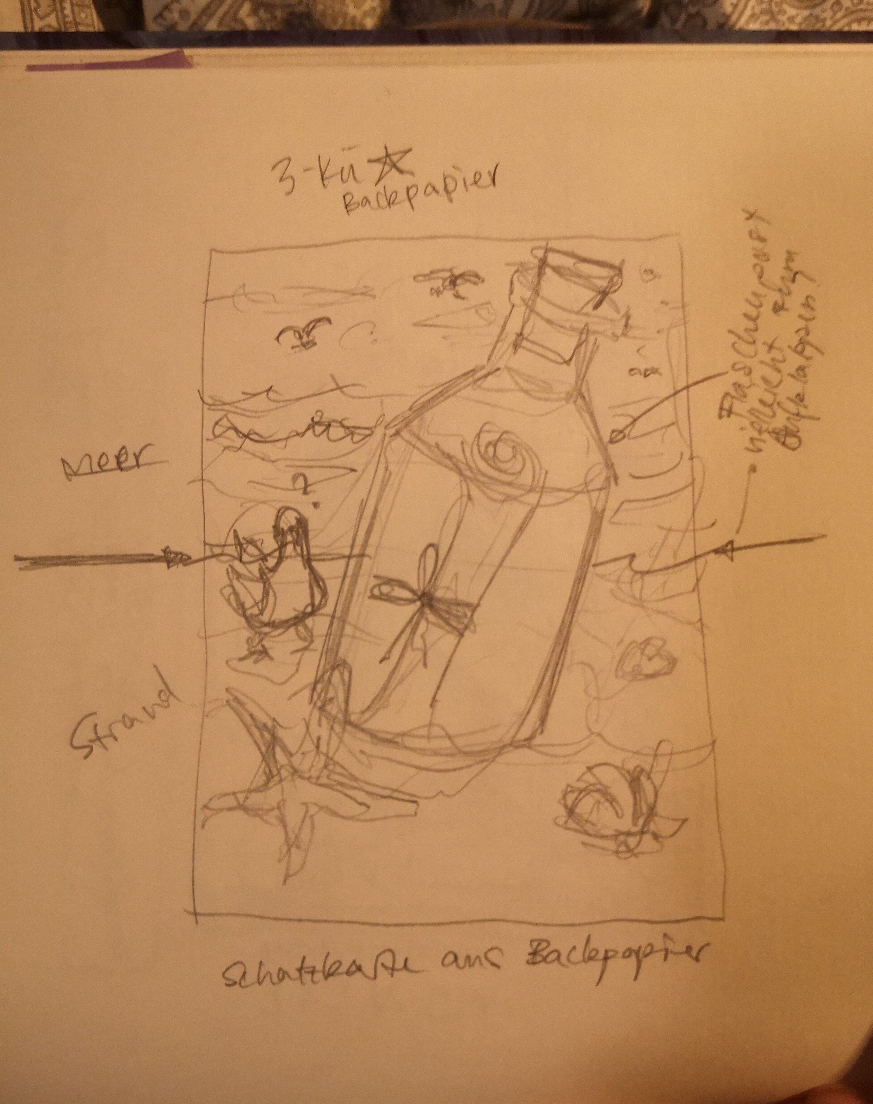 Bzgl der Skizzen, die mit dem Strudel und der Flaschenpost wären so auf jeden fall passend, bei der Morchel bin ich allerdings nicht ganz sicher. Die Idee das auf Holz zu machen wäre cool aber einfach nur die Holzmaserung als Hintergrund wäre auf jeden fall zu wenig, da müsste zumindest noch ein bisschen mehr angedeutet werden :)