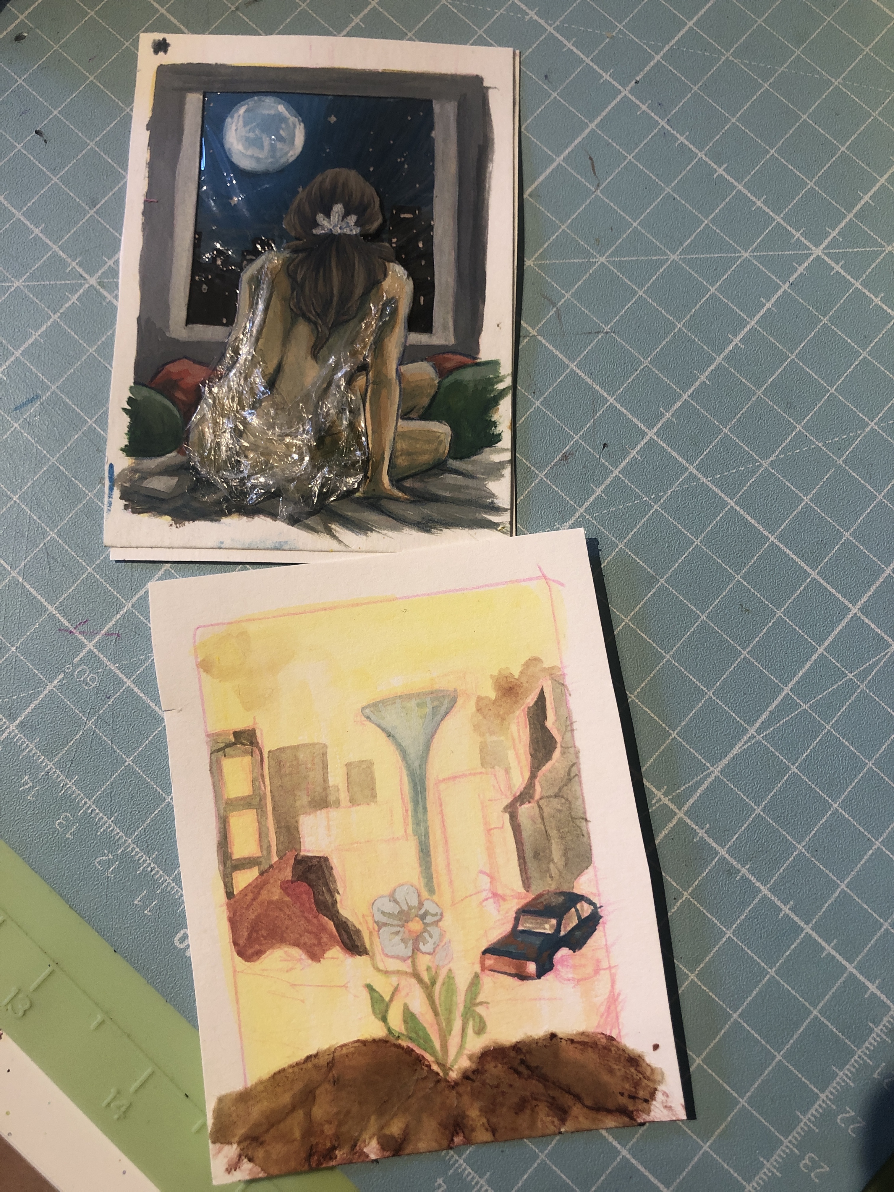 Ist tatsächlich keine Tusche, sondern “nur” Titanweiß stark verdünnt. Yay! Bin so happy, dass ich mich zum Neu-Karten-Malen entschiedem habe