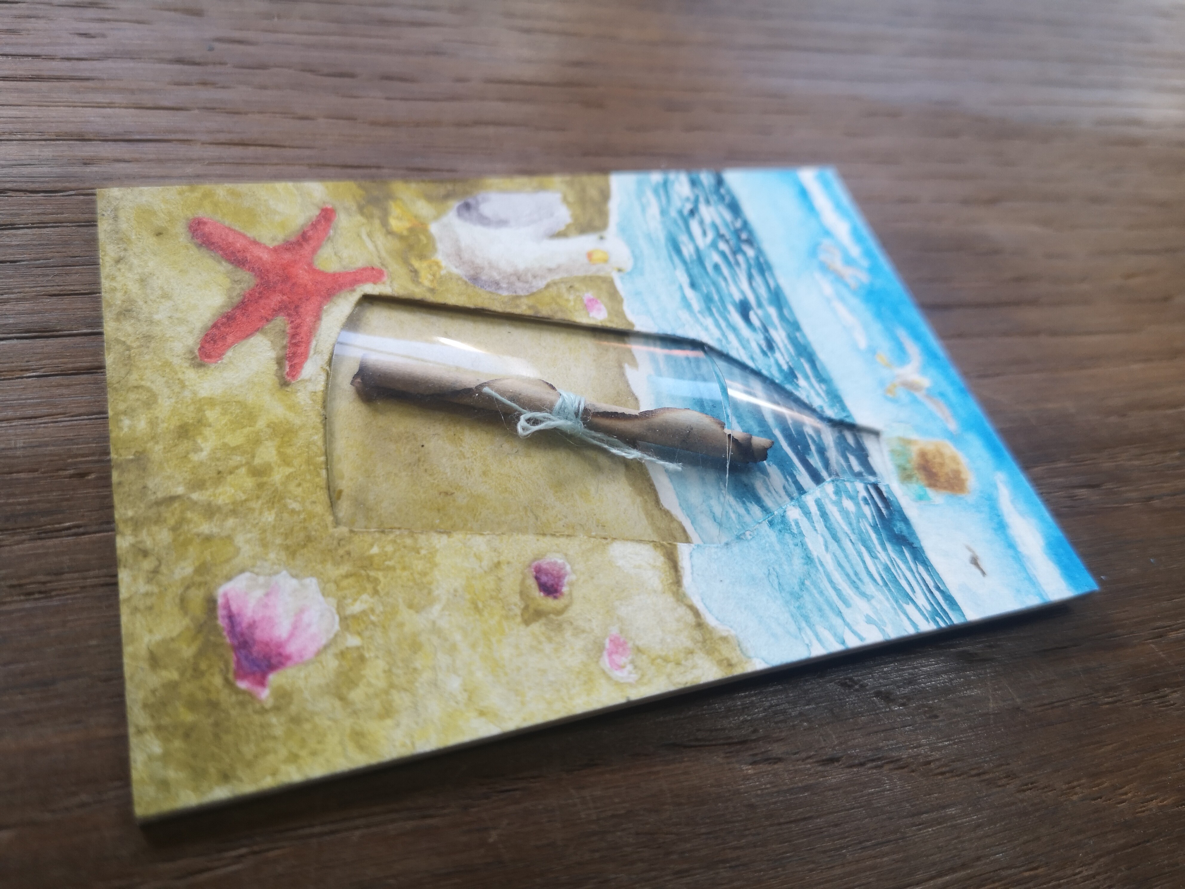 So. Die Flaschenpost ist jetzt endlich komplett fertig. Sogar mit Video, wie die sie geöffnet wird und die Karte rein kommt, wenn es sich dann mal hochladen lässt