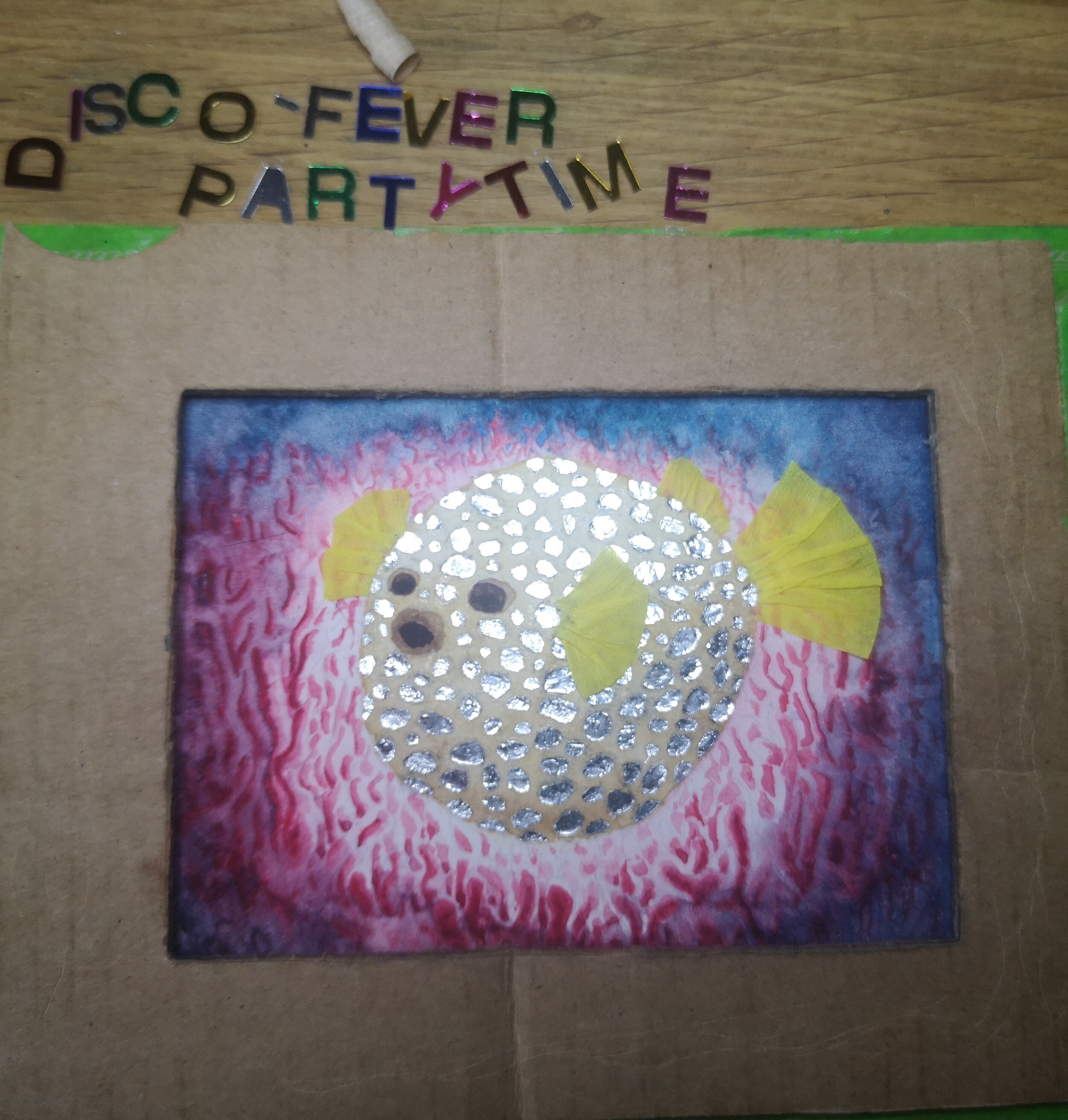 Jetzt eskaliert auf Anstoß von prayer die Discokugel-Kugelfisch-Idee noch etwas, wobei ich erst noch eine praktikabel Versandlösung für den Backpapierafro finden muss, bevor ich das tatsächlich umsetze. (Das pinke Glitzerteil würde dann auch gegen einen Alu-Anzug ausgetauscht werden.