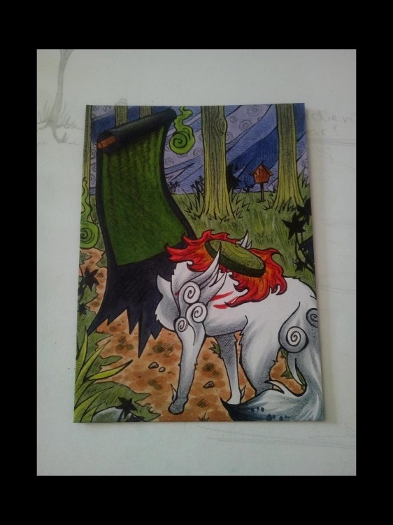 Danke, das freut mich :) Wer wäre ich denn, wenn ich mir die Gelegenhet auf ein Bild mit Bambus entgehen lassen würde…ich zeichne den so gerne xD Und die Karte oben rechts wird hoffentlich noh etwas lebhafter, wenn Ammy’s rote Muster und die Flammen dazukommen.