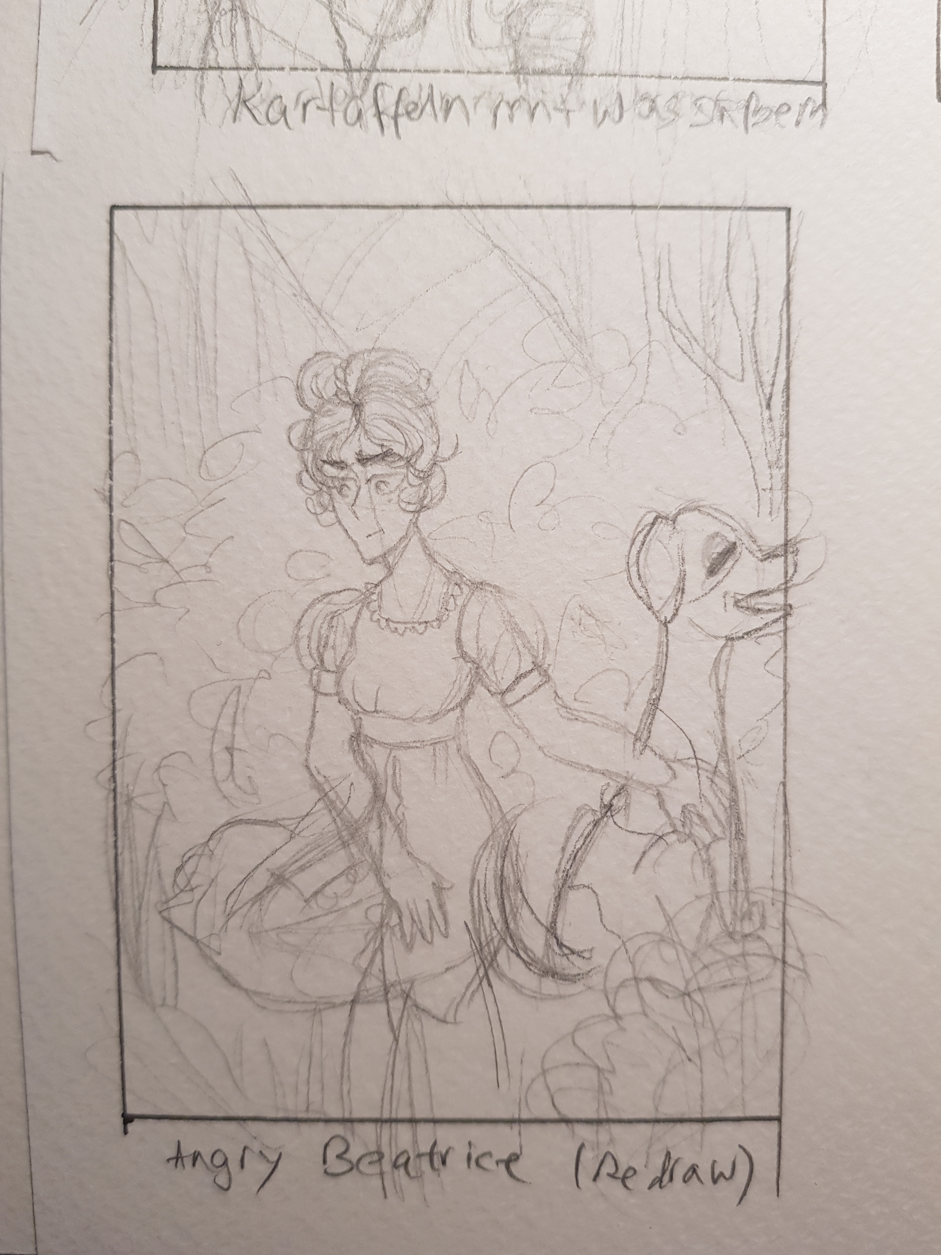 Die Skizze sieht auch schon mal gut aus mit Wirt und Beatrice :)