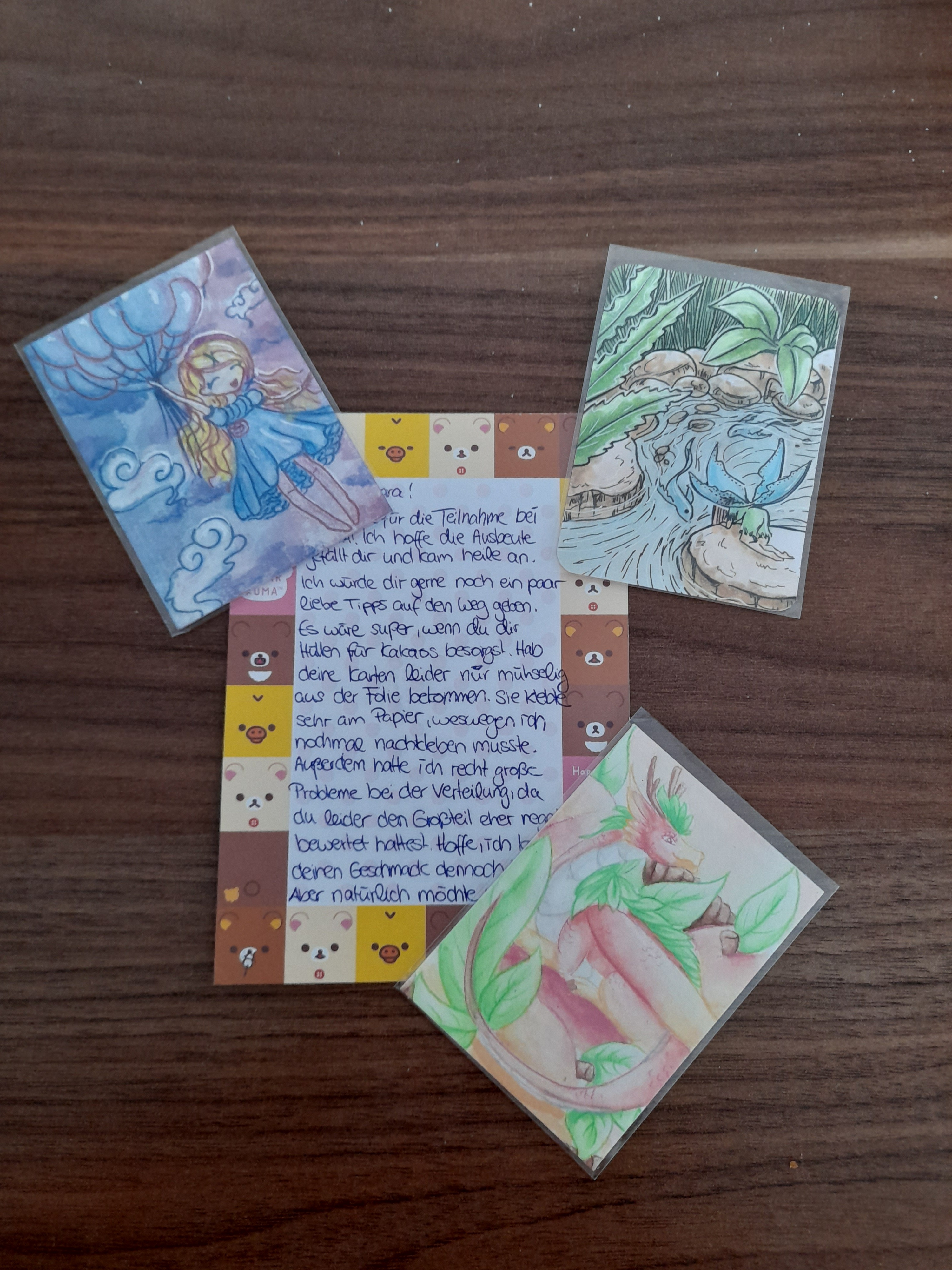 So, jetzt möchte ich mich auch mal für meinen super Rückbrief bedanken. :D Alle Karten sind super schön (was gar nicht so einfach war, weil bei dieser STA viele schöne Karten dabei waren und ich beim Punktebogen manchmal bissl ratlos war "xD) und ich freu mich voll.
