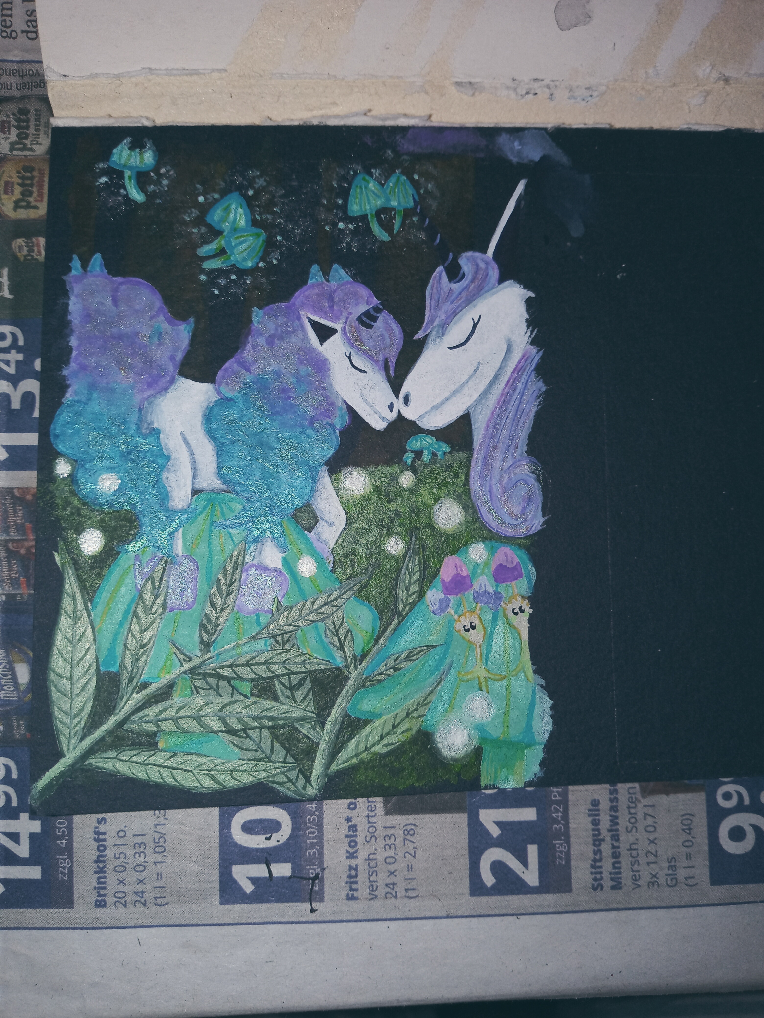 Ich hab auch endlich meine erste Karte fertig und musste einfach auch unbedingt die Zuckerwatte-Ponys zeichnen und ganz viel mit Neon arbeiten