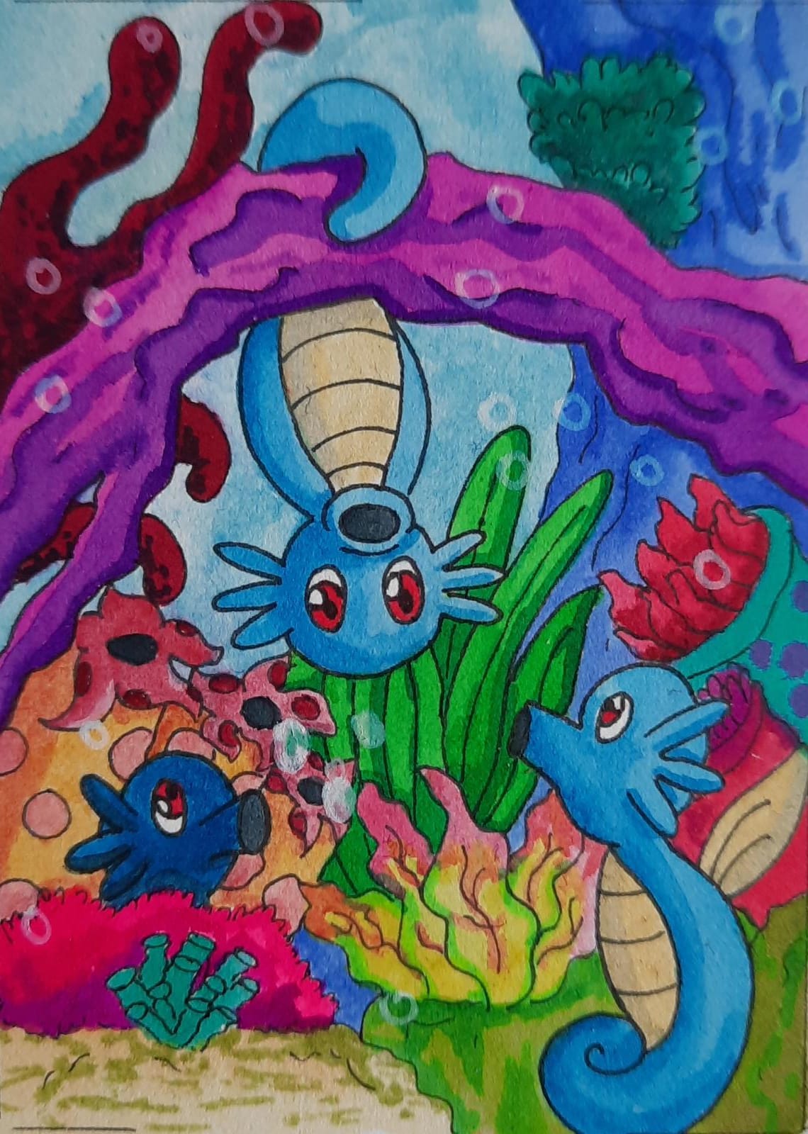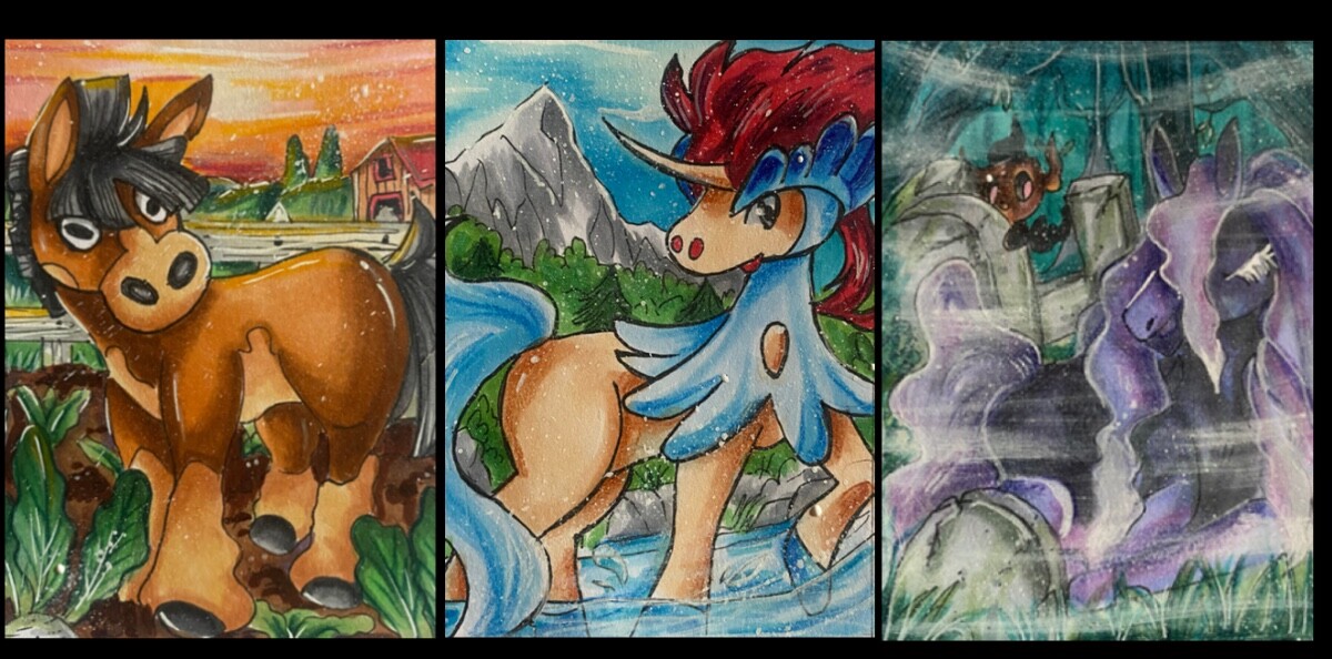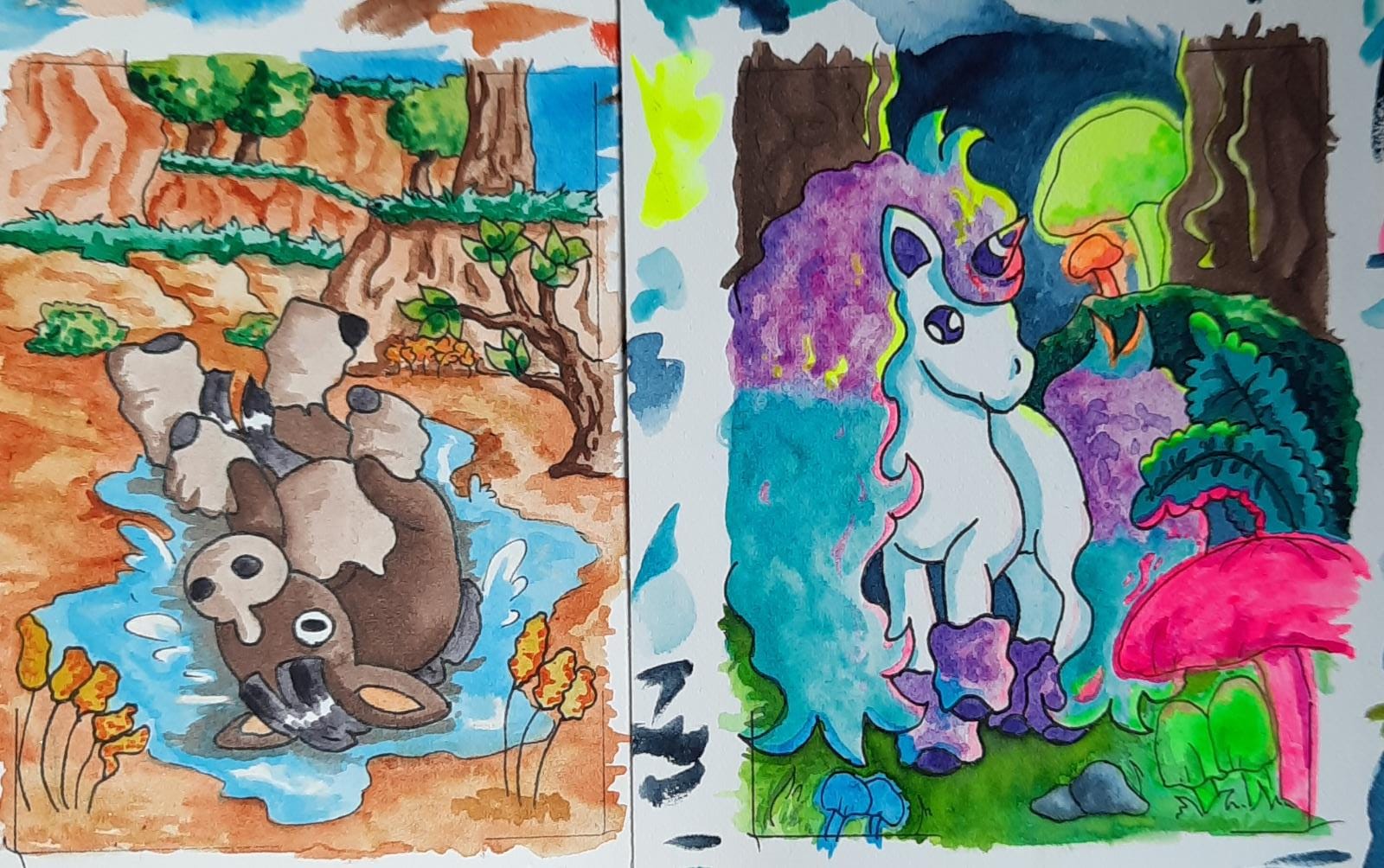 Ich habe tatsächlich auch ein Keldeo gemalt. Daneben haben es bei mir ein MLP Galar Ponita und Starry Night Phantoross auf die Karten geschafft.