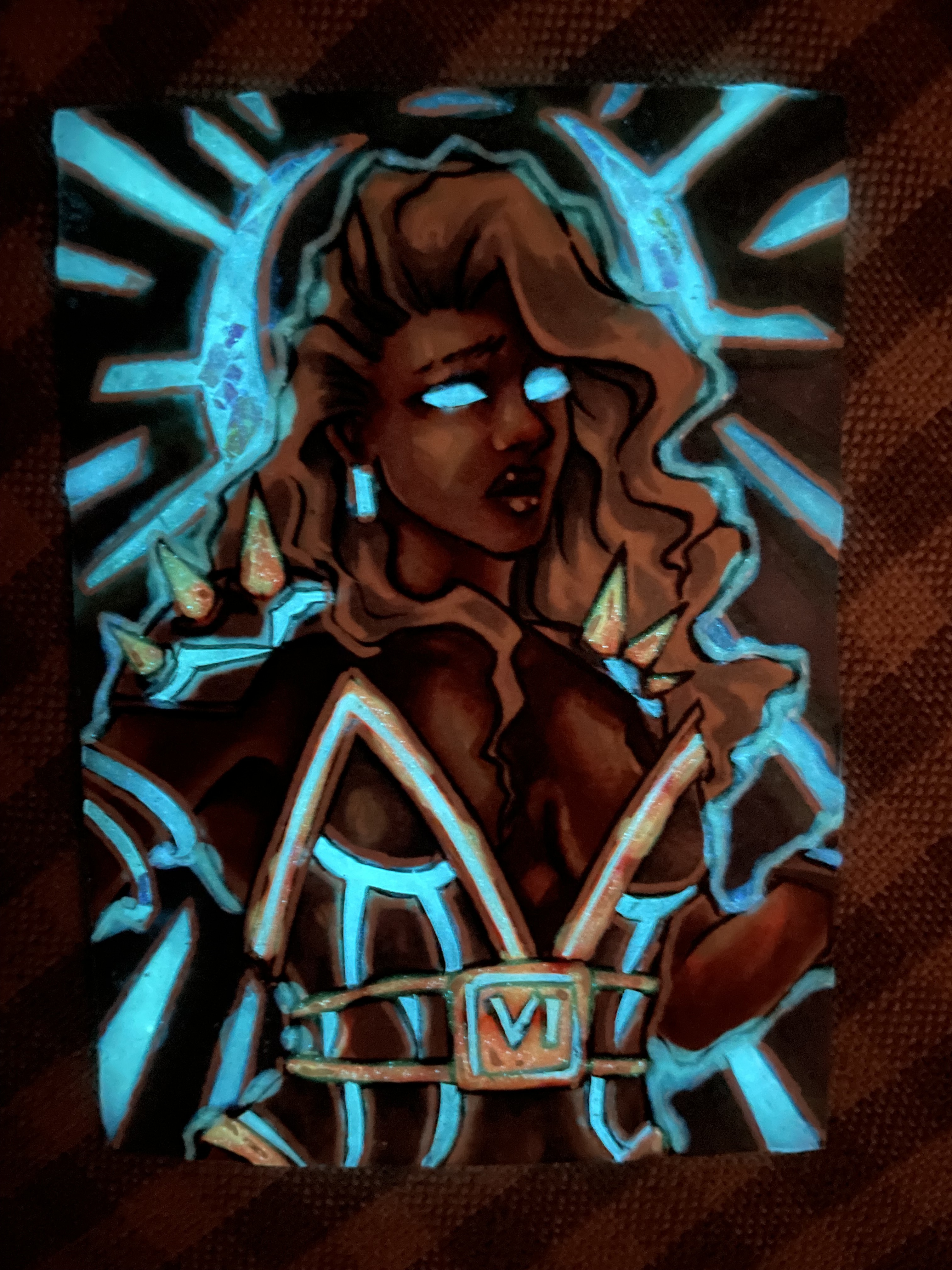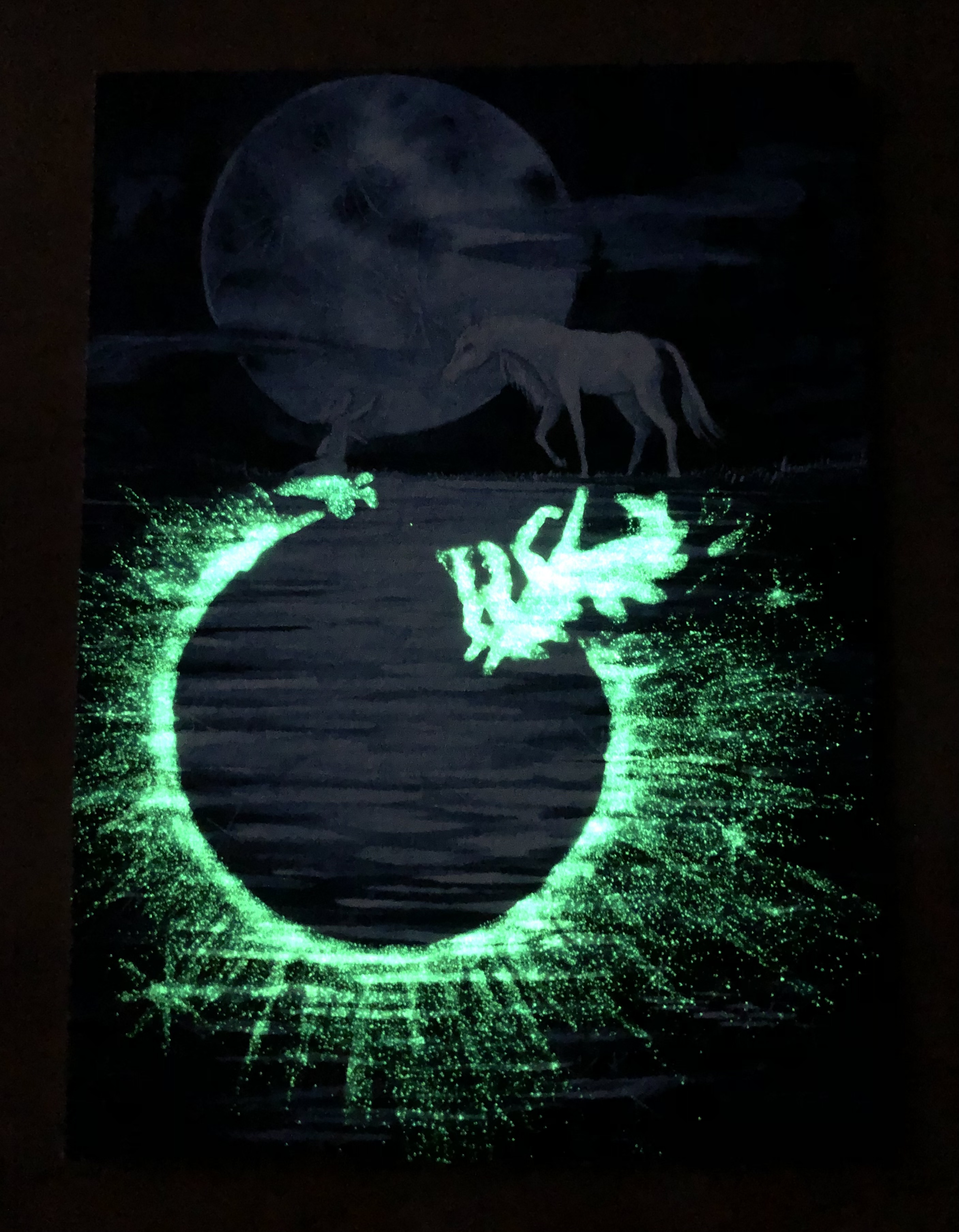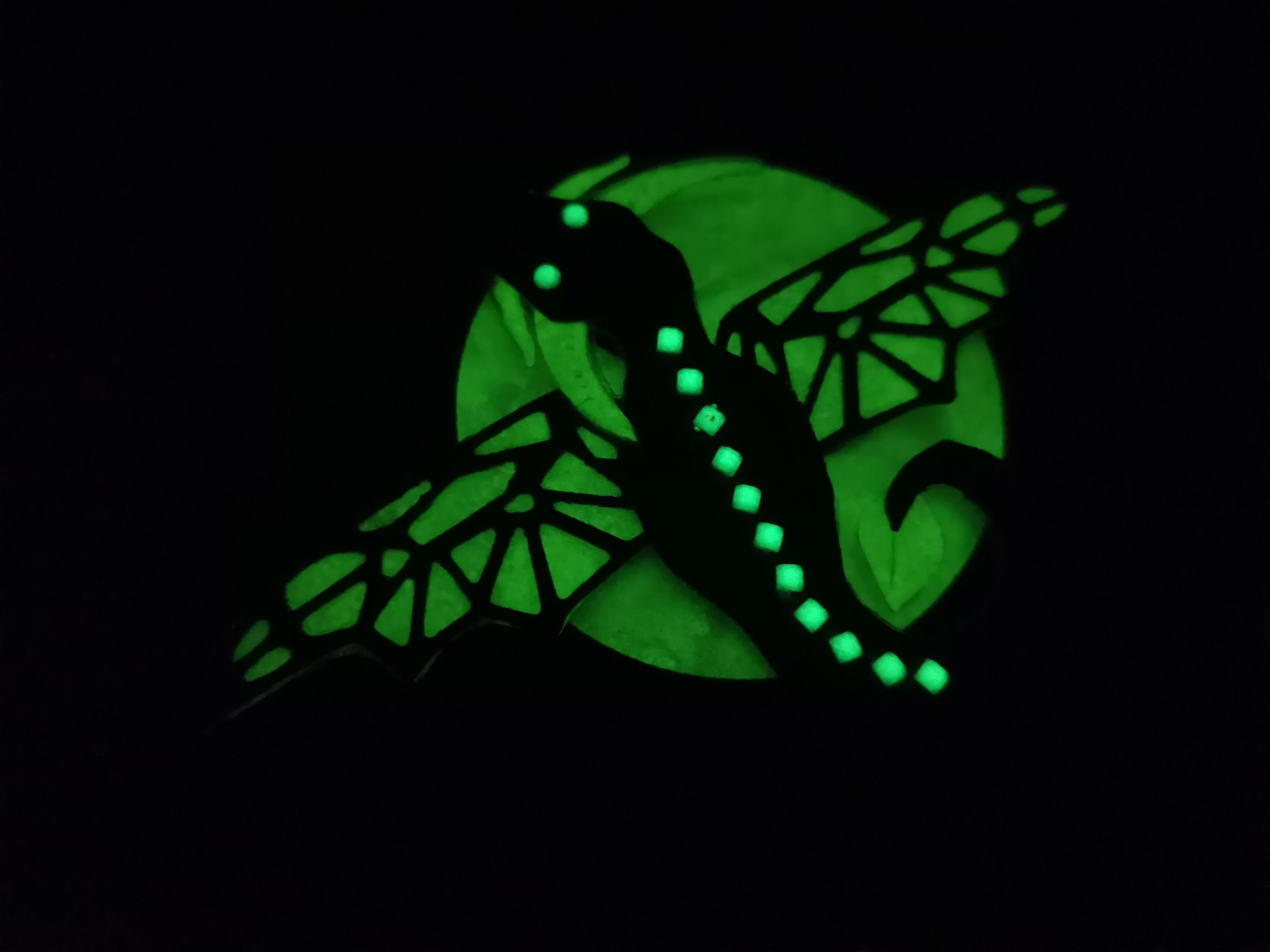 Ich kann dir das nachtleuchtende Embossing pulver von Wow sehr empfehlen. Brauchst nur ein wenig Haftung zwischen Papier und pulver und einen Heißluftföhn