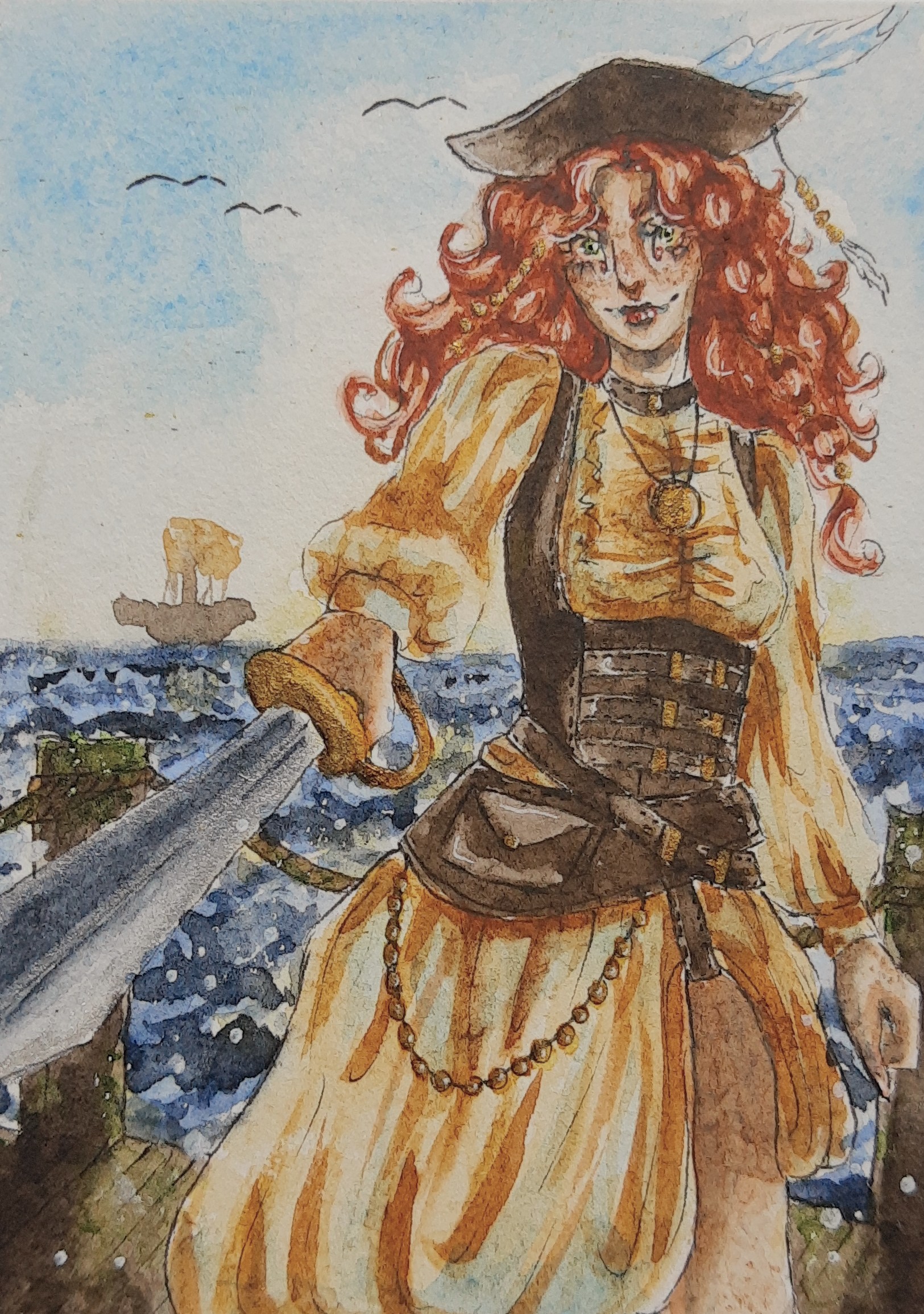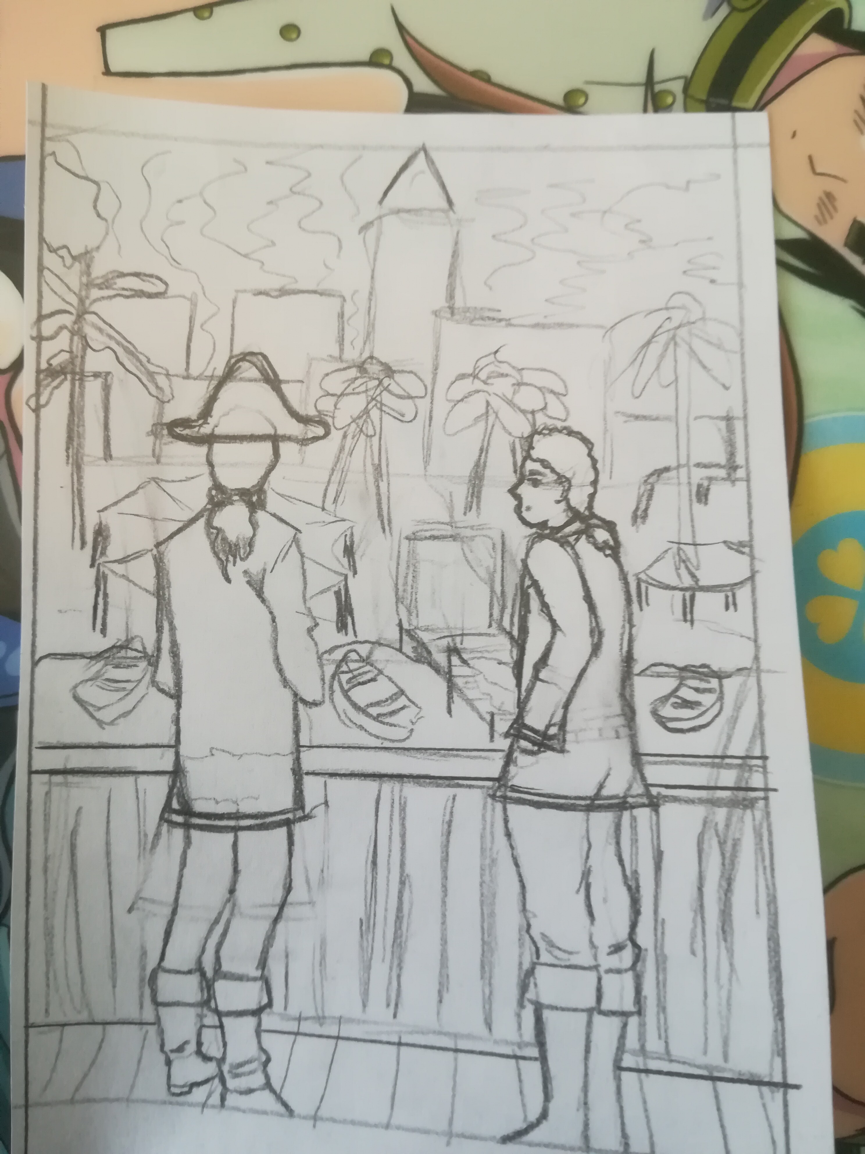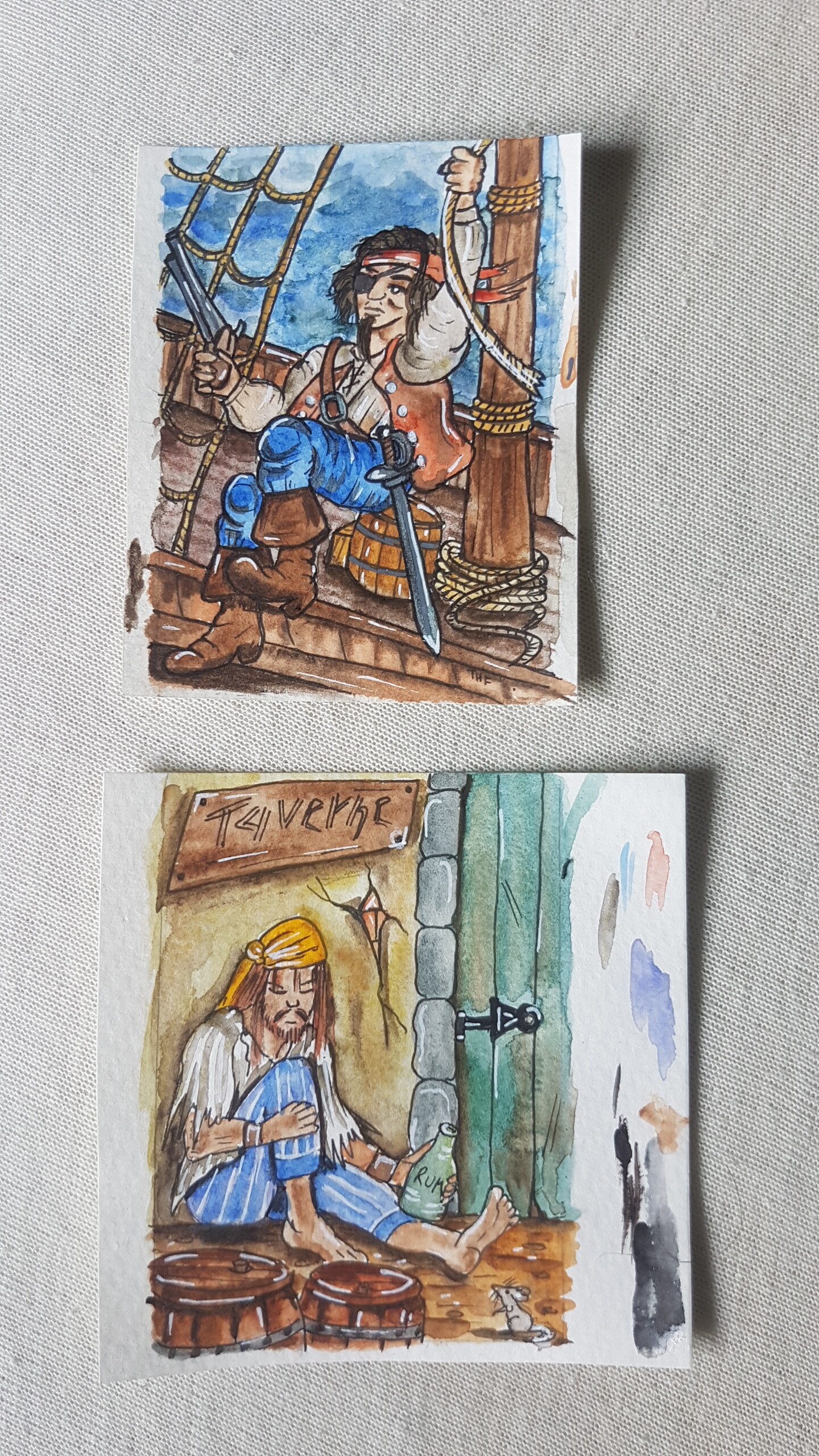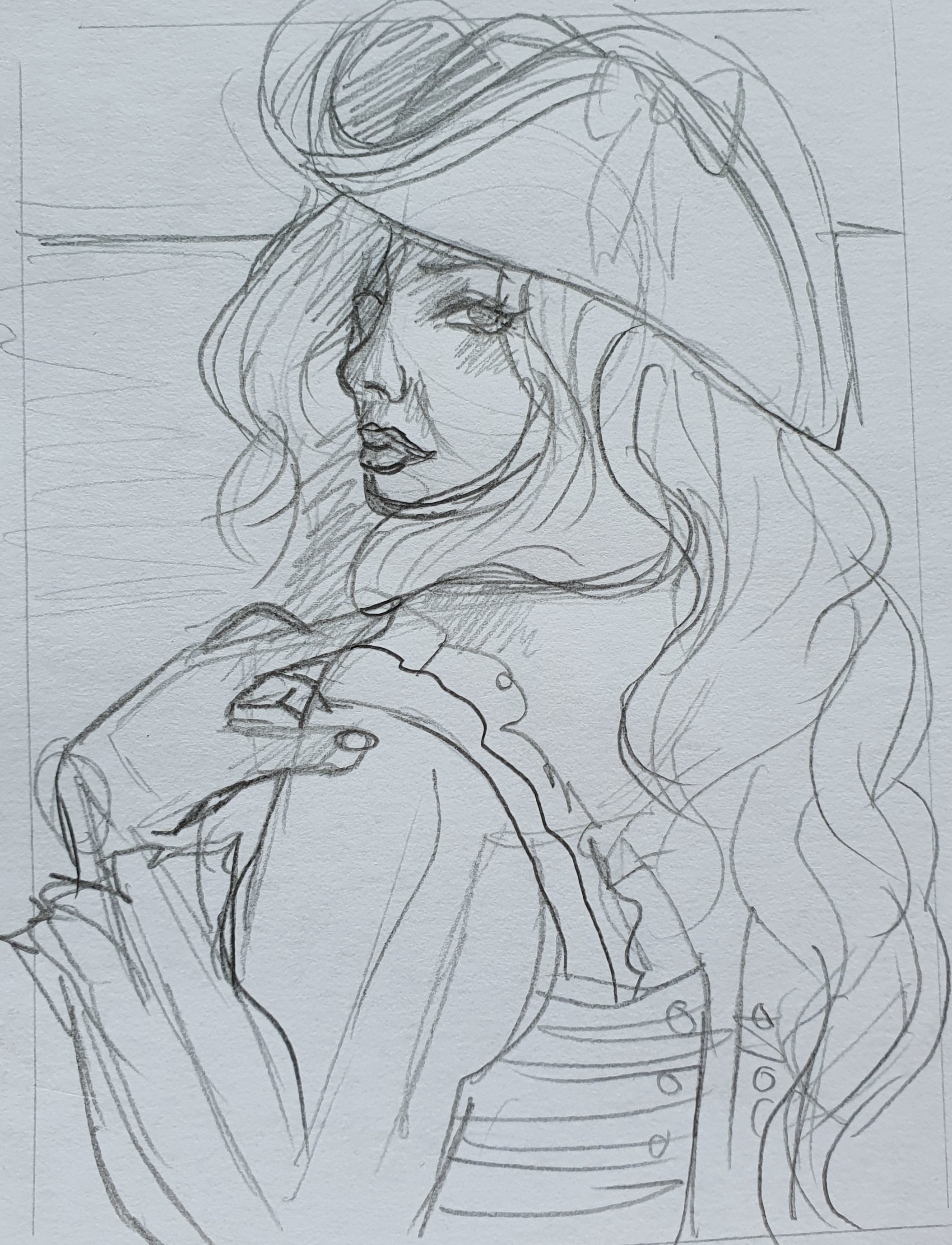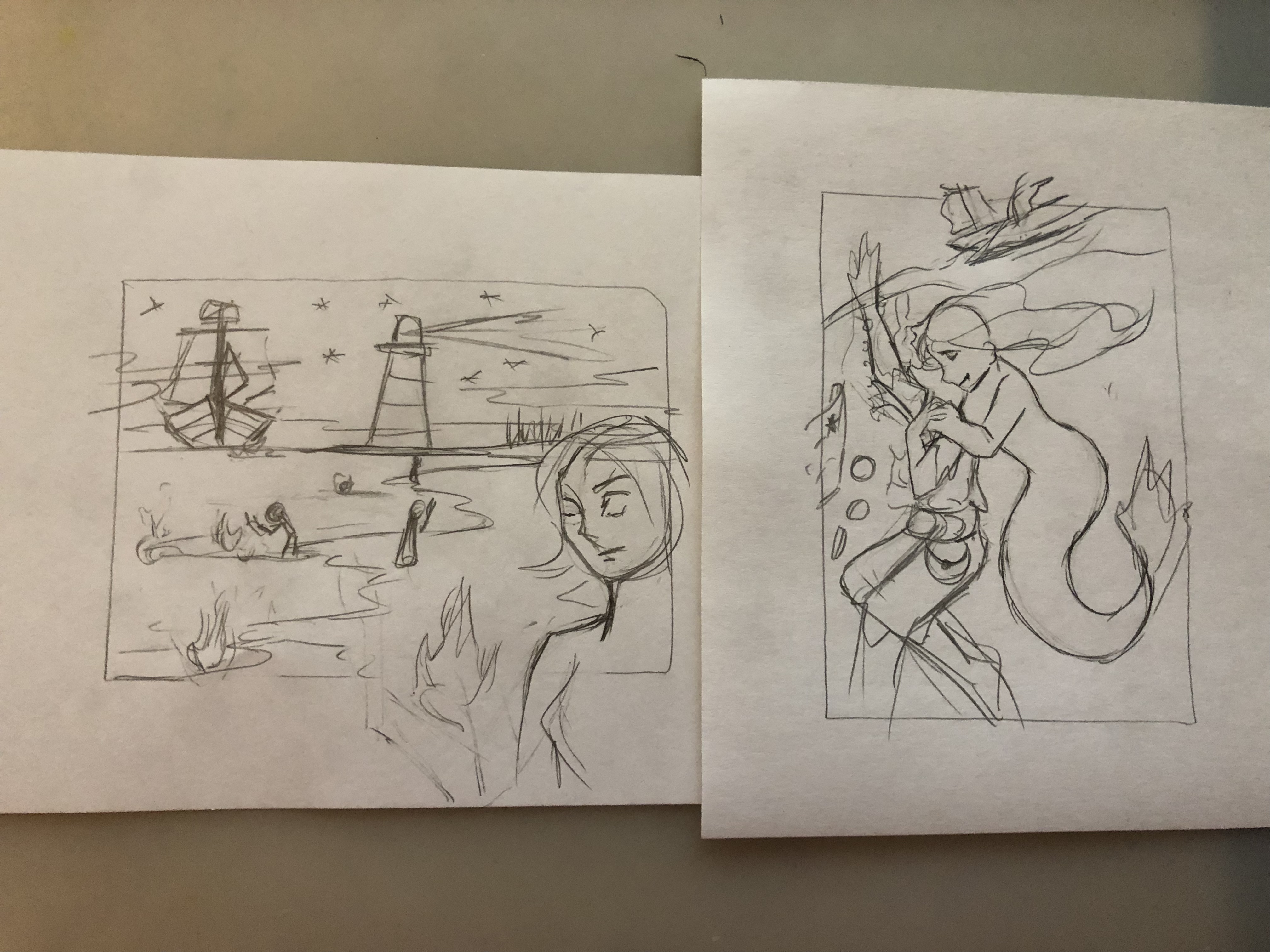 Die zweite Skizze ist natürlich ein Klassiker unter den den Piratengeschichten. Die Sirene die einen Pirat in die Tiefe zieht. Nicht sehr einfallsreich…aber was solls =).