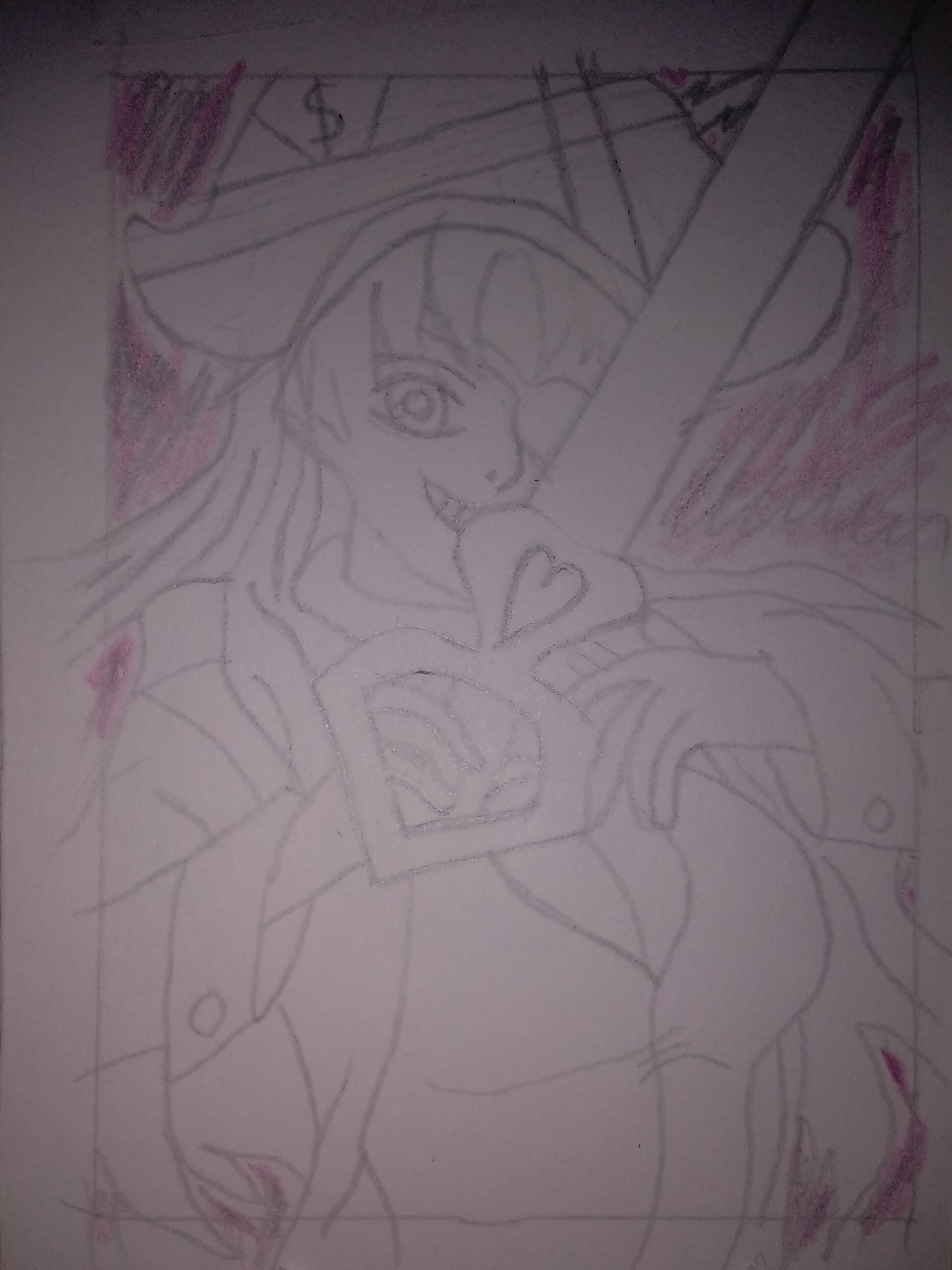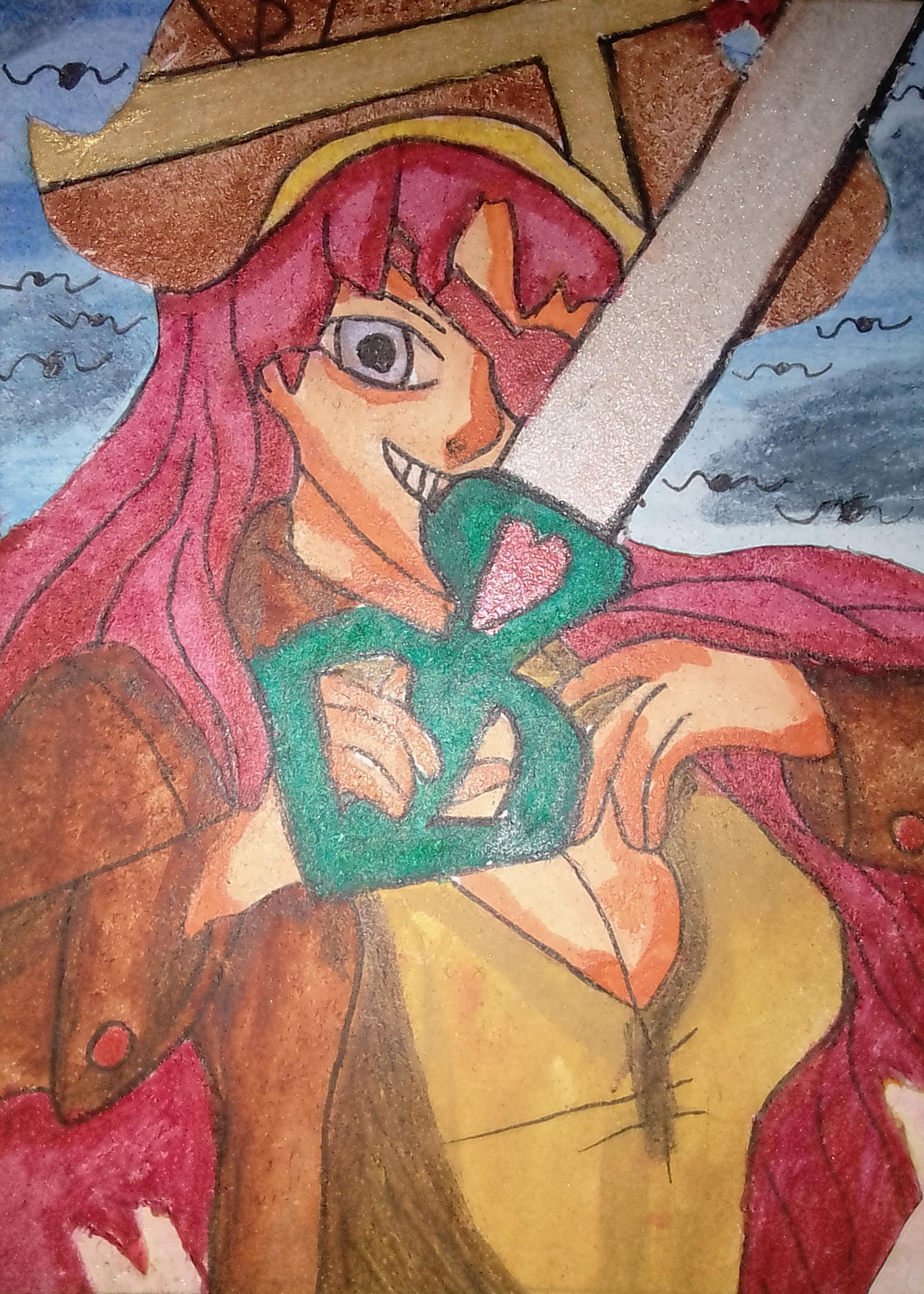 Ich finds toll das du die Karte nochmal überarbeitest und die skizze hier zeigst das mit der Lack versiegelung war ja etwas schade :) die lines vom Schwert sehen jetzt auch viel ordentlicher aus ohne den Knick solche parallelen linien ziehe ich immer gern mit geodreieck ;D du kannst dich bei den Schatten bei der colo später ruhig mehr trauen überleg erst in Ruhe von wo das Licht auf die Figur fällt und dann kannst du die Schatten zb mit buntis o ä. Vertiefen oder mit einer weiteren farbschicht falls du mit aquarell arbeitest :)