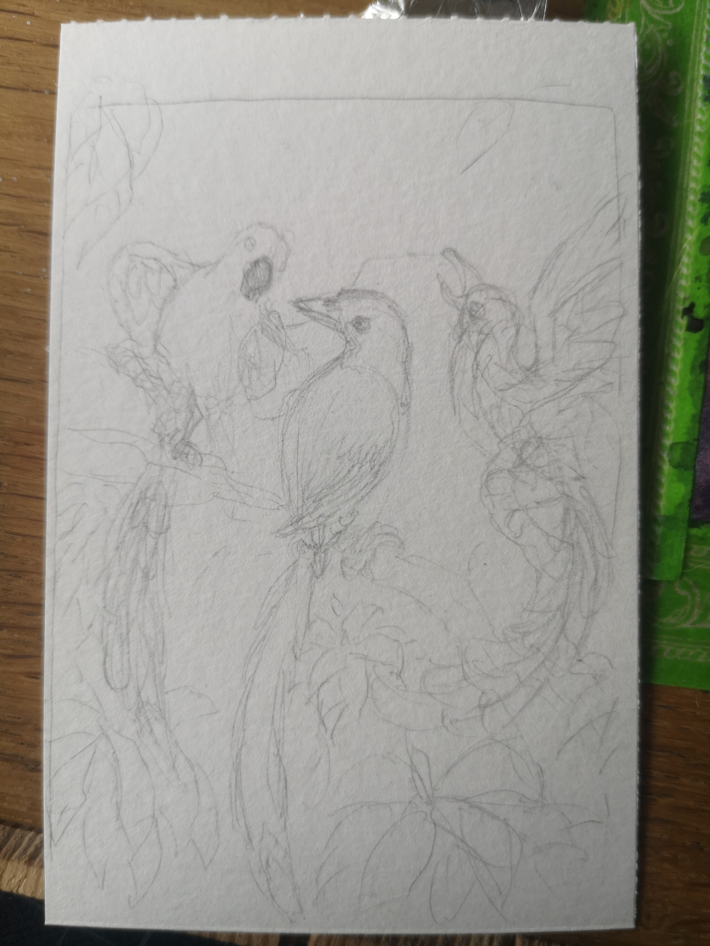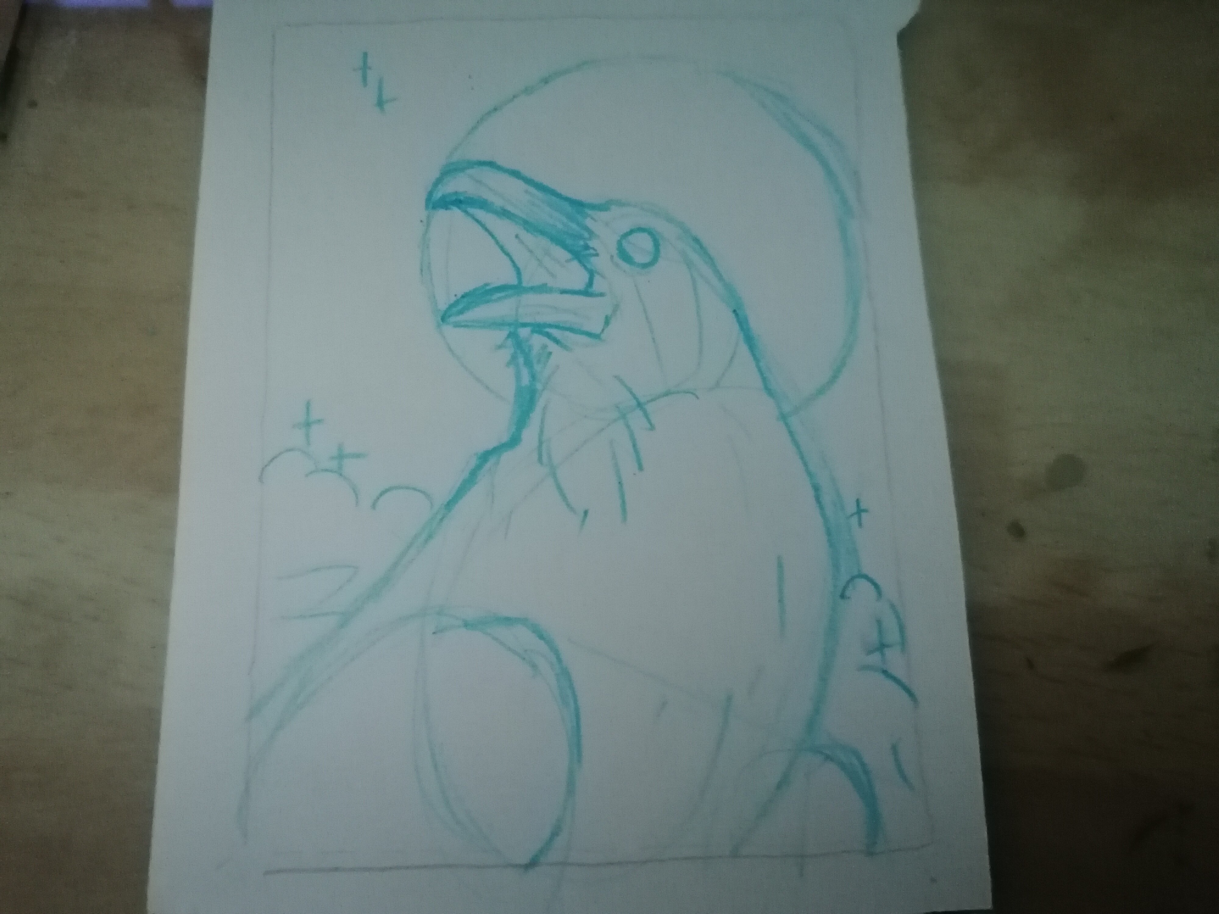 Ich meld mich auchmal mit einer ersten Skizze. Ist zu den Dickschnabelkittas. Der HG muss noch gefüllt werden, aber so als Start und als Zeichen, dass ich es nicht vergessen habe