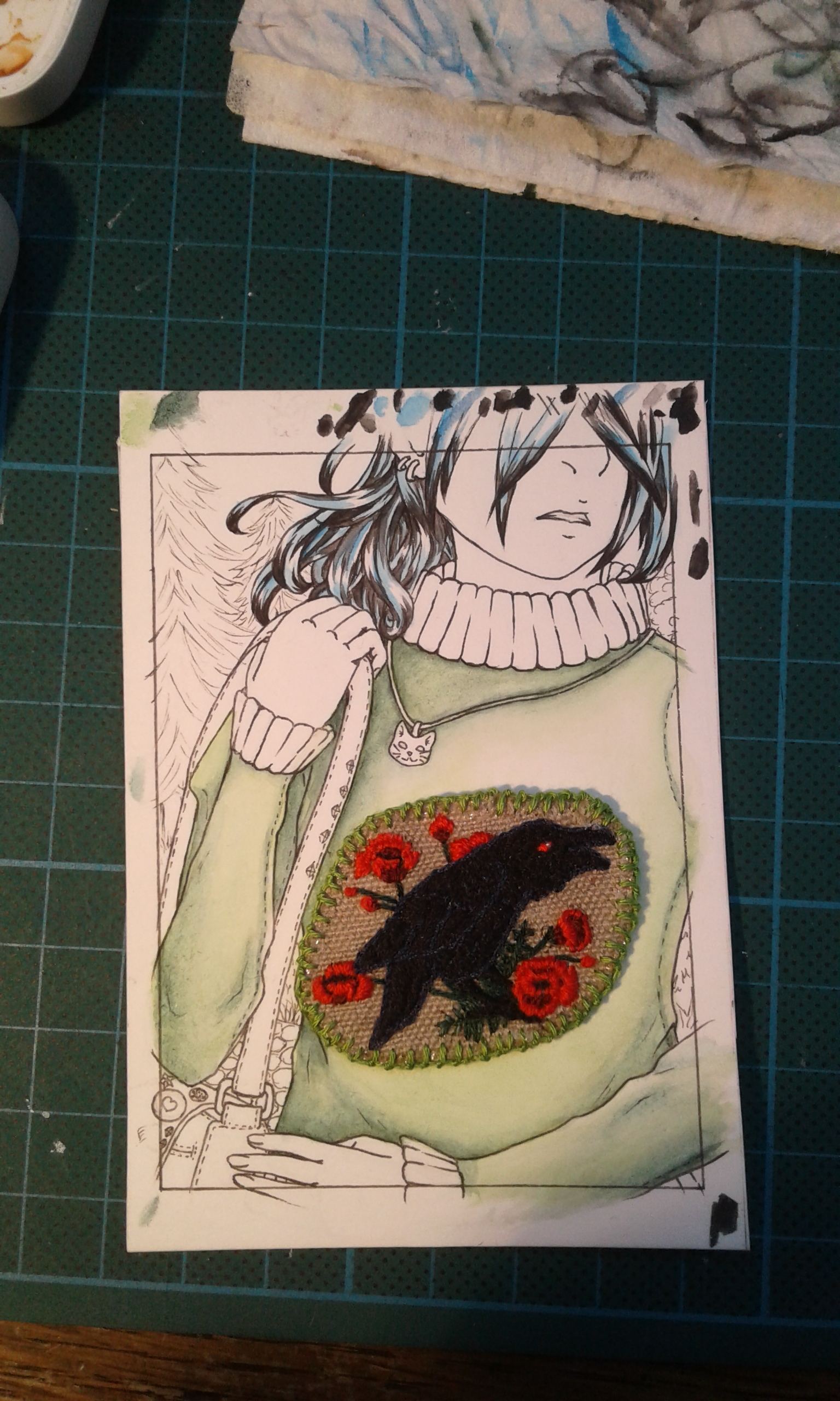 Ich bräuchte noch mal eure Einschätzung da ich mir selbst gerade nicht ganz sicher bin… ich habe ja die Karte nach der Stickerei gezeichnet und bin auch unheimlich zufrieden damit, wie sie geworden ist.