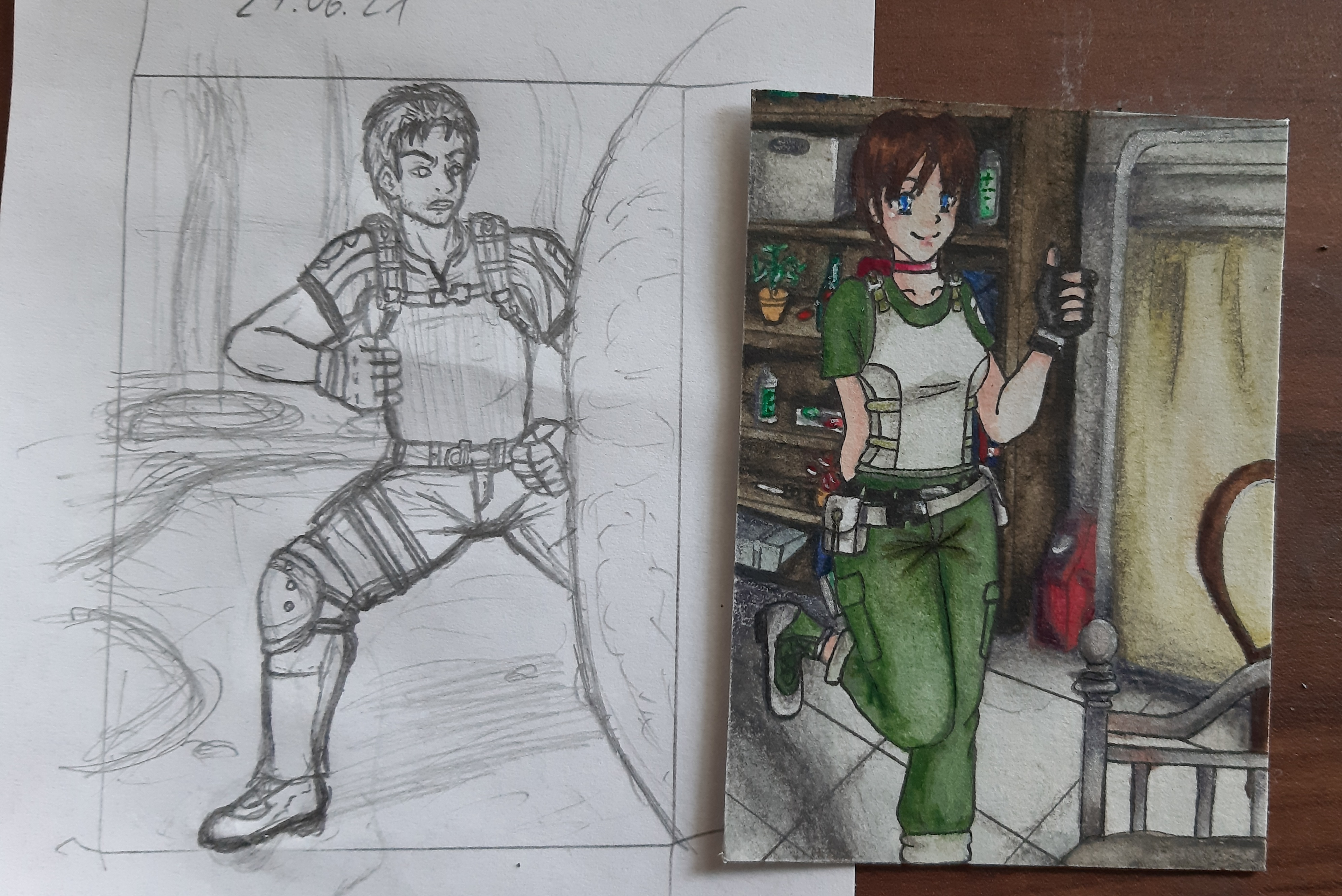 Ich habe jetzt auch schon eine Skizze fertig. Da xXSaphiraXx und ich gerade RE 0 spielen habe ich mich für Rebecca entschieden