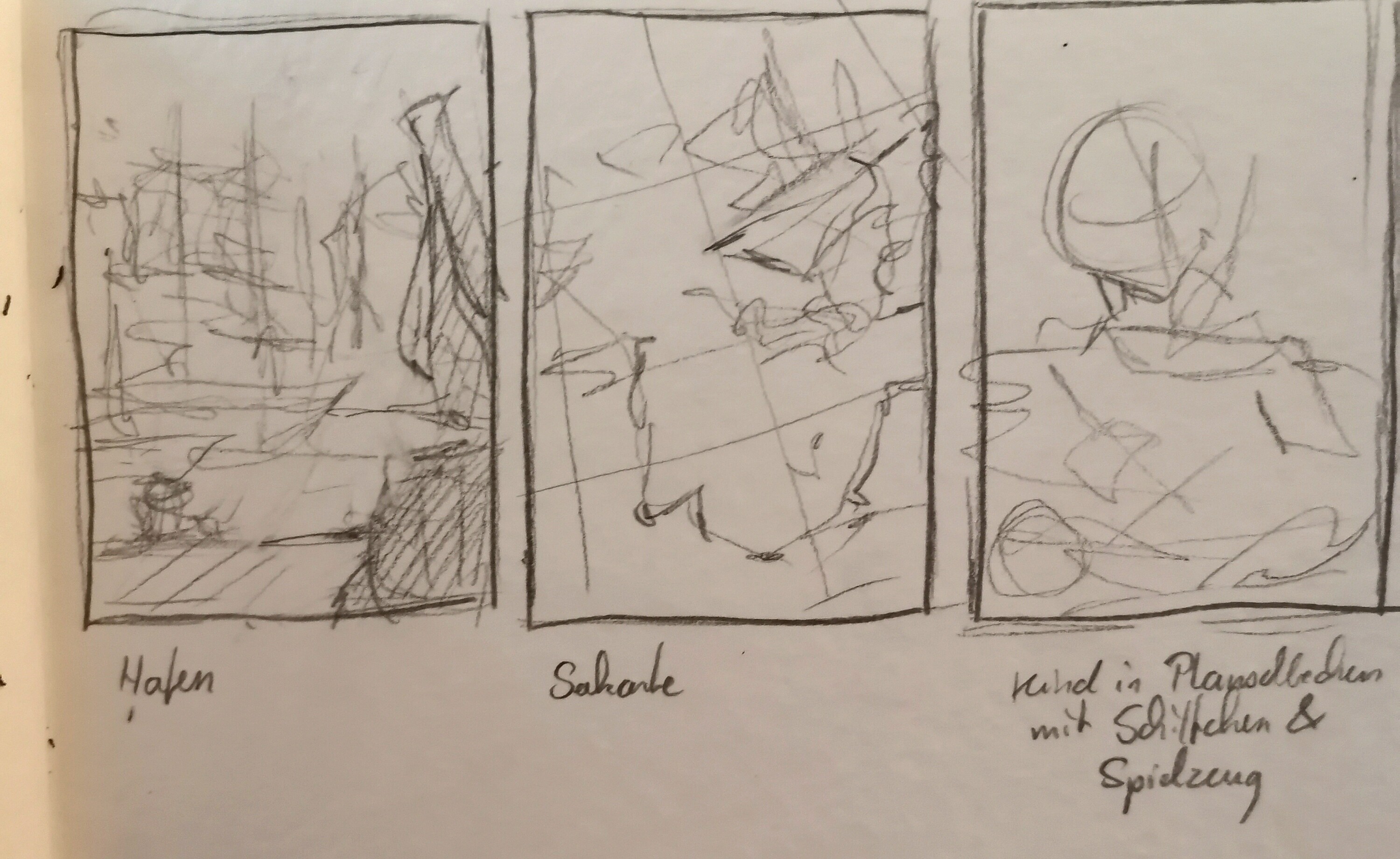 Die Skizzen sehen sehr spannend aus, ich bin gespannt, was du draus machst. Natürlich kannst du auch eine Seekarte einreichen. Ich persönlich finde gerade die Idee mit dem Kind im Planschbecken toll. Ich würde mich freuen, wenn du teilnehmen würdest (in dem Fall würde ich deine Wunschlisten Geschenke auch in den Rückumschlag packen.) ;)