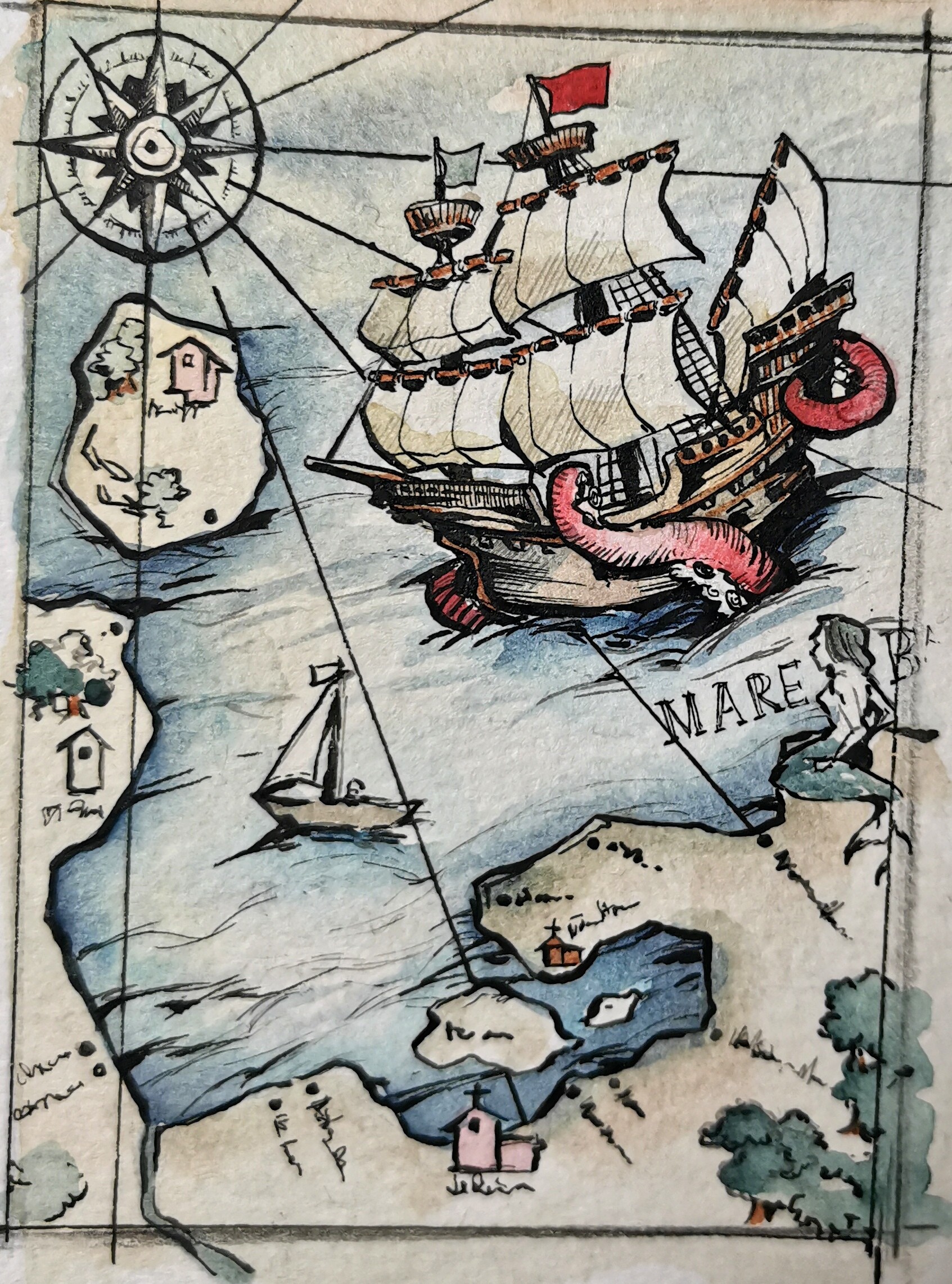 Hab mich an dem Stil alter portolankarten orientiert und entsprechend coloriert.