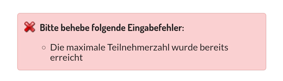 Ich hab die Anmeldung für dich nochmal geöffnet. Bitte melde dich als Nachrücker an