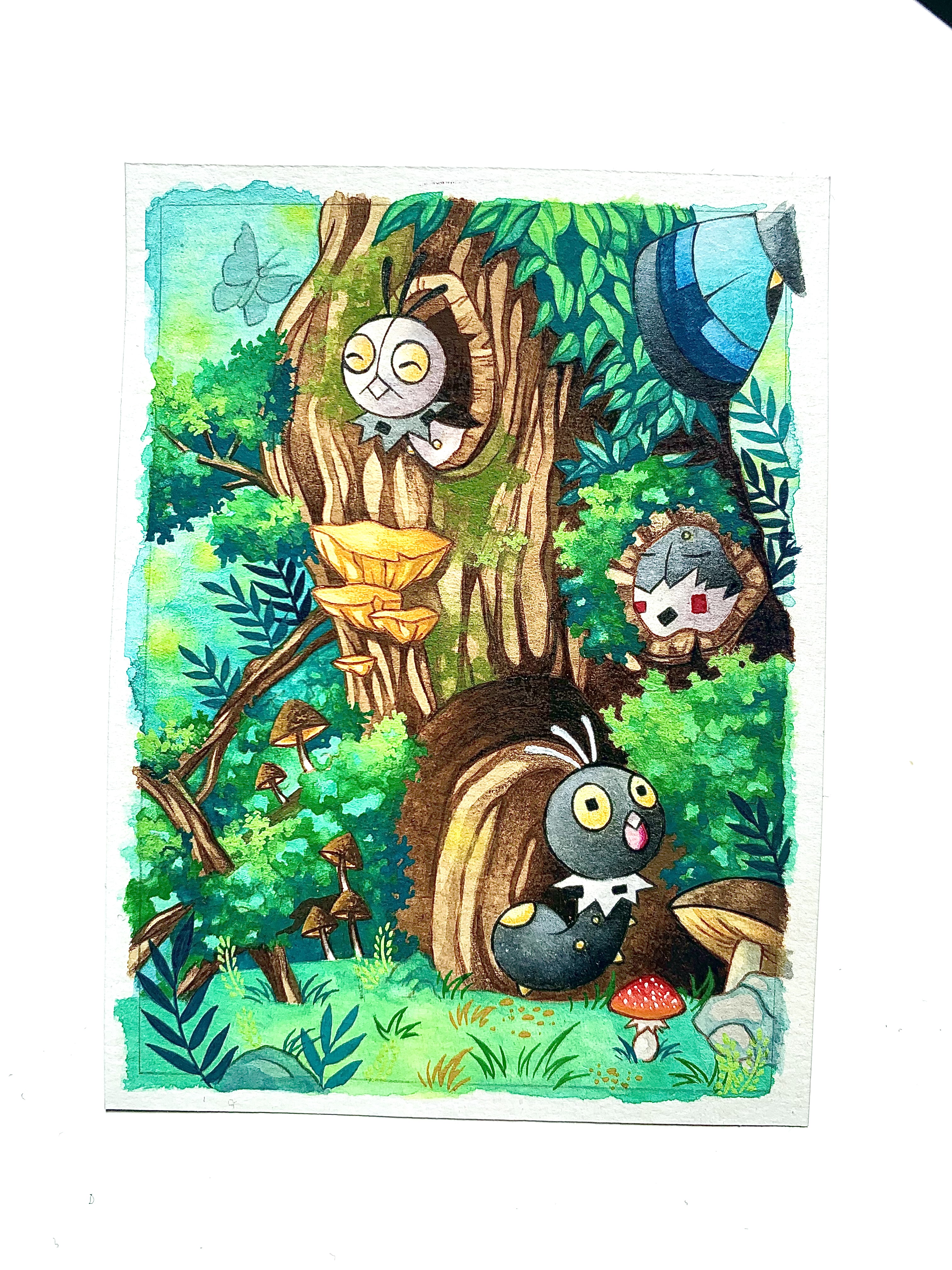Kratzkarte mit Mottineva, Alola-Vulnona, Snomnom, Arktip und Amagarga