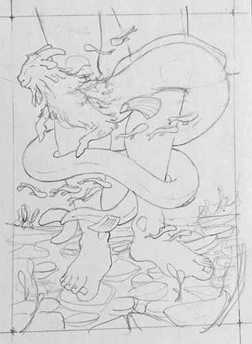 Zur Erklärung: Der Ziegenfisch kommt aus der babylonischen Mythologie und ist ein Begleiter des Fluss- und Weisheitsgottes Enki, zu dessen Füßen er sich oft aufhält. (Jaaa, ich hab wieder auf Wikipedia gestöbert xD).