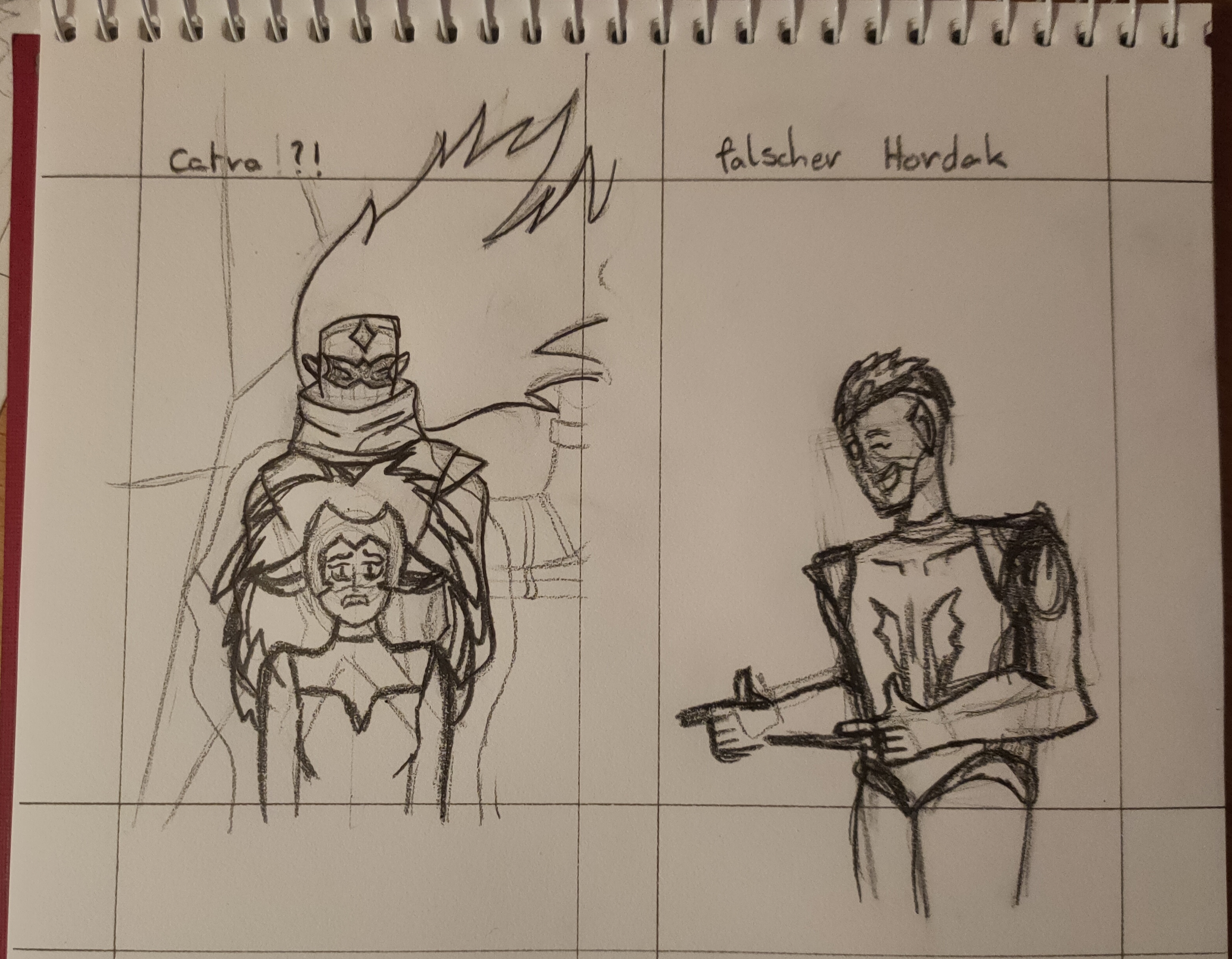 ja, dass er bisschen tief sitzt ist mit mittlerweile auch aufgefallen. "^^ ich werde ihn weiter nach oben rücken. als Hintergrund dachte ich mir, vielleicht Dryl, weil dort Entrapta wohnt? Mit den Köchen dort? Vielleicht lasse ich ihn auch kochen, ich mache heute noch ein paar weitere Skizzen.