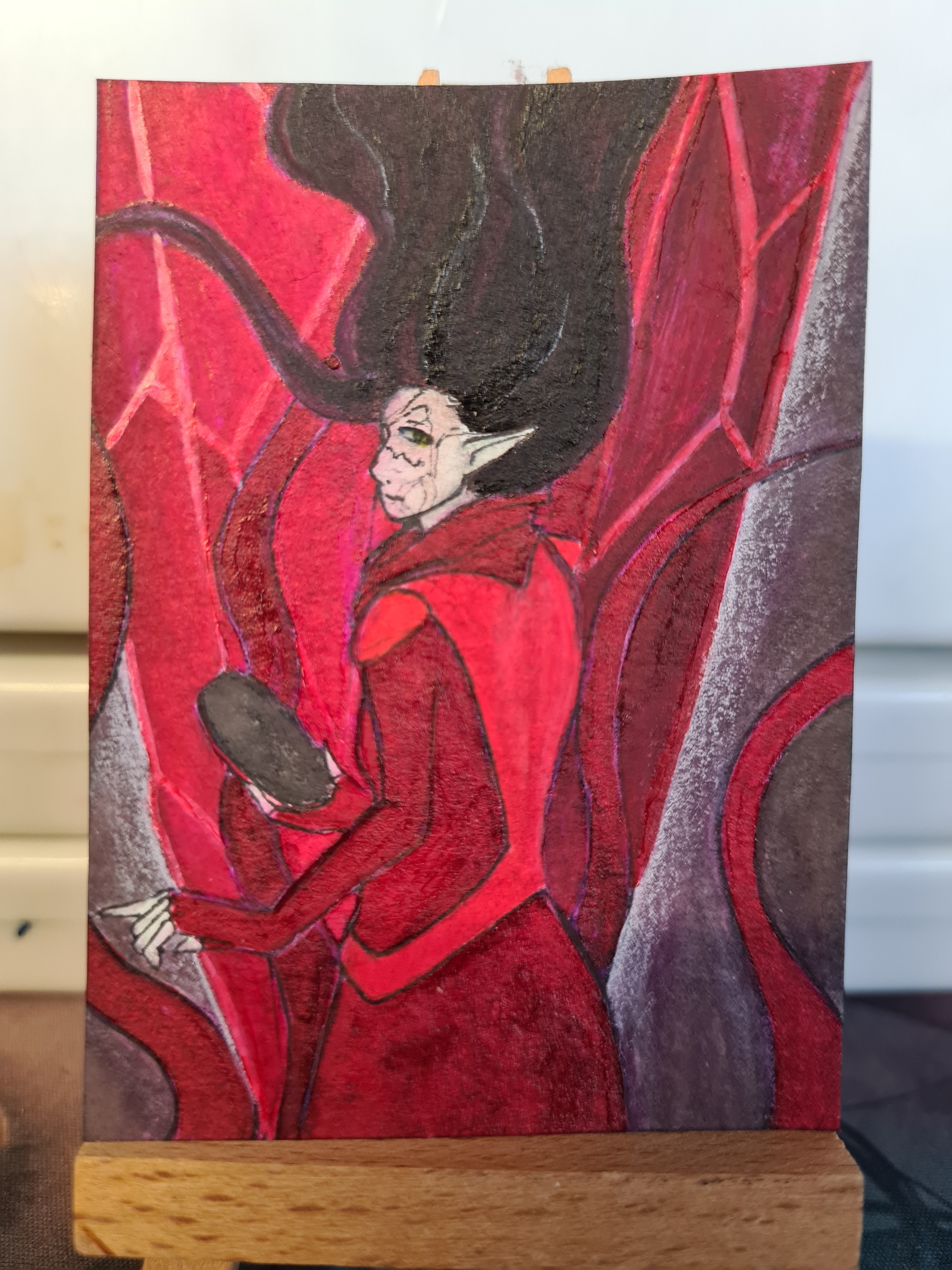 Die Catra/Shadow Weaver Karte ist toll geworden. Beim falschen Hordak frag ich mich, warum der so tief auf der Karte sitzt. Was hast du für den Hintergrund geplant?