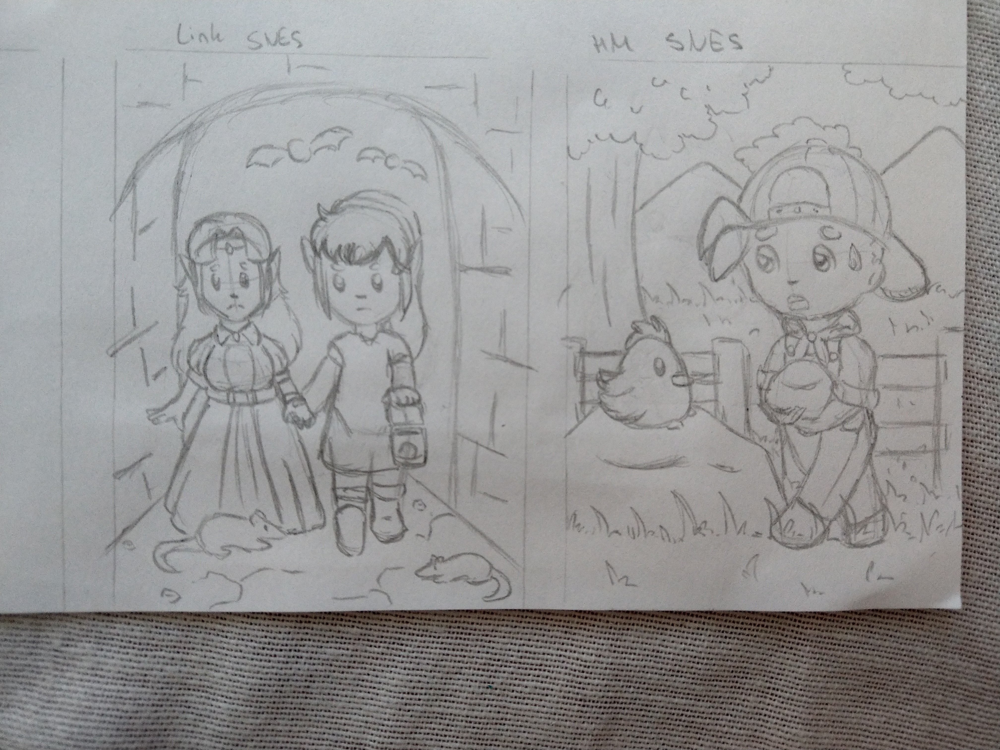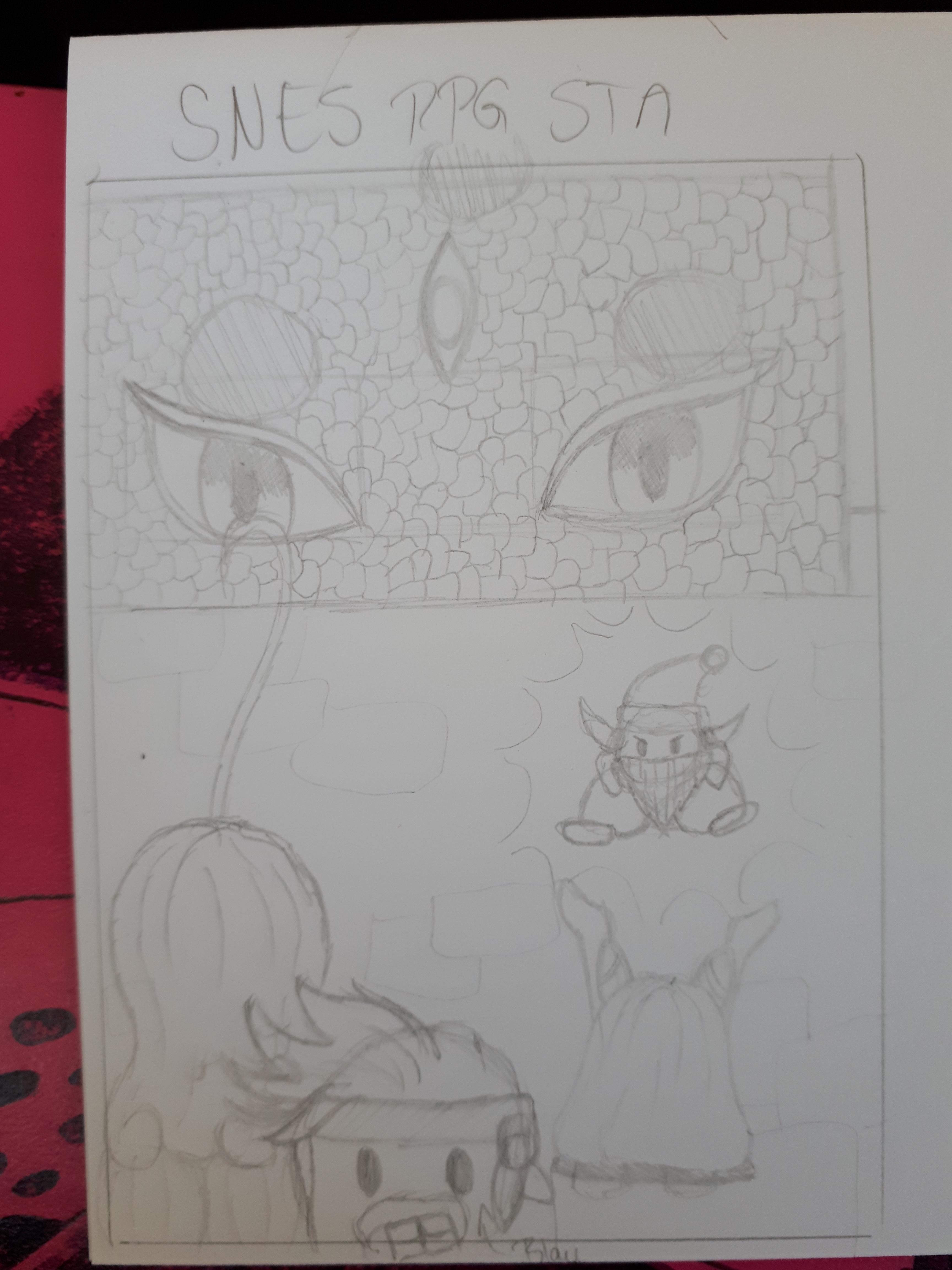Hier übrigens meine zweite Skizze zu Secret of Mana. Da ich hier nicht die Möglichkeit habe ein Video zu schauen ist die Szene viel aus dem Kopf entstanden, ich hoffe das ist so in Ordnung :)