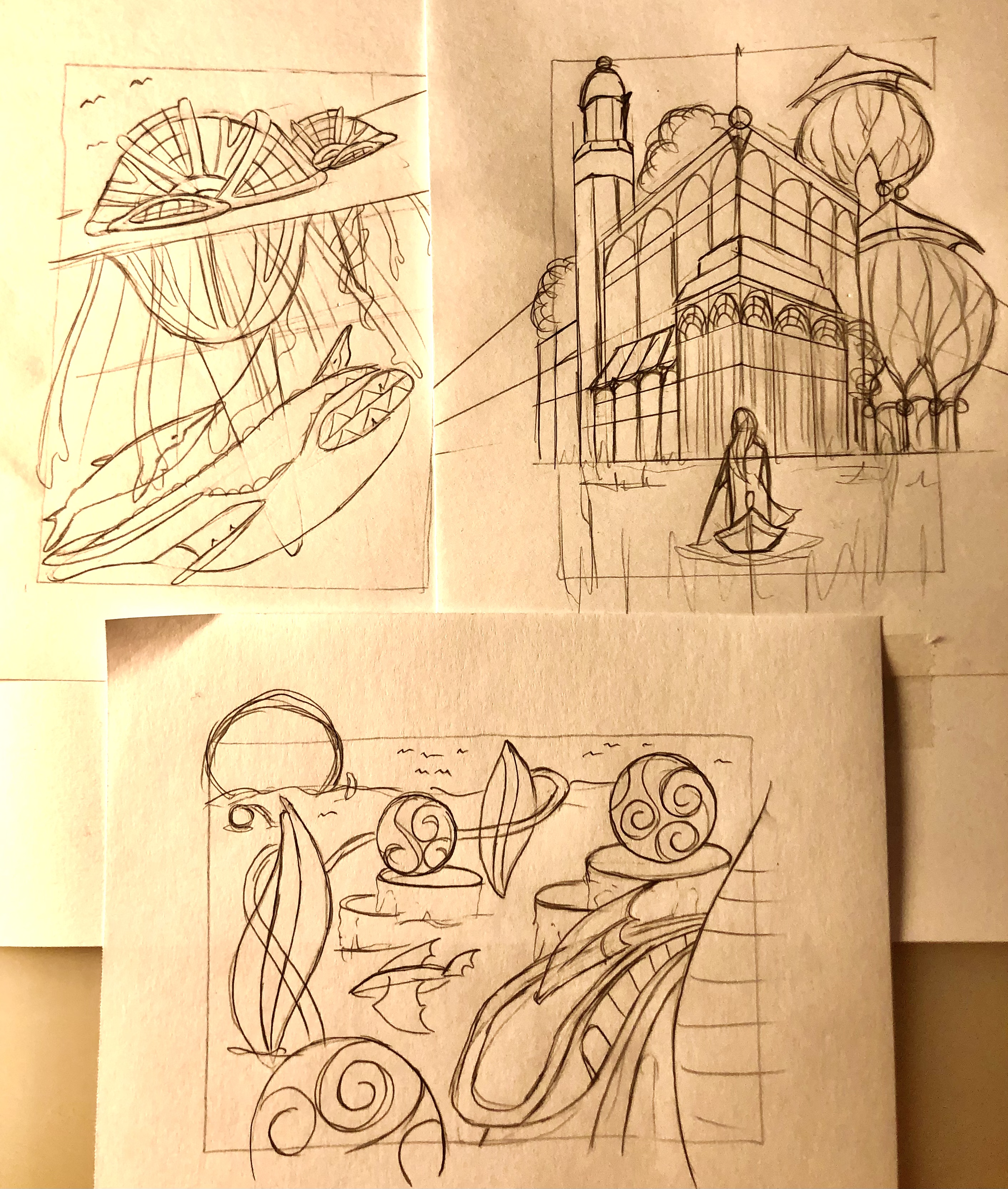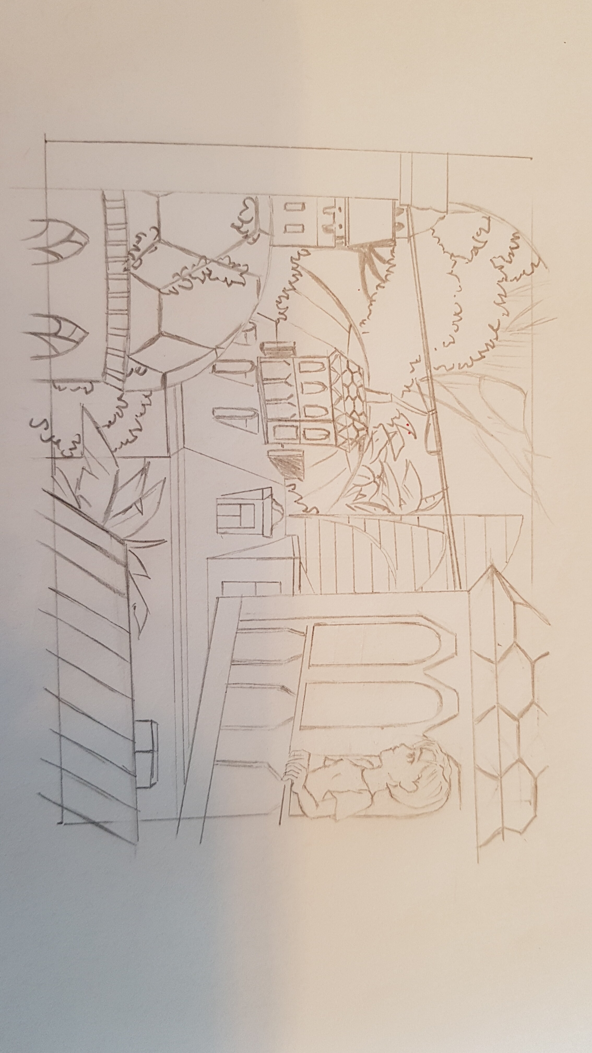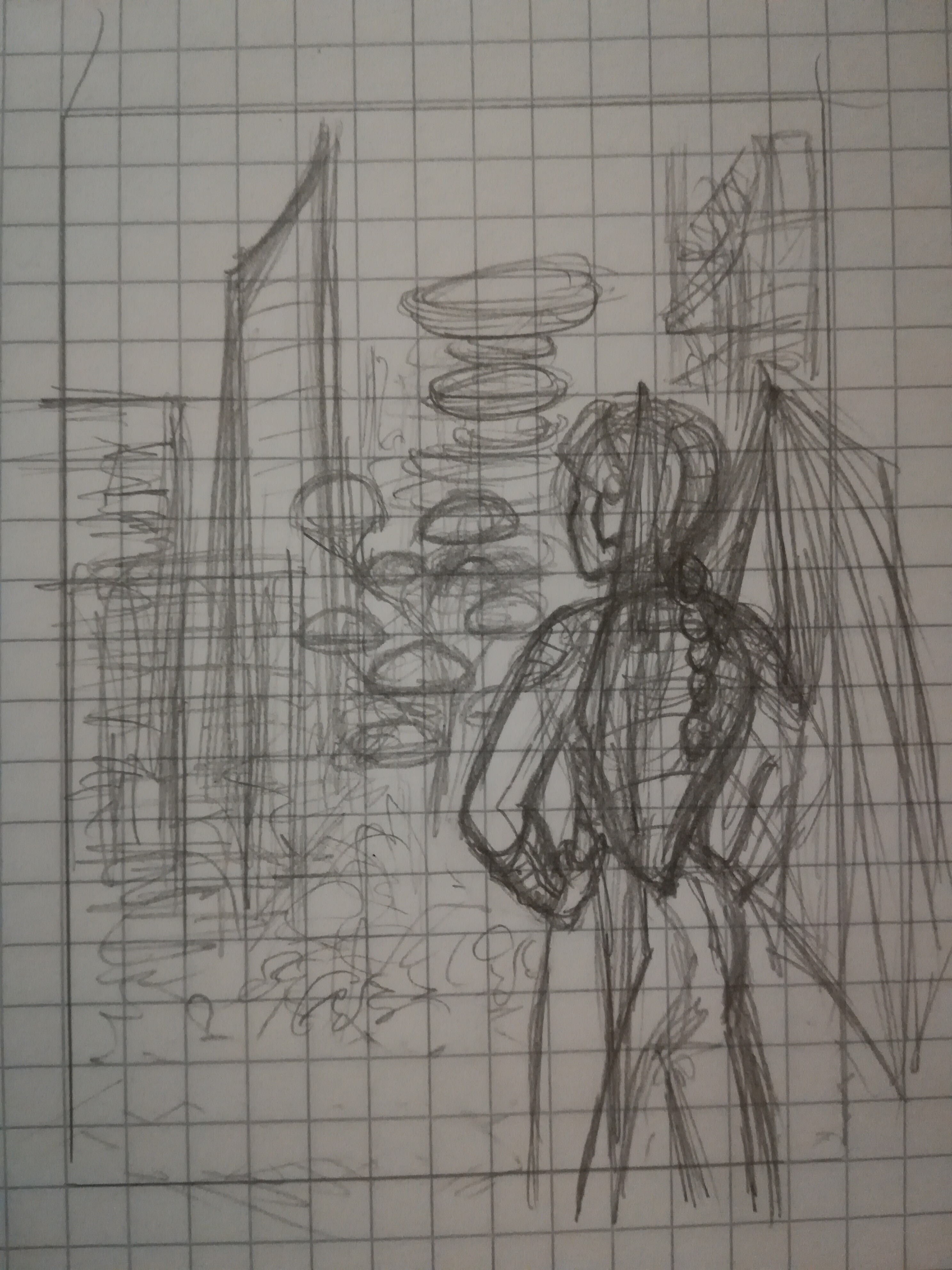 Zwischendrin fliegen große Vögel rum… Da wäre so mein Knackpunkt, denn entweder male ich sie als natürliche Vögel… oder als Maschinenvögel