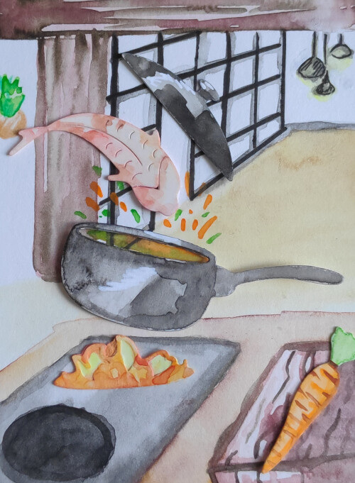 Bei Karte Nr. 3 könnte ich mir hinten in der Raumecke noch eine Topfpflanzen gut vorstellen oder vll eine Katze o. A. Die am Fenster schaut (oder nach dem Fisch?) so als Idee :)