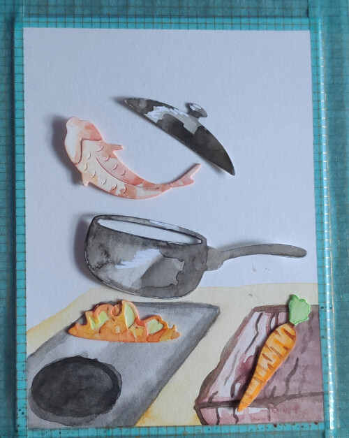 Meine Hauptangst ist, dass der Hintergrund zu kräftigt wird und man die Pfanne/den Fisch nicht mehr gut erkennen kann…