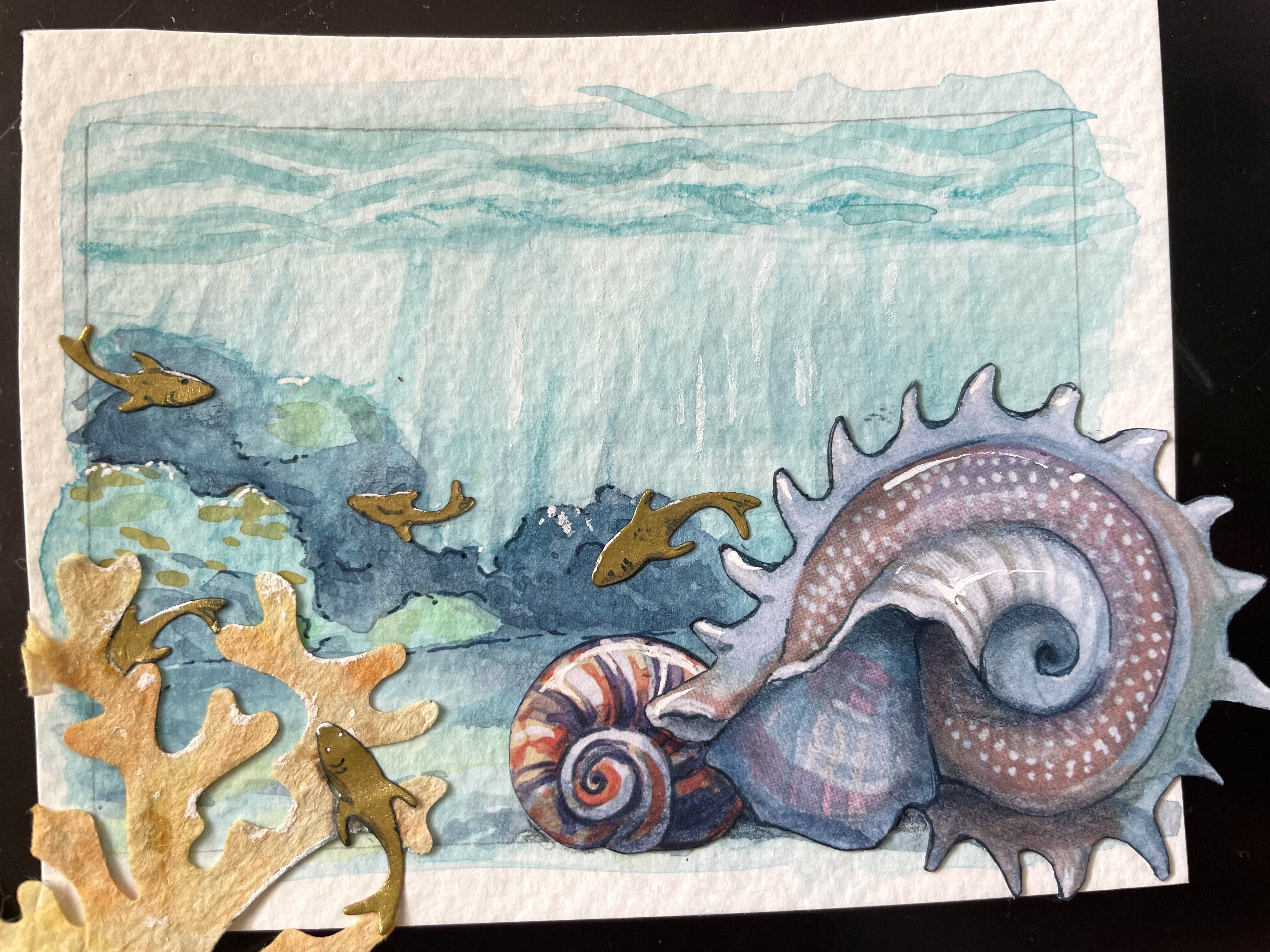 An manchen Kanten sind Highlights damit es presser ins Bild passt aber die wirklichen Seiten der Stanzteile hab ich entweder mit Fineliner oder mit Aquarell bemalt