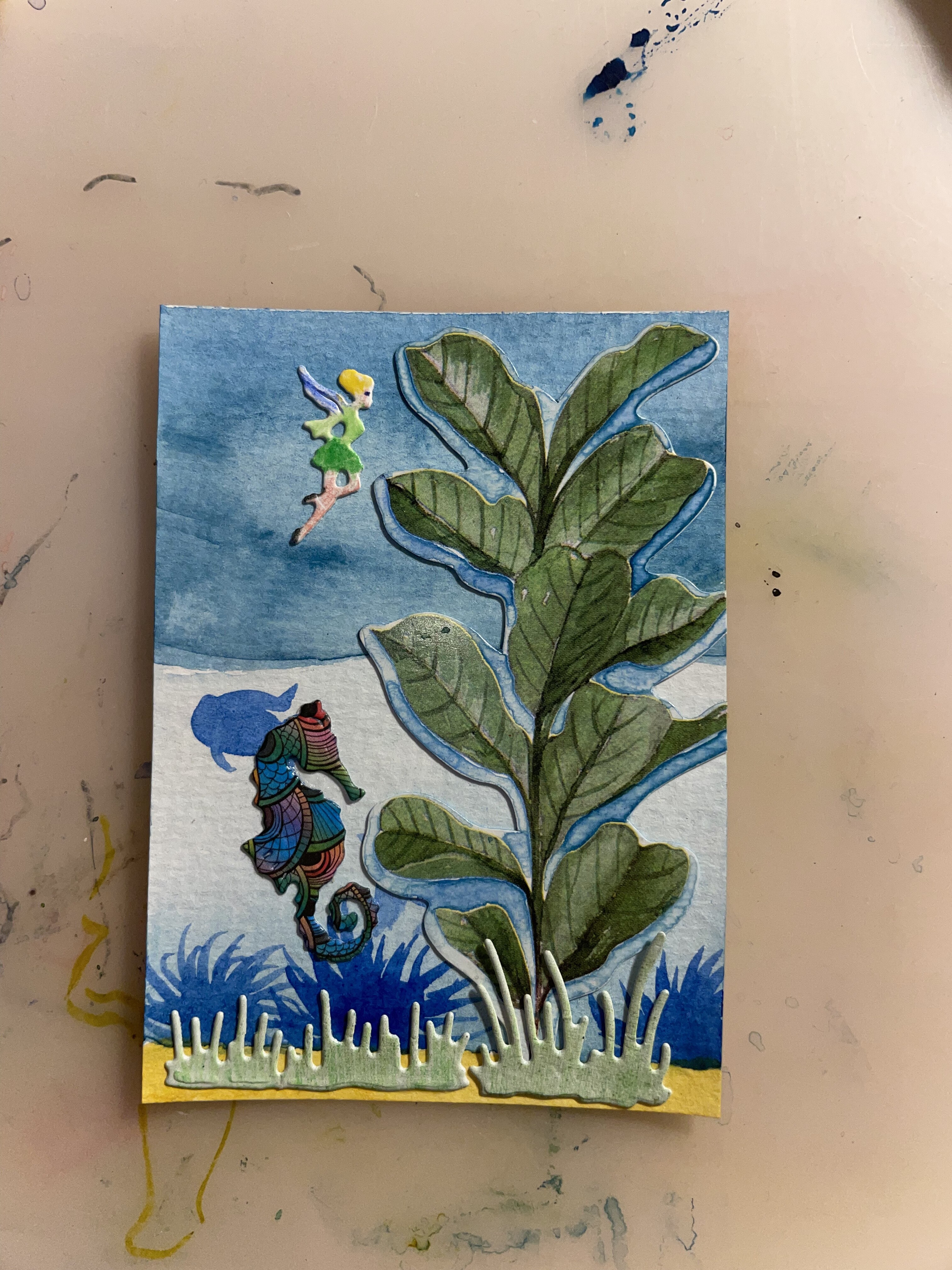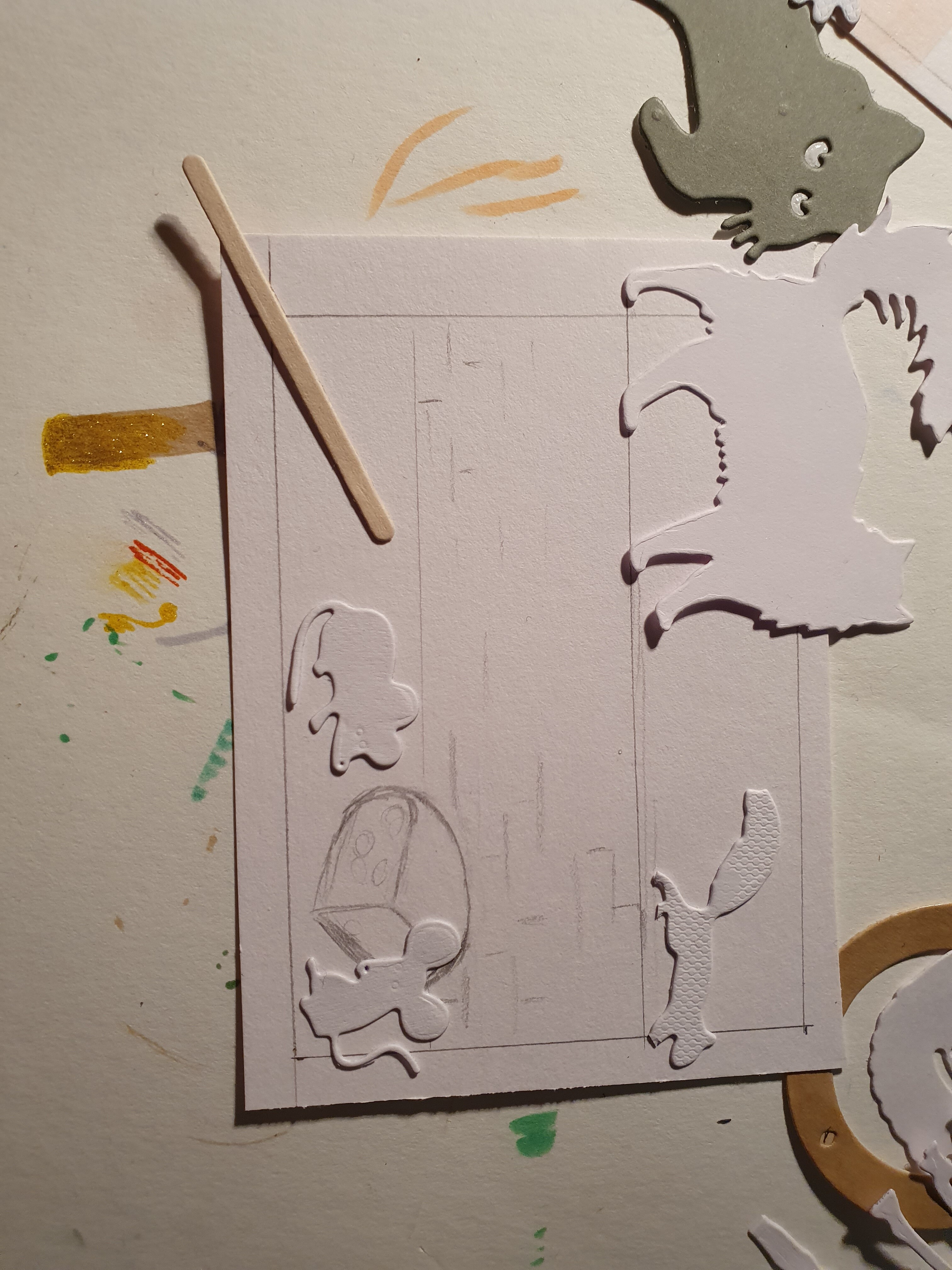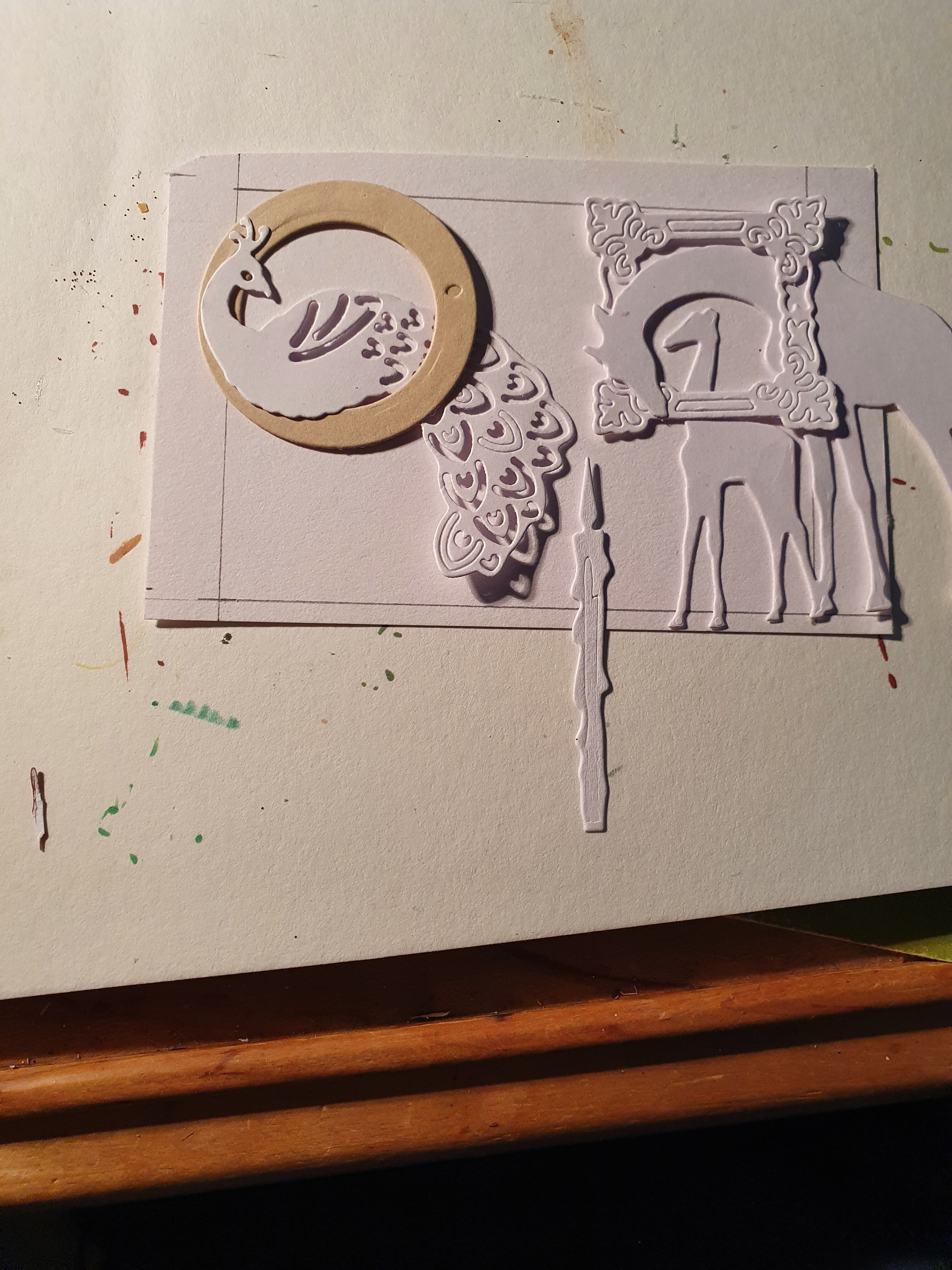 Es geht voran mit allerlei Getier. Als Hintergründe in den Bildern sind ein Sonnenuntergang und ein Sonnenaufgang geplant. An die Bilderrahmen möchte ich mit Gold und silberstift gehen