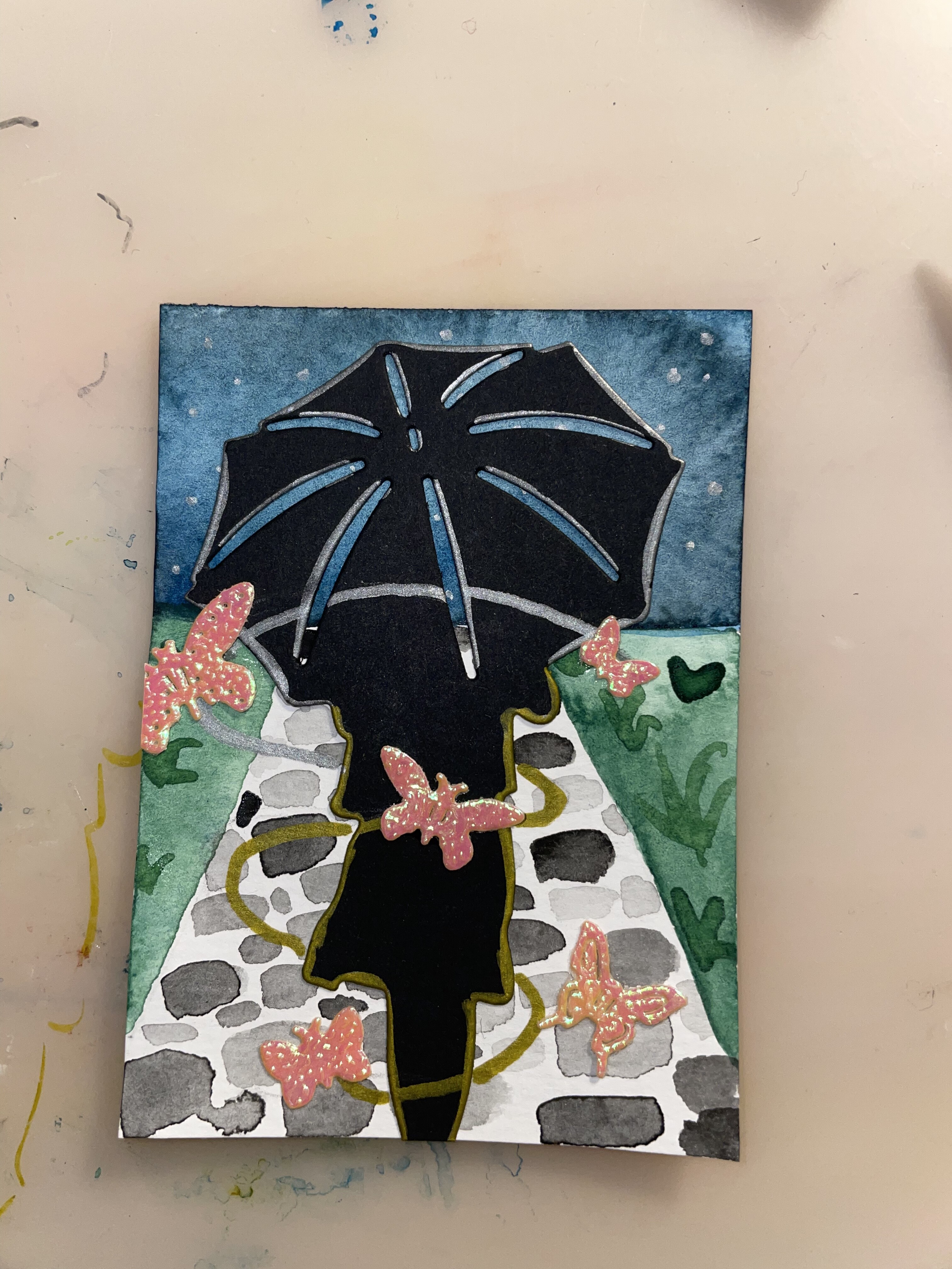 Ich hab die Karte grade fertig geklebt jetzt muss sie nur noch trocken und das ein oder ander zuschneiden