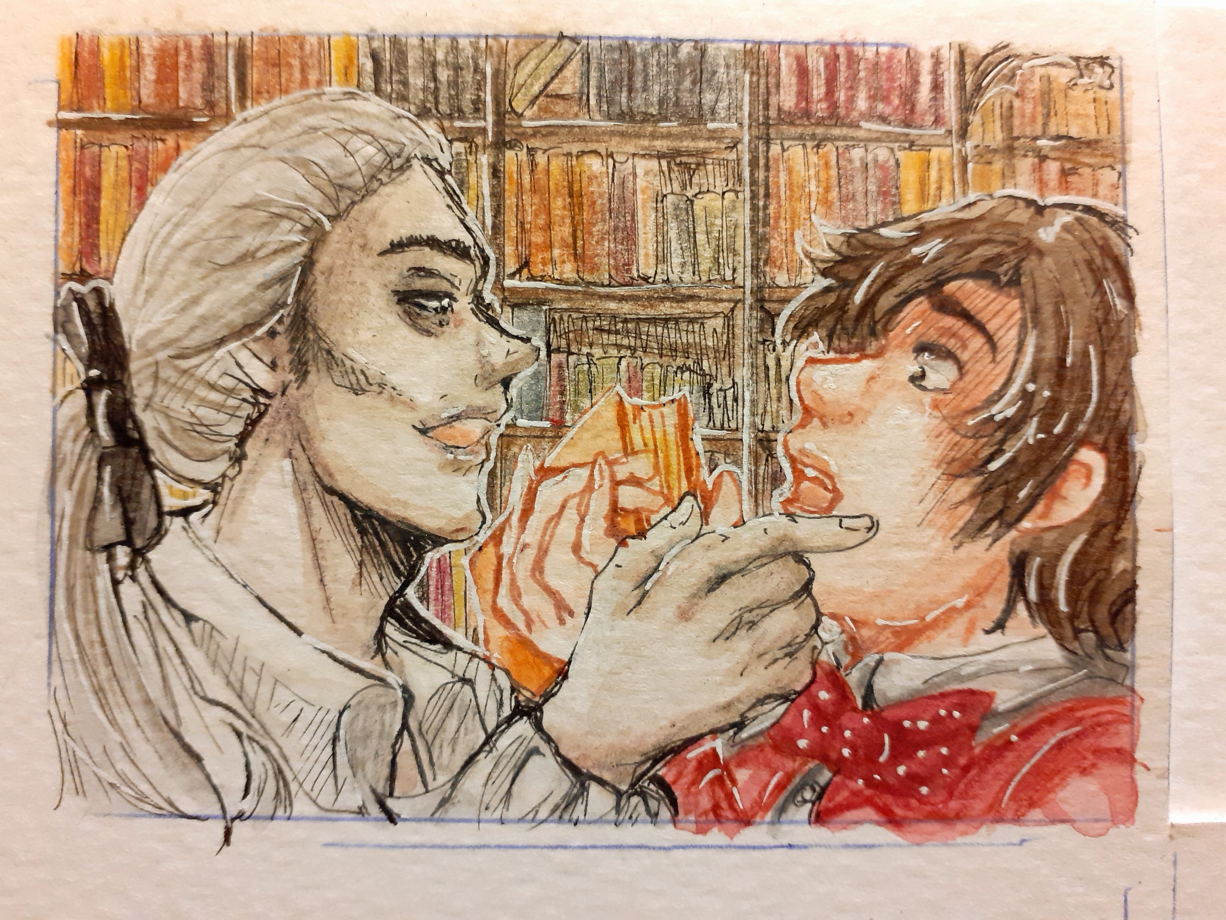Ich LIEBE jetzt schon die erste Karte! xDDD Die Szene war so gut! Und die beiden plus Professor!!! xDD <3 Bin sehr gespannt, wie die fertige Karte aussieht!